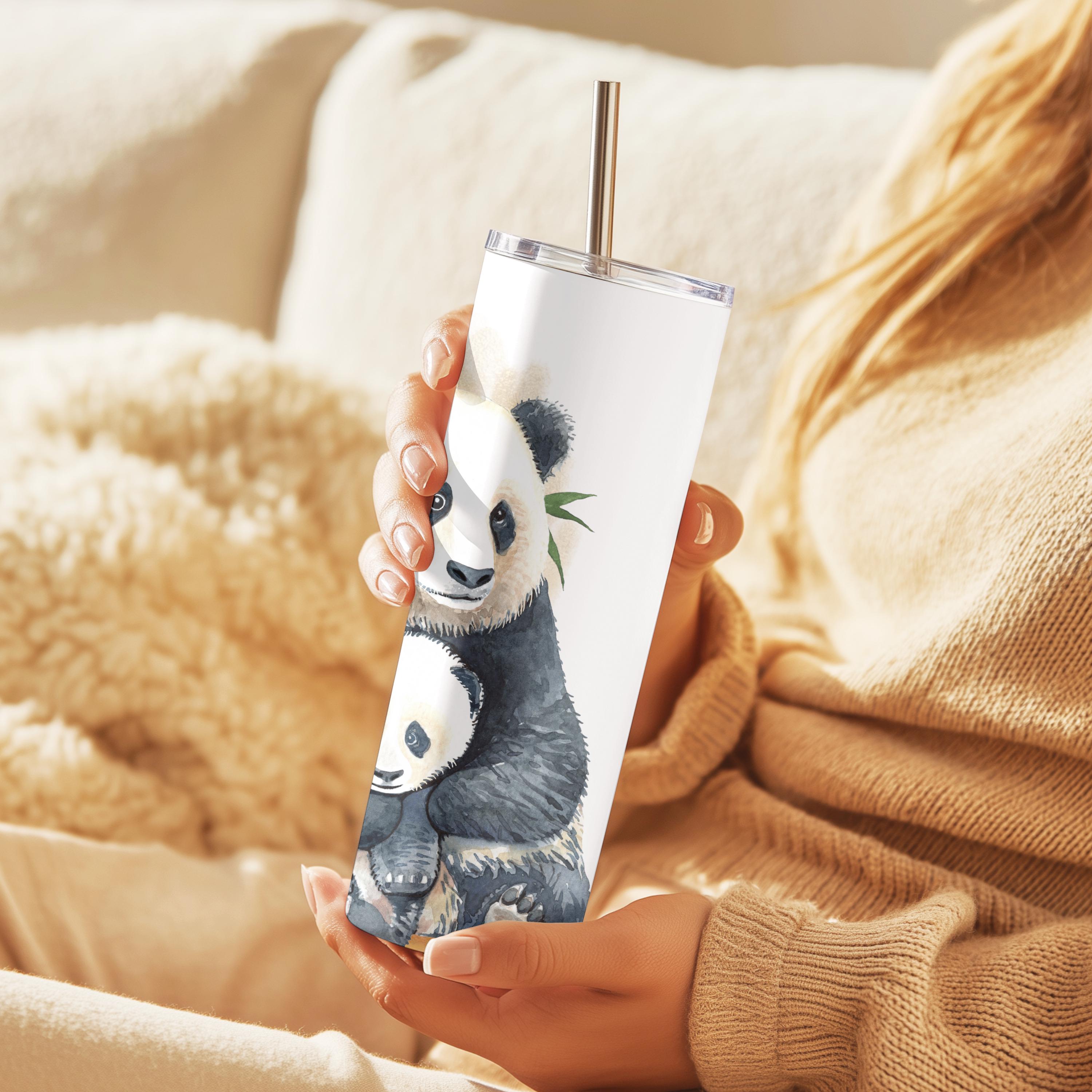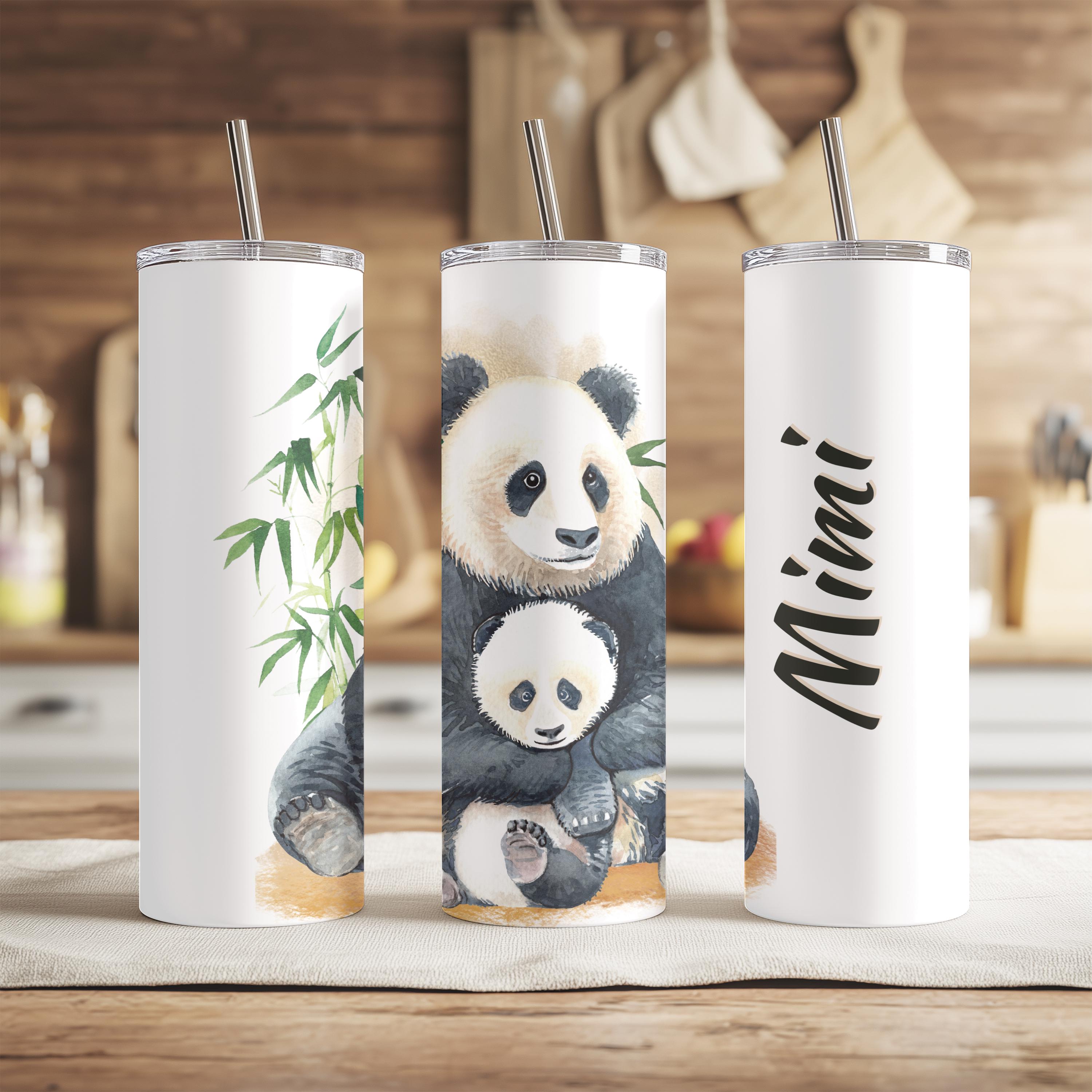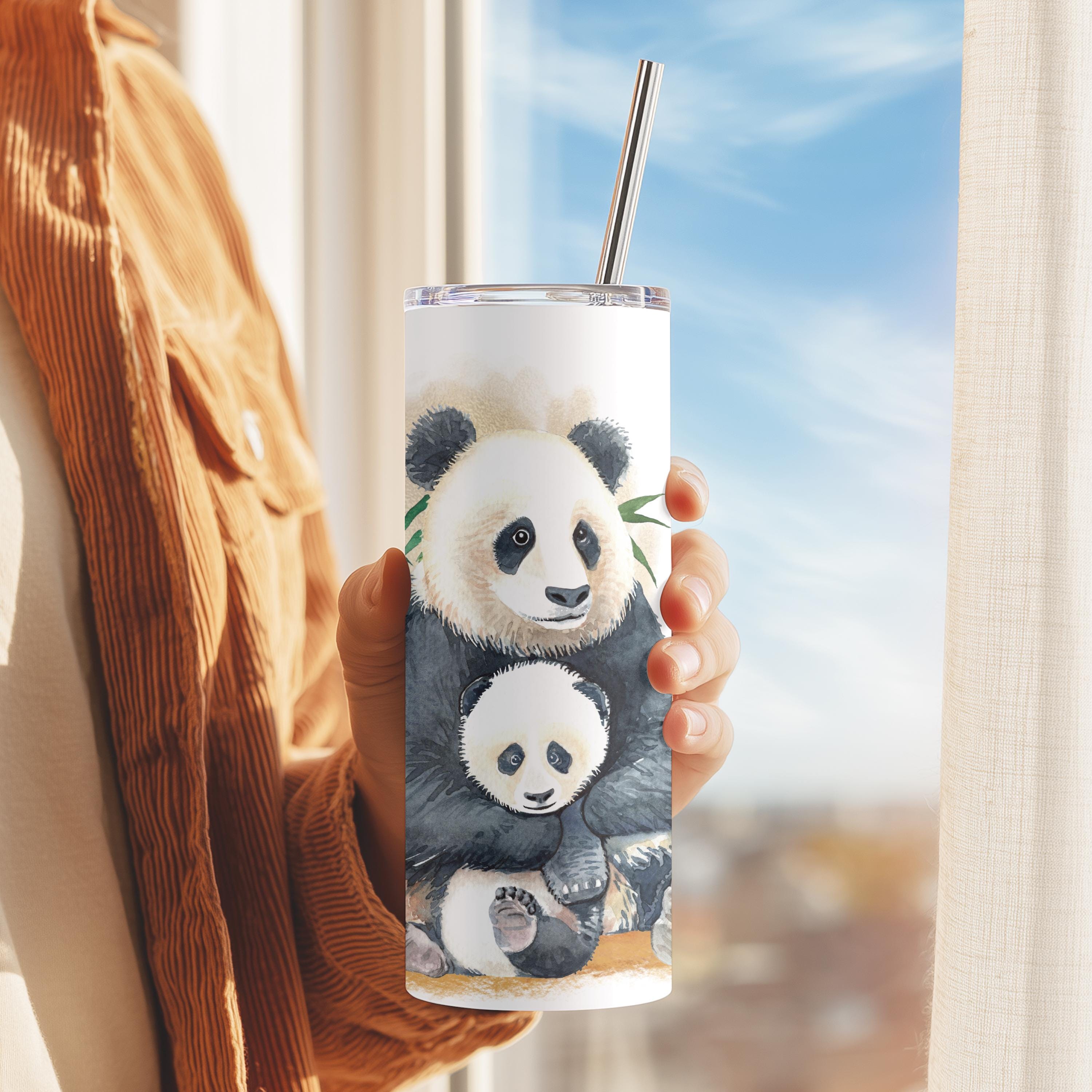 This Mama and Baby Panda Tumbler features a soft, heart-warming illustration of a panda cuddling her baby, surrounded by gentle bamboo details. The watercolor style gives it a calm, cozy feel that instantly connects with animal lovers and parents alike.
