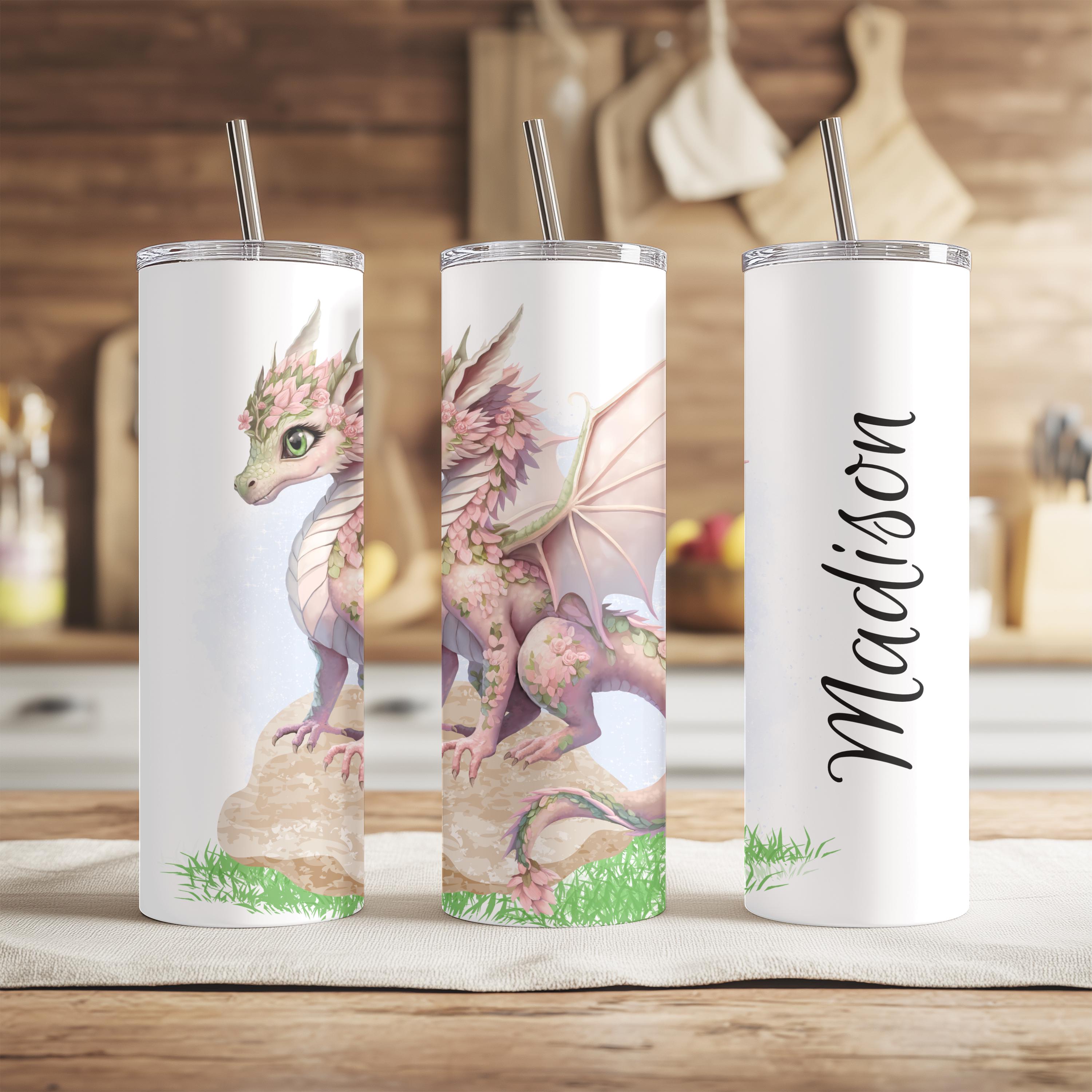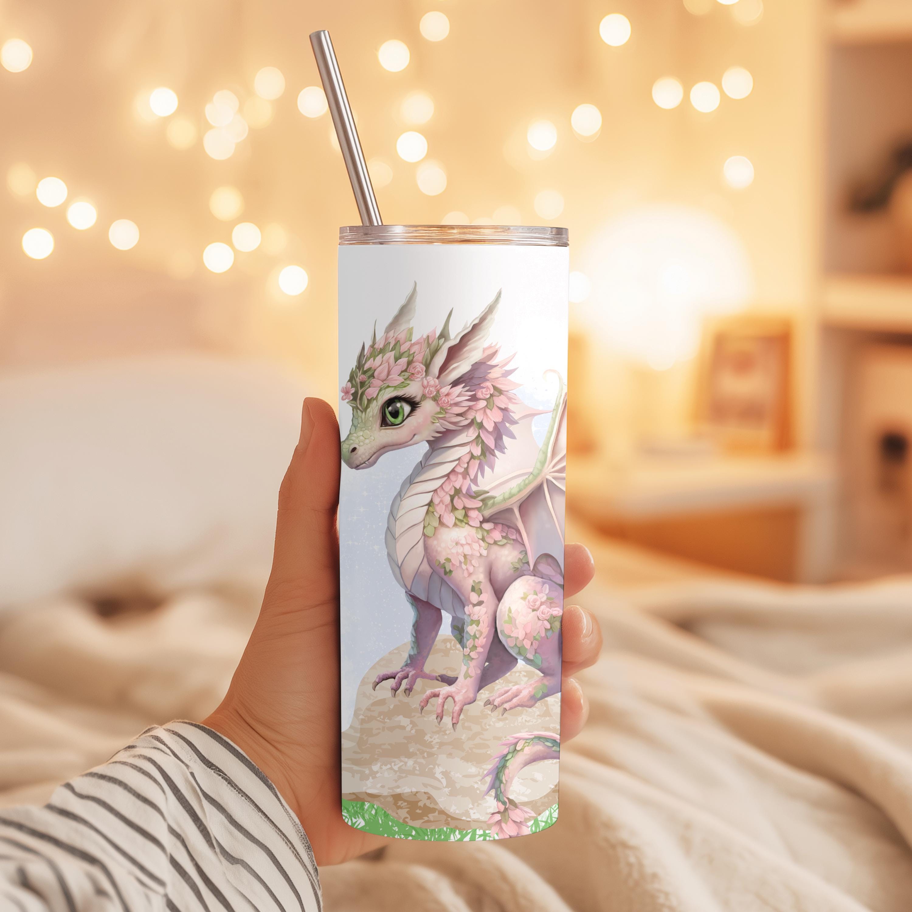 This Fantasy Dragon Tumbler features a beautifully detailed pink dragon adorned with soft florals and delicate wings. Whimsical, elegant, and enchanting, this tumbler is perfect for dragon lovers who appreciate fantasy with a softer, artistic twist.