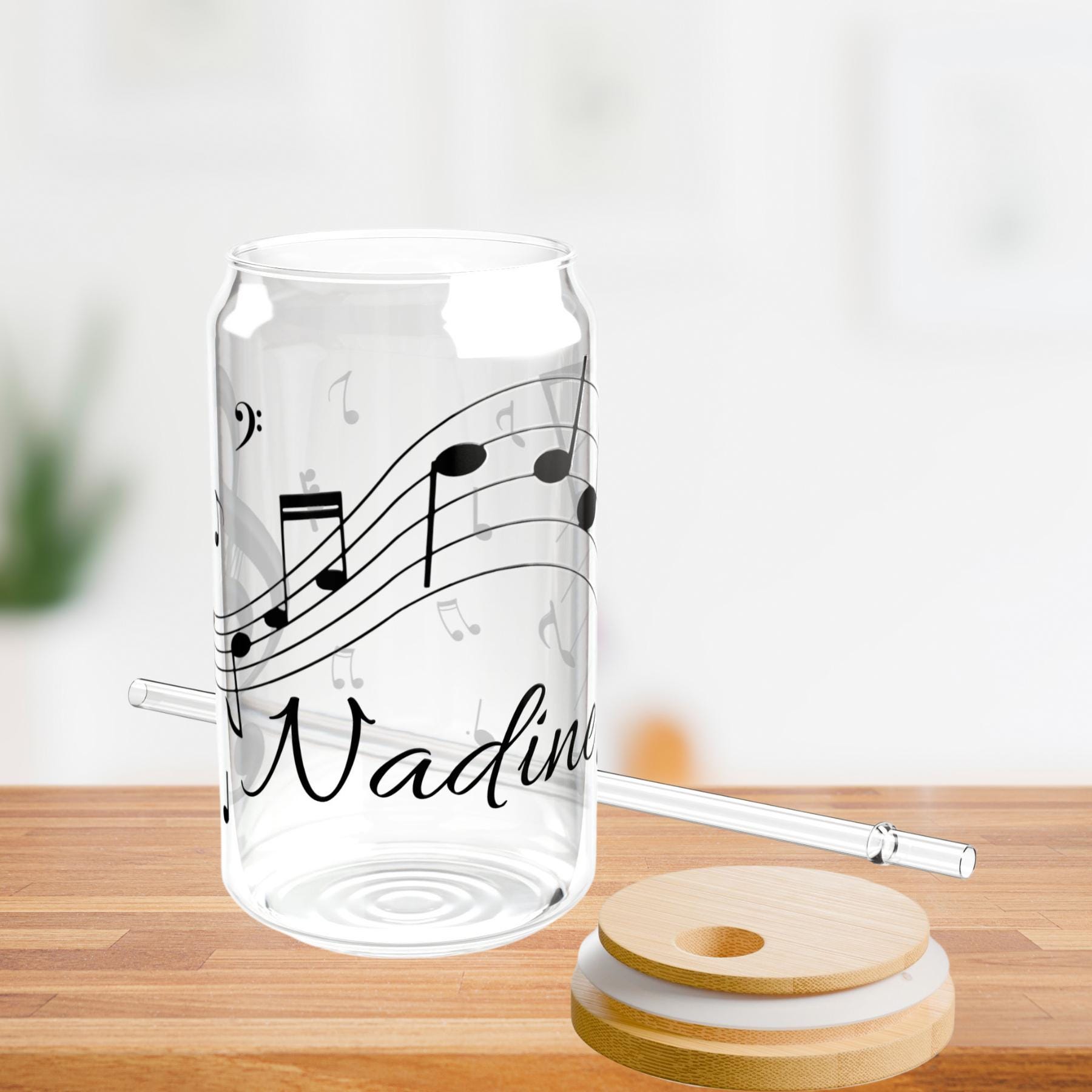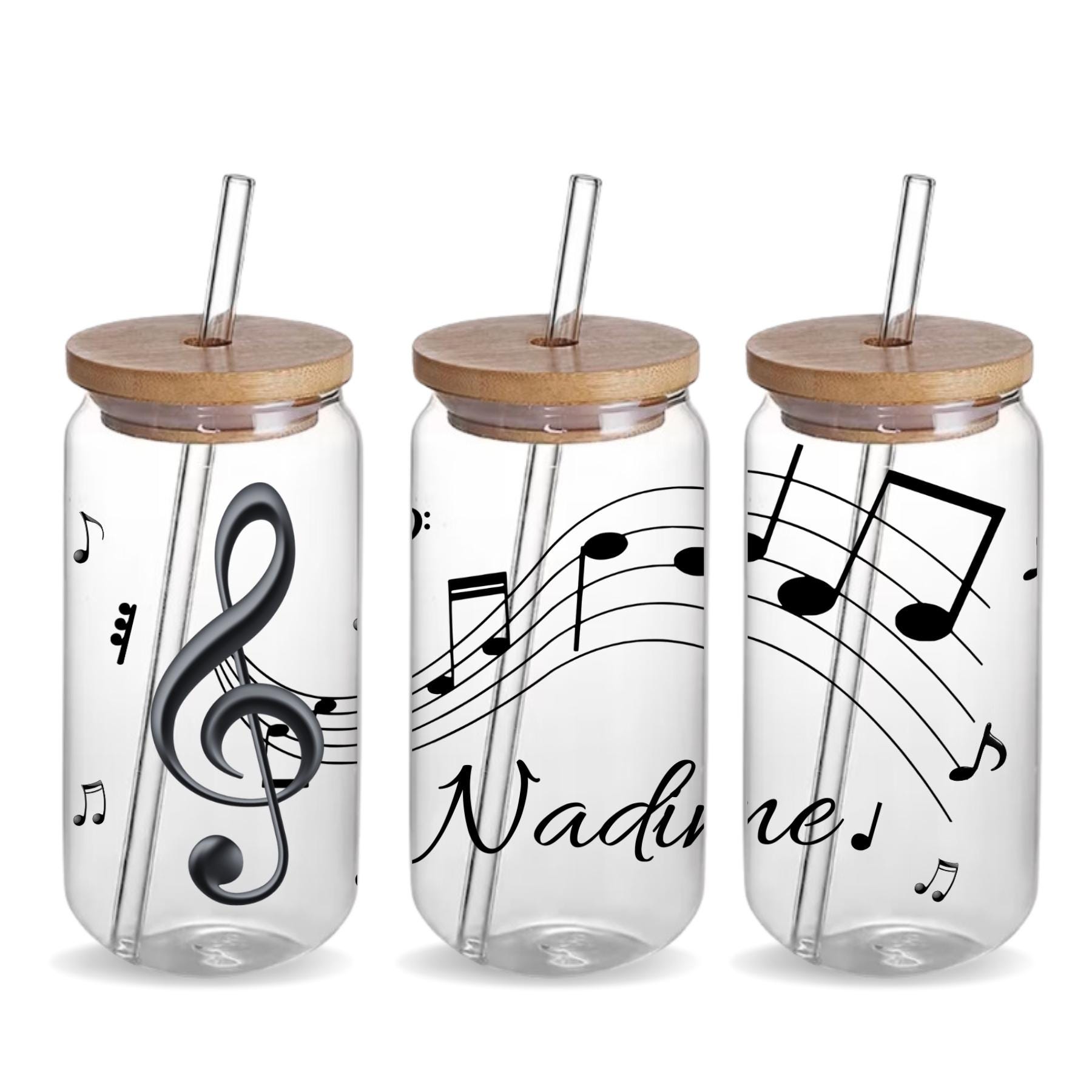 Crafted from premium-quality glass, this tumbler is not only durable but also a stunning addition to your drinkware collection. The music notes design is sure to turn heads, and with the option to personalize it with a name, it makes for a thoughtful and unique gift.