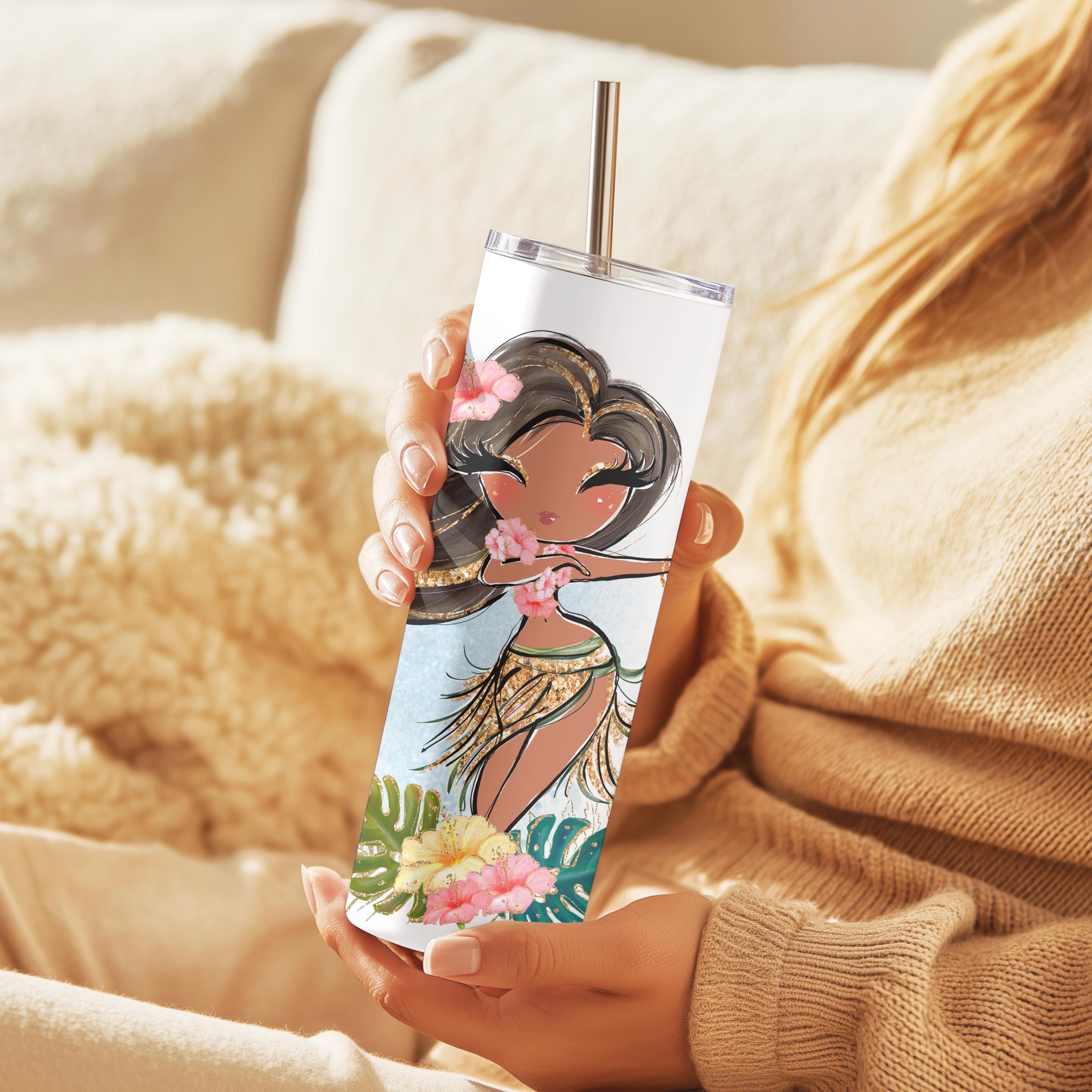 This stainless steel tumbler features three Hawaiian girl design options, allowing customers to choose the style they love most. Each design captures a fun, colorful island feel that stands out while still being elegant and gift-worthy.