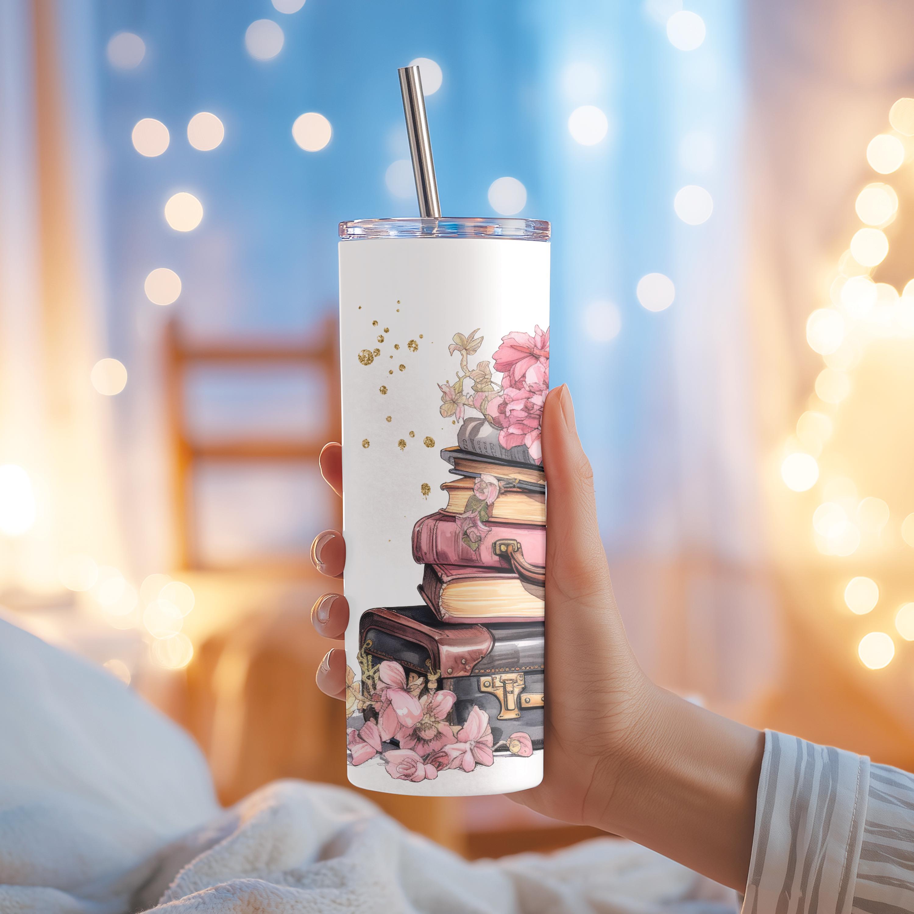 Celebrate your love for stories, travel, and cozy moments with this elegant Book Lover Tumbler. Featuring stacked vintage books, a suitcase, and soft florals, this design is perfect for readers who dream of adventures found both on the page and beyond.