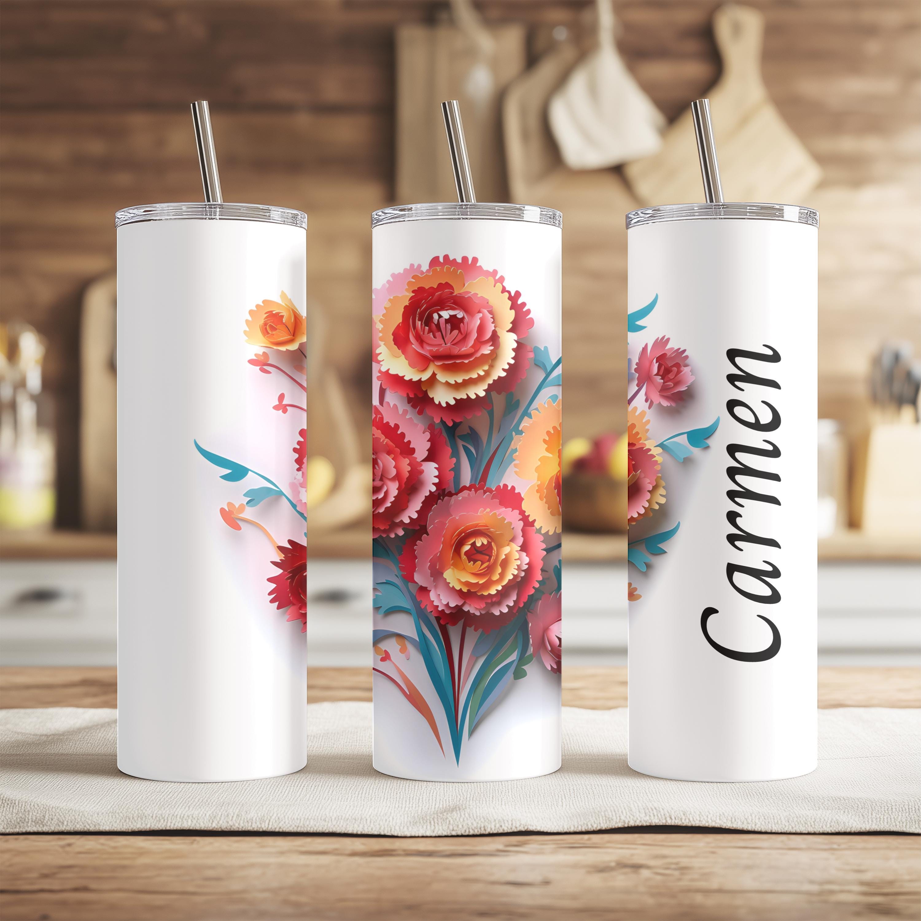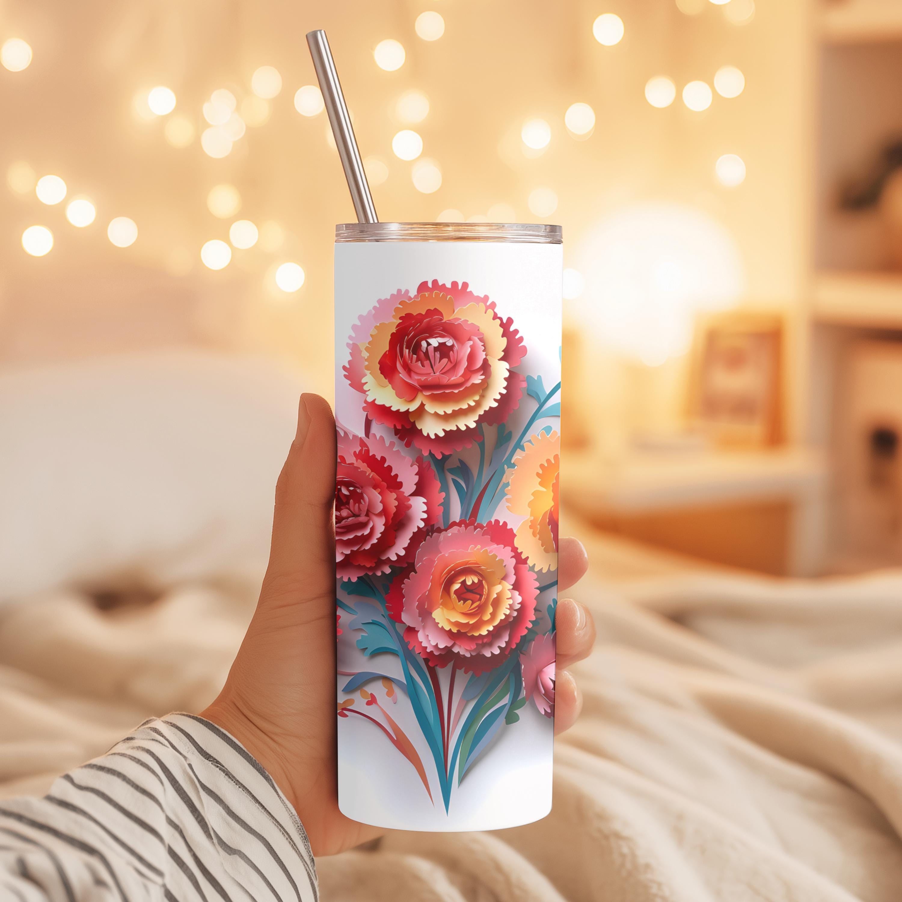 Carnations symbolize love, admiration, and devotion, making this tumbler a meaningful and thoughtful gift for someone special.
