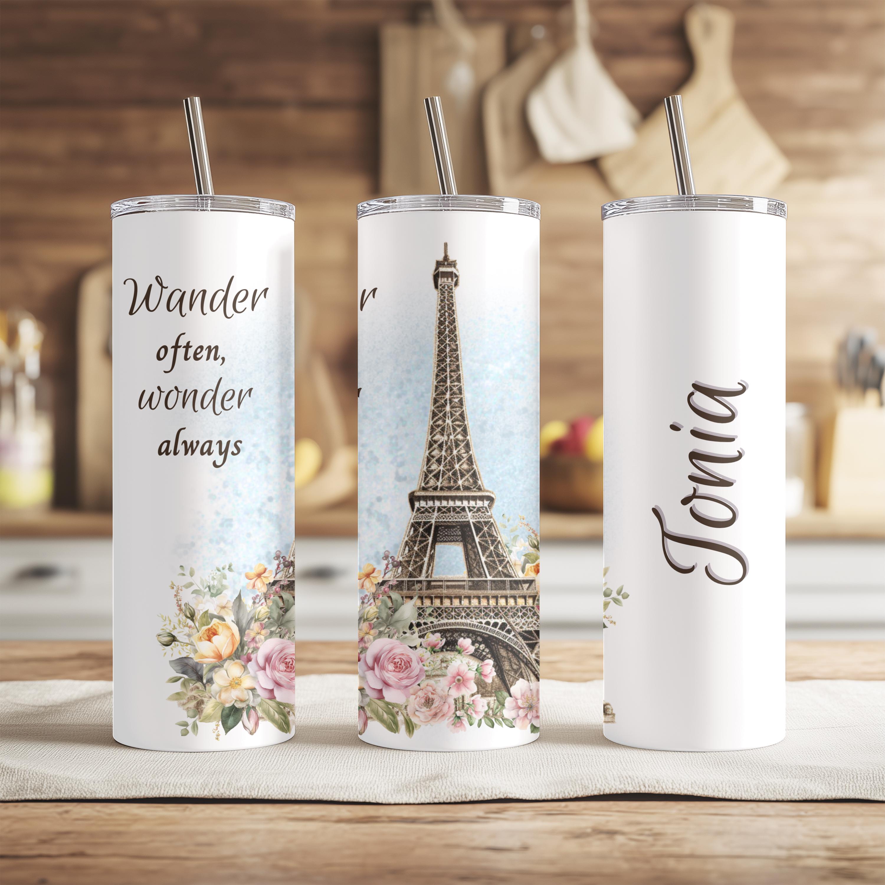 Embark on a journey through time with our Vintage Paris Stainless Steel Travel Coffee Tumbler – a 20oz masterpiece that marries elegance with wanderlust. Picture this: a charming Eiffel Tower, nestled amidst delicate vintage florals, capturing the essence of a bygone era. With the heartfelt mantra "Wander Often, Wonder Always," this tumbler isn't just a vessel; it's a poetic invitation to explore and dream. Personalized with your chosen name, it transforms into a cherished keepsake, a testament to the beauty of personal connections.