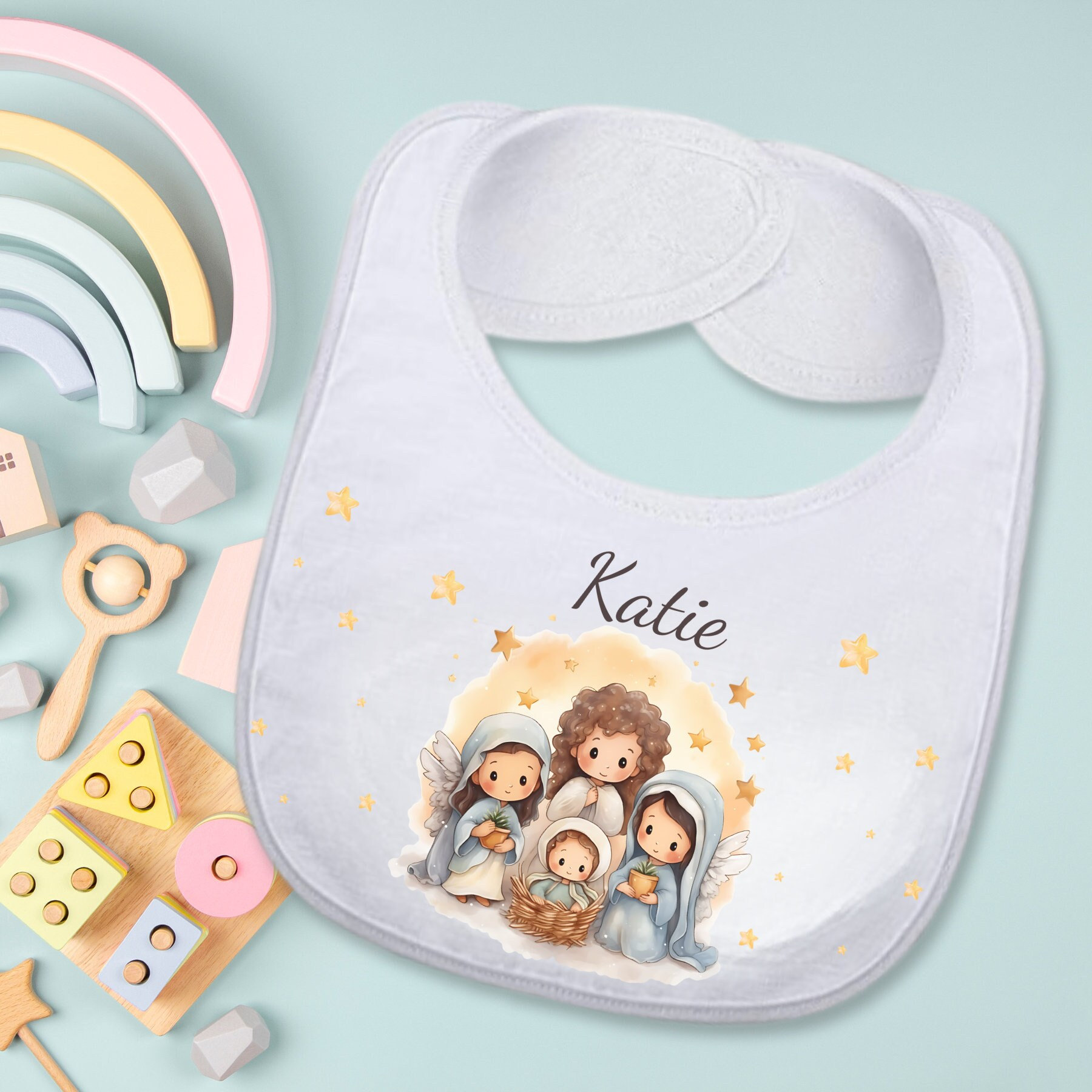 Crafted from soft baby bib cloth and featuring adorable designs like nativity scenes, personalized touches, and holiday themes, this baby bib is a must-have for the holiday season.