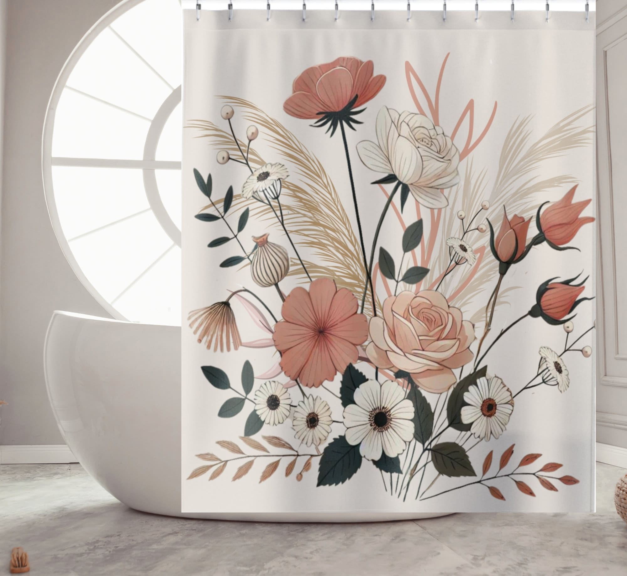 Enhance your bathroom with our stylish boho shower curtain, a perfect addition to any boho bathroom decor. This cool shower curtain features a beautiful floral design that brings a touch of nature into your space, making it feel more inviting.