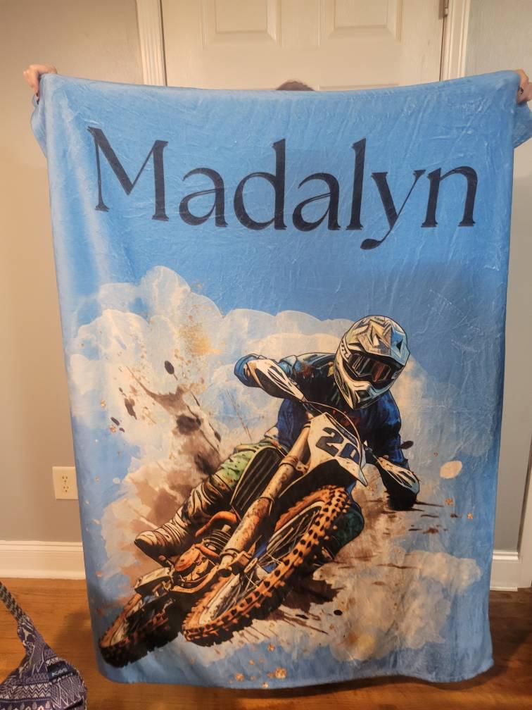 This is a super soft, meaningfully personalized dirtbike blanket for a dirtbike loving 4 year old. It's going to be loved this Christmas upon opening. Thank you!