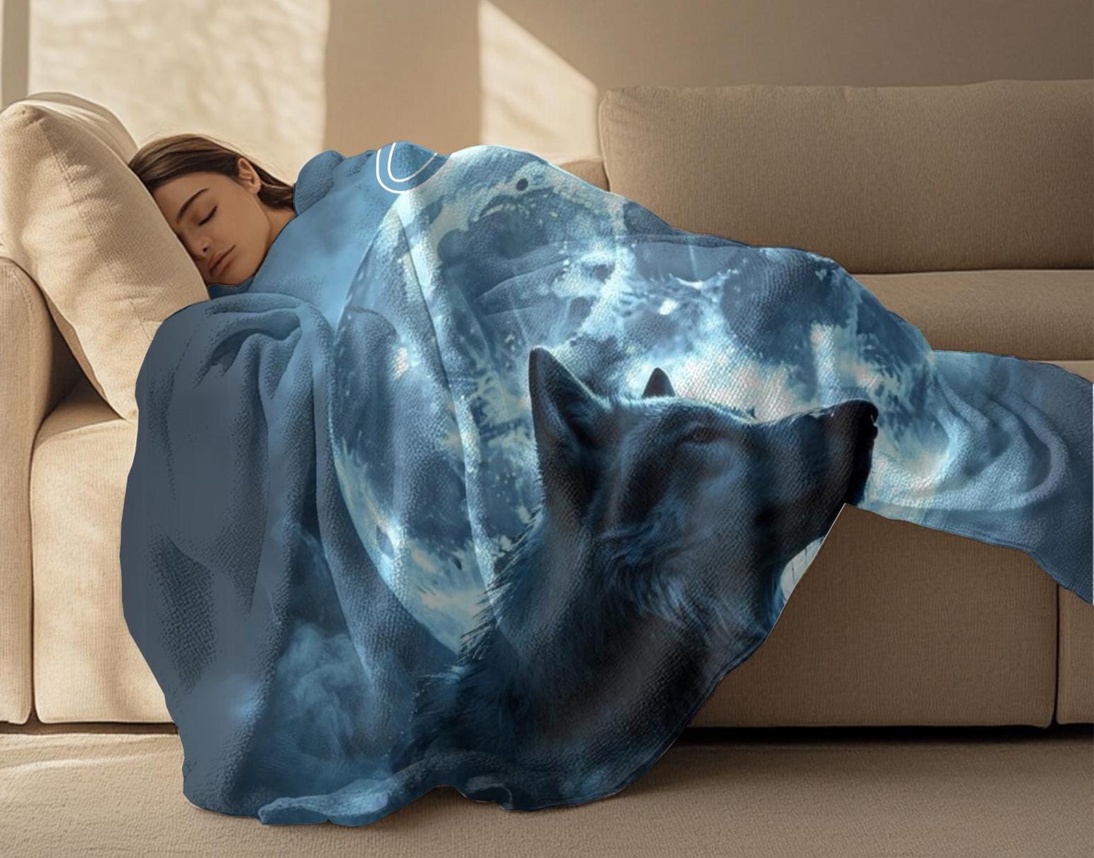It makes a show-stopping birthday or Christmas gift or a cozy room decor piece for anyone who loves wolves, moon art, or mystical aesthetics.