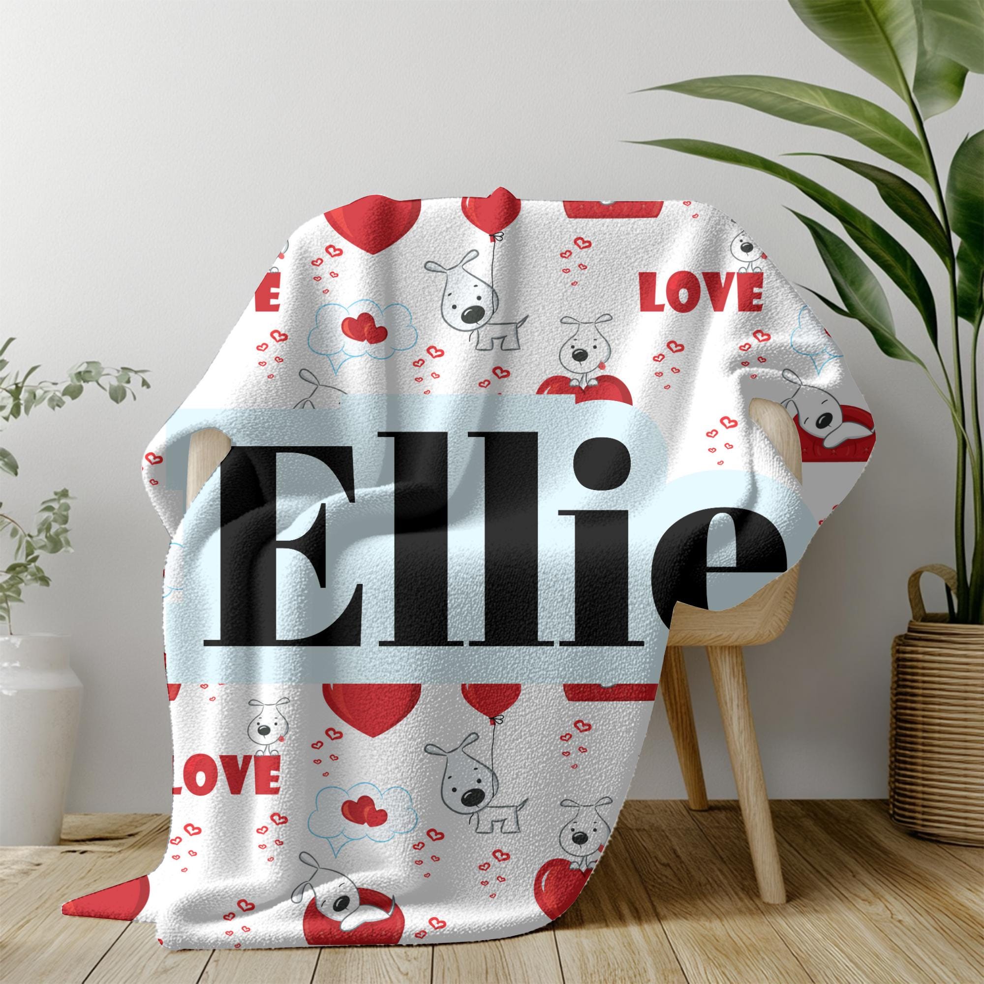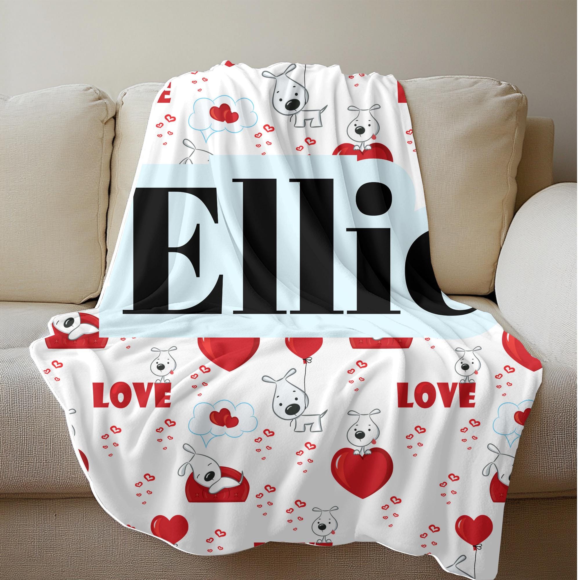 If you’re searching for a sweet, thoughtful, and totally adorable gift for your girlfriend, your daughter, or anyone who loves dogs, this personalized blanket is perfect. The cute puppy illustrations and heart details make it feel romantic and playful — and the big custom name turns it into a gift they’ll actually use and smile about every day.
