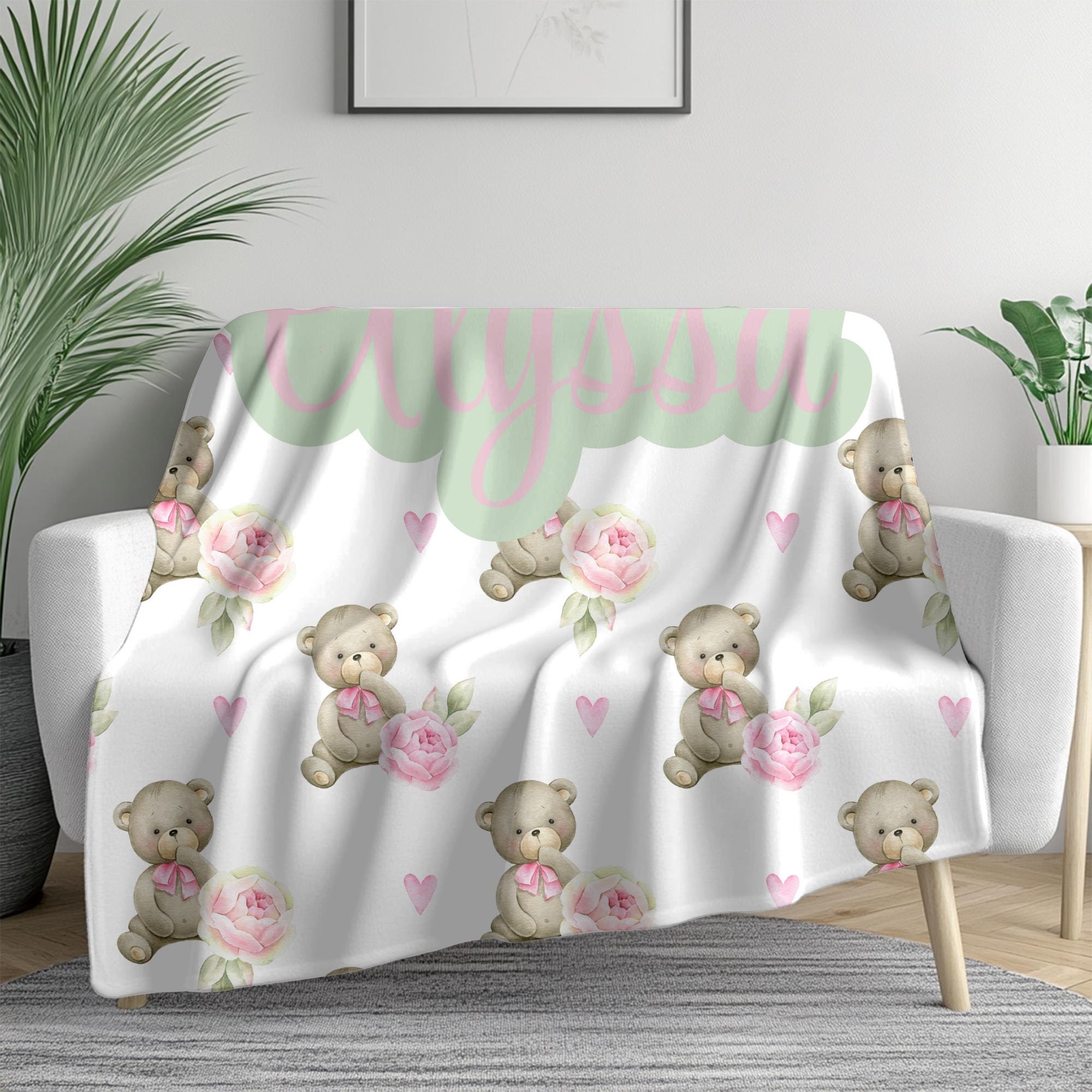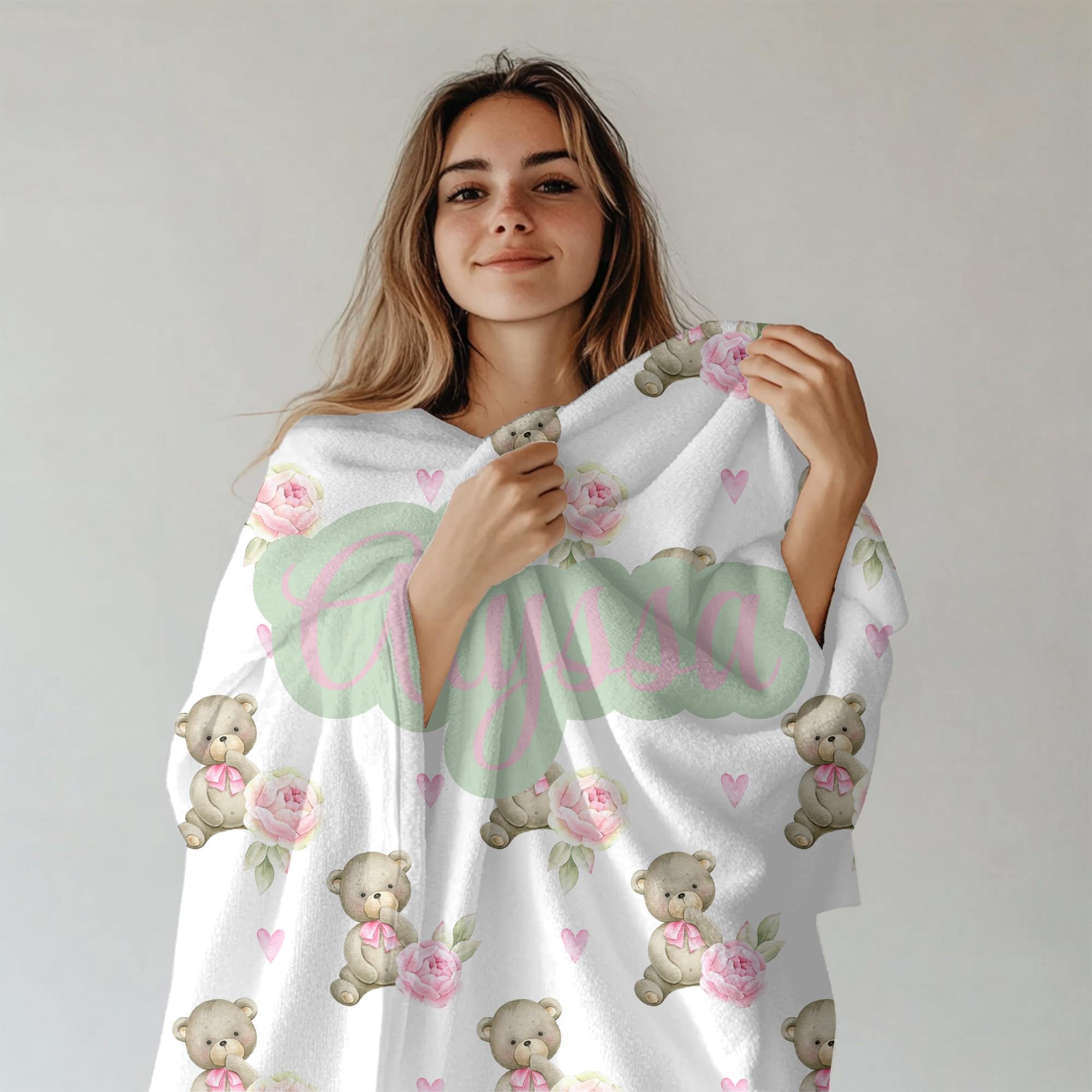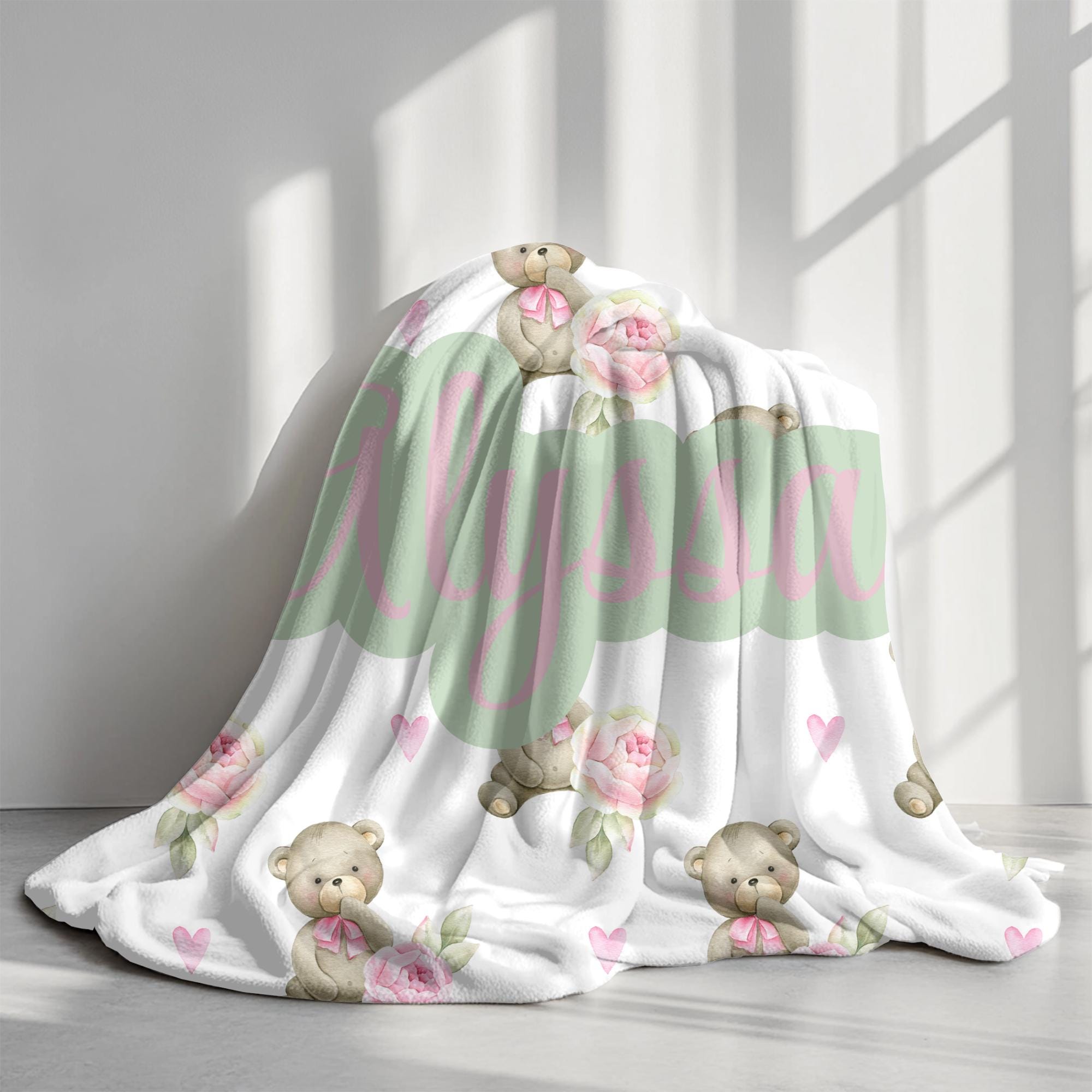 This ultra-soft blanket features an adorable teddy bear design, perfect for boys or girls, printed in high-resolution on your choice of lightweight fleece or plush velveteen. A timeless keepsake that parents and babies will treasure for years to come.