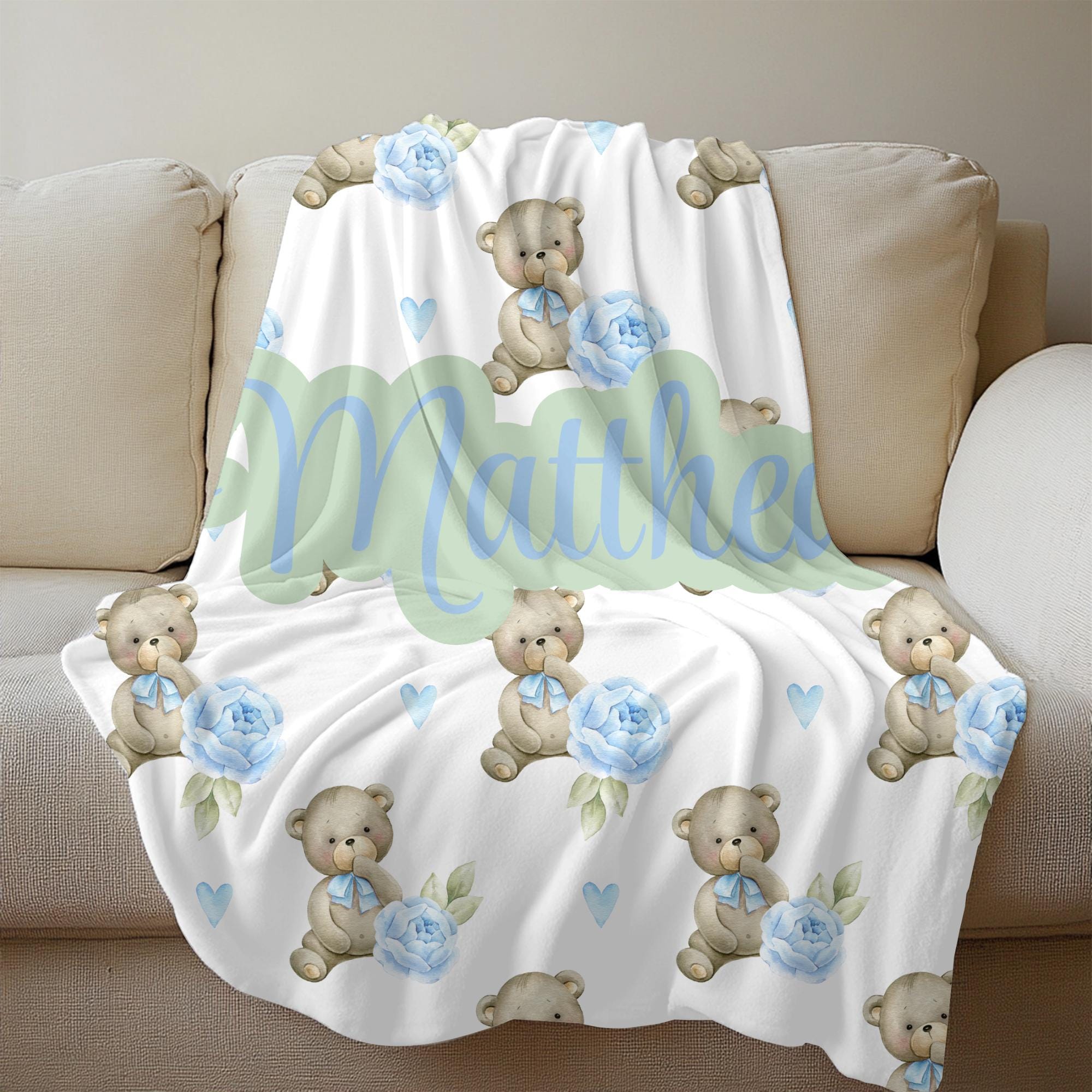Celebrate your little one with this Personalized Teddy Bear Baby Blanket, available in soft blue or pink hues. Whether you're decorating a nursery or shopping for a thoughtful baby shower gift, this blanket offers warmth, charm, and a custom touch with the baby’s name.
