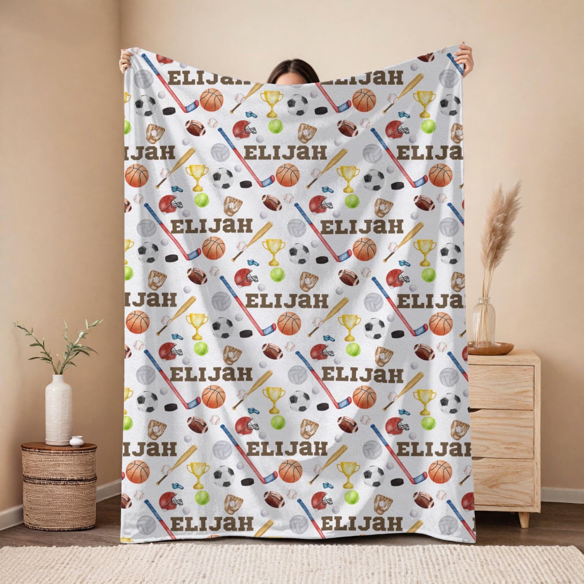 Whether you're decorating a sports-themed nursery or gifting a future MVP, this blanket brings comfort and personality to every moment. Ideal for toddlers, preschoolers, or older kids who love basketball, soccer, football, and more.