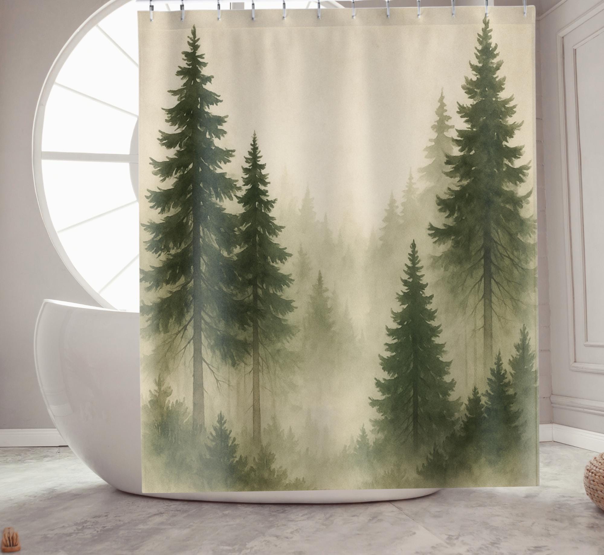 This misty forest shower curtain captures the serene beauty of layered evergreens fading into soft fog — creating a peaceful, spa-like atmosphere in your home. Perfect for nature lovers, rustic cabins, or modern bathrooms that need a touch of tranquility.