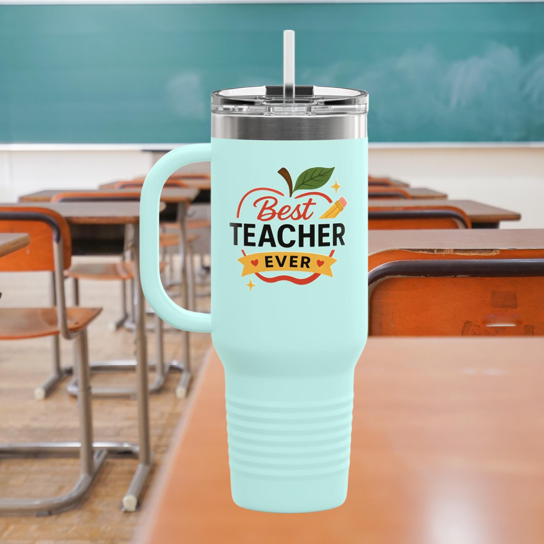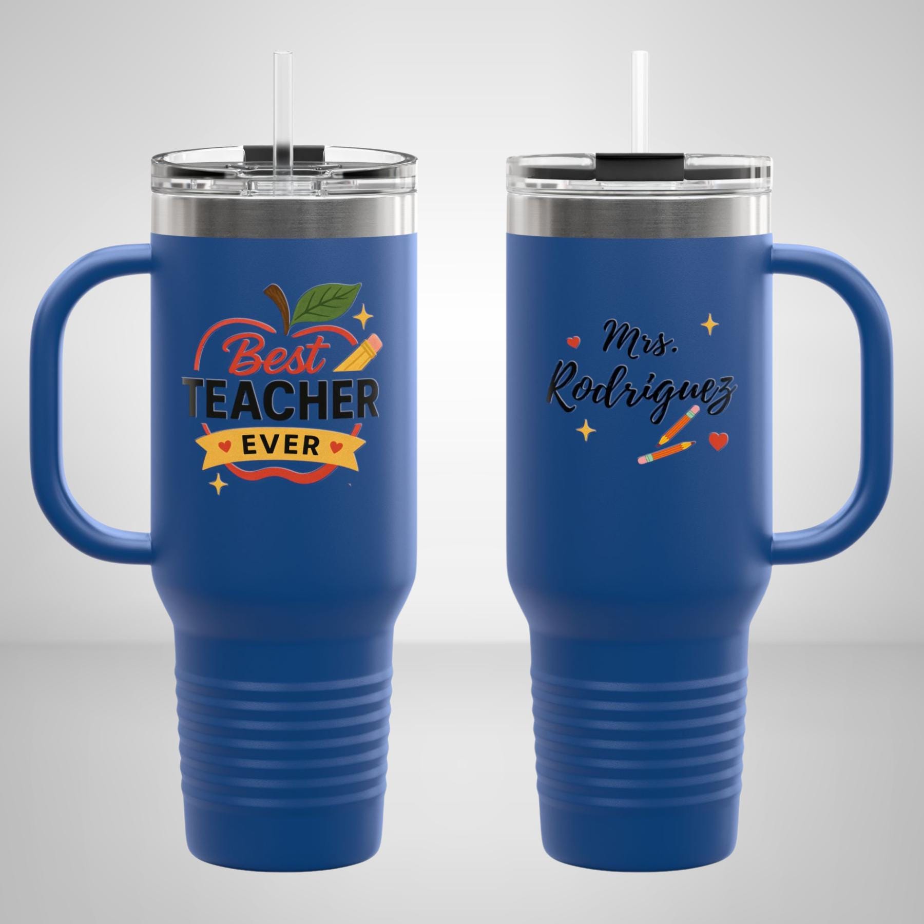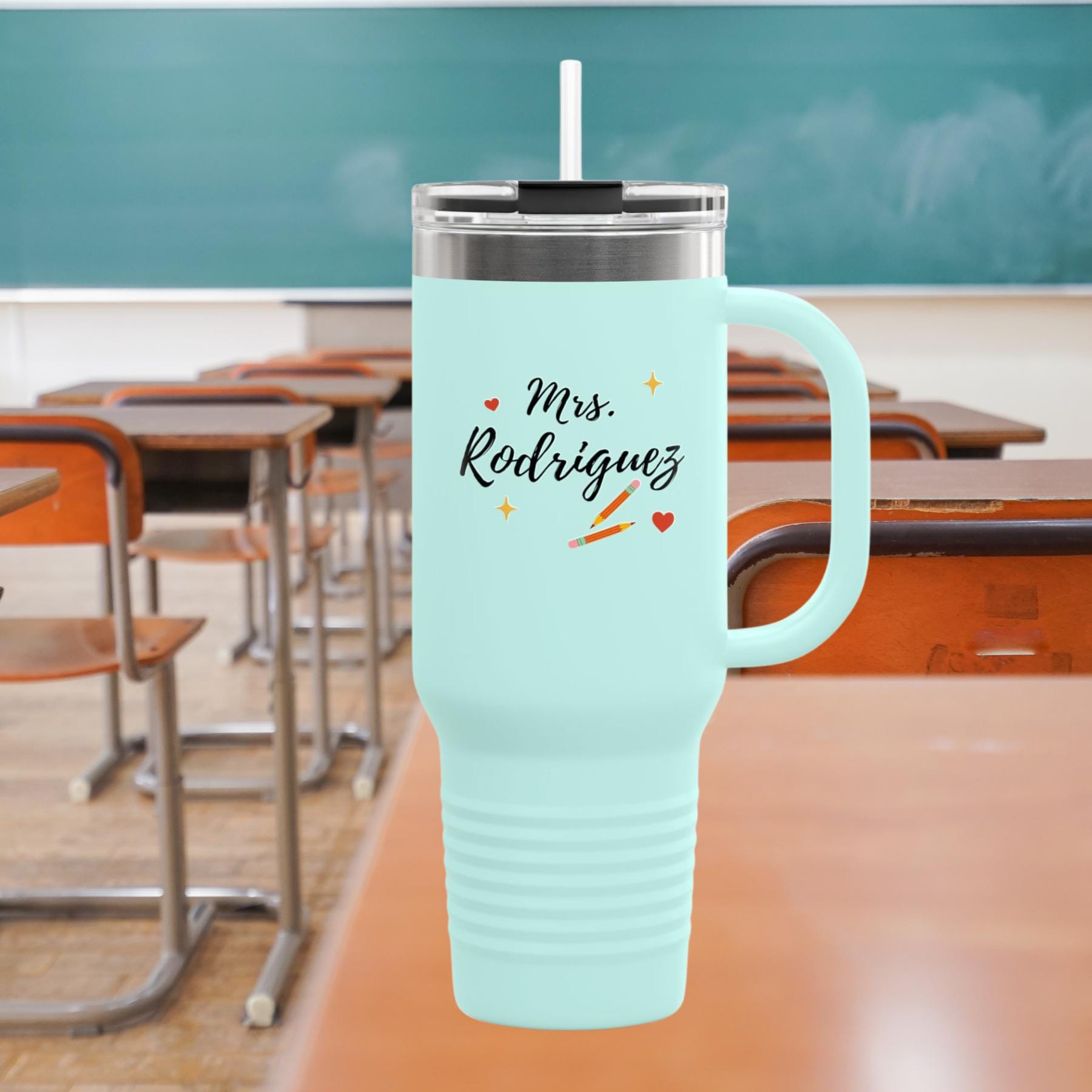Give your favorite educator a stylish, practical gift with this Custom 40oz Tumbler with Handle, a high-quality personalized travel cup designed for teachers who love coffee, tea, or iced drinks.