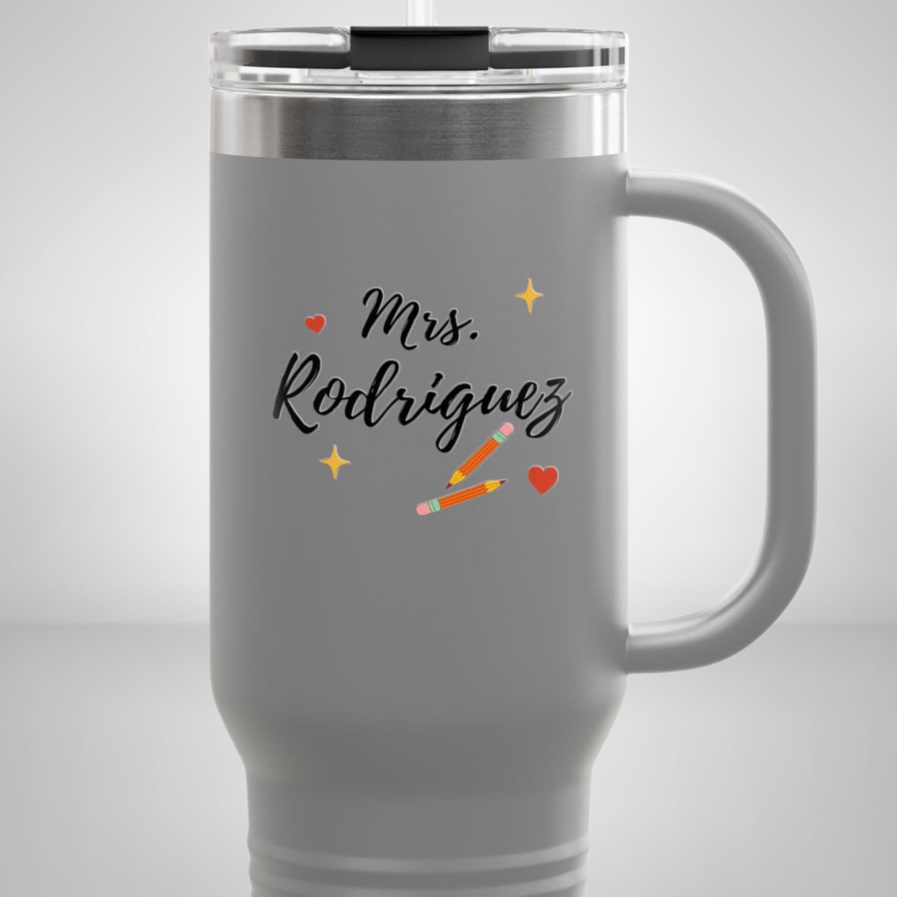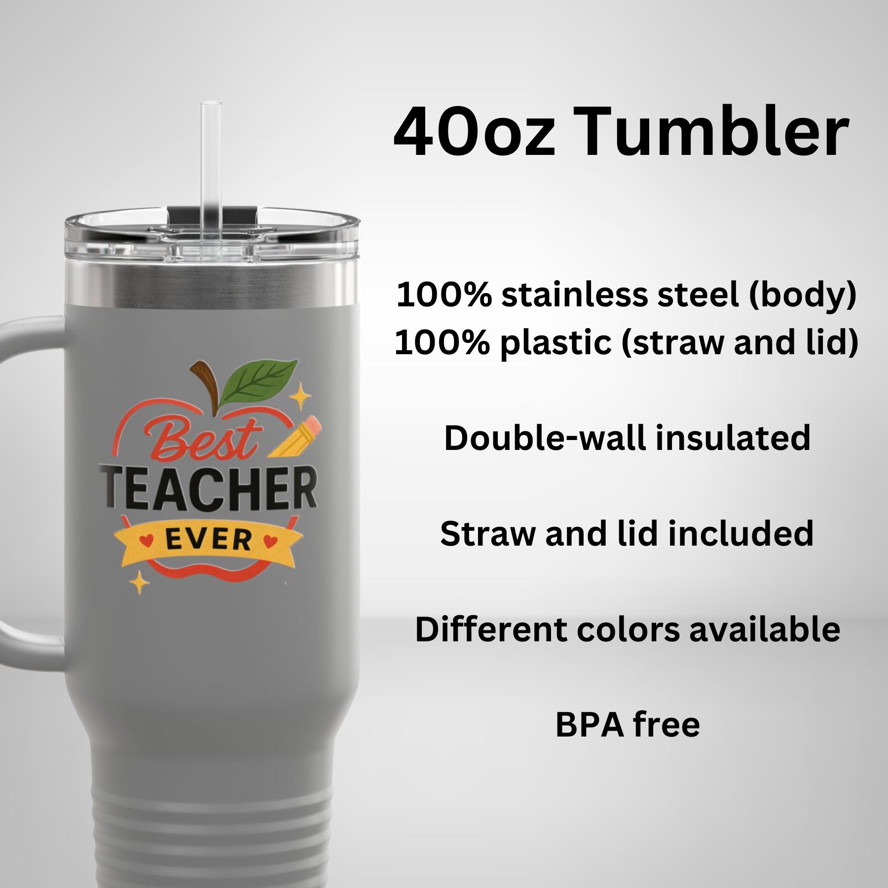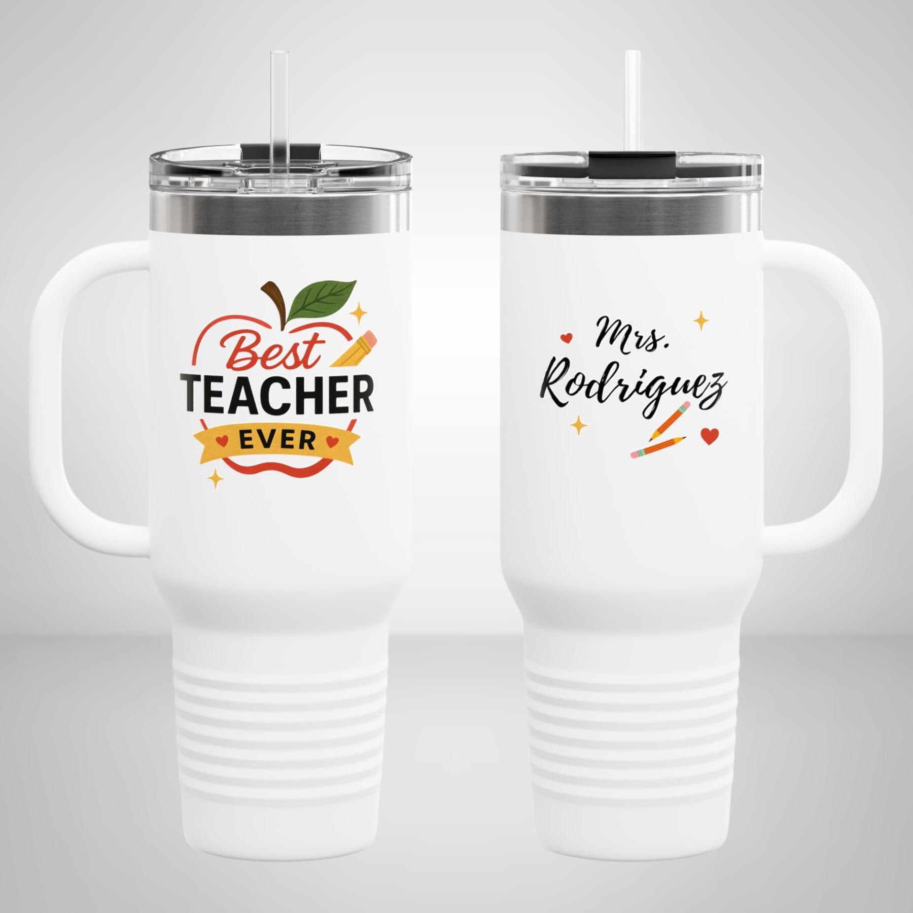 Give your favorite educator a stylish, practical gift with this Custom 40oz Tumbler with Handle, a high-quality personalized travel cup designed for teachers who love coffee, tea, or iced drinks.