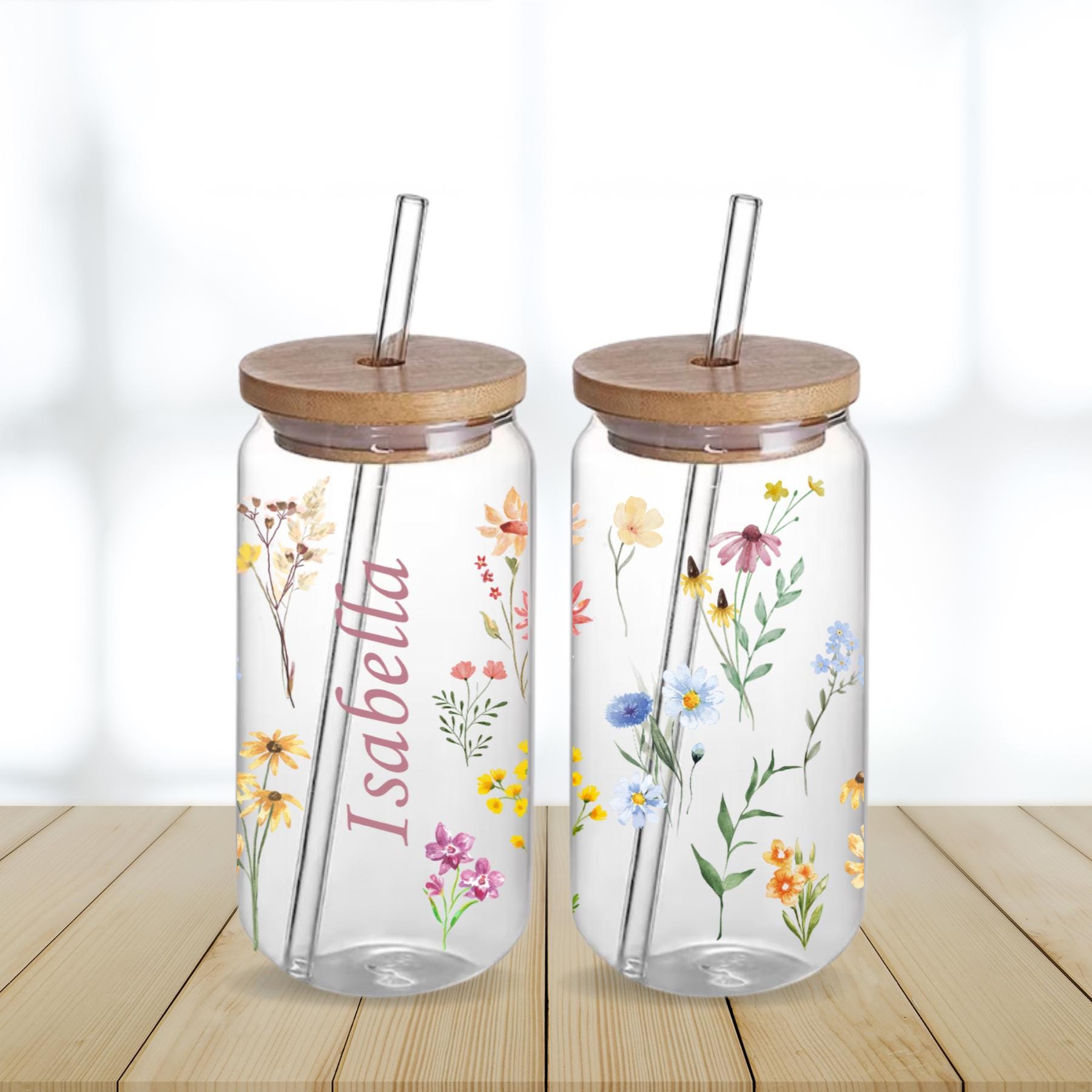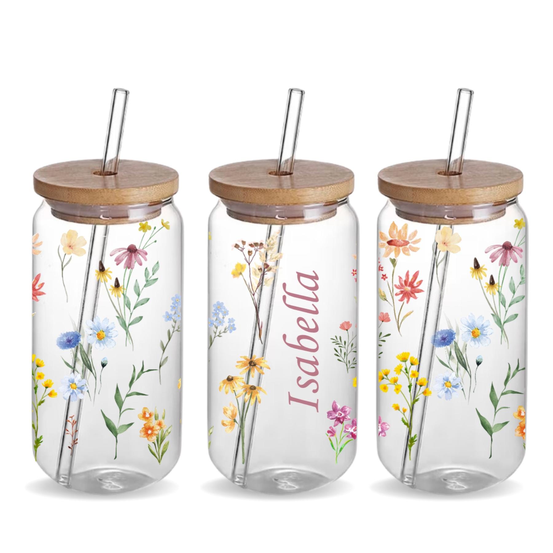 Add a touch of charm to your daily drinks with this wildflower personalized sipper glass. Featuring a delicate floral design and your custom name, it’s the perfect blend of boho style and aesthetic drinkware.