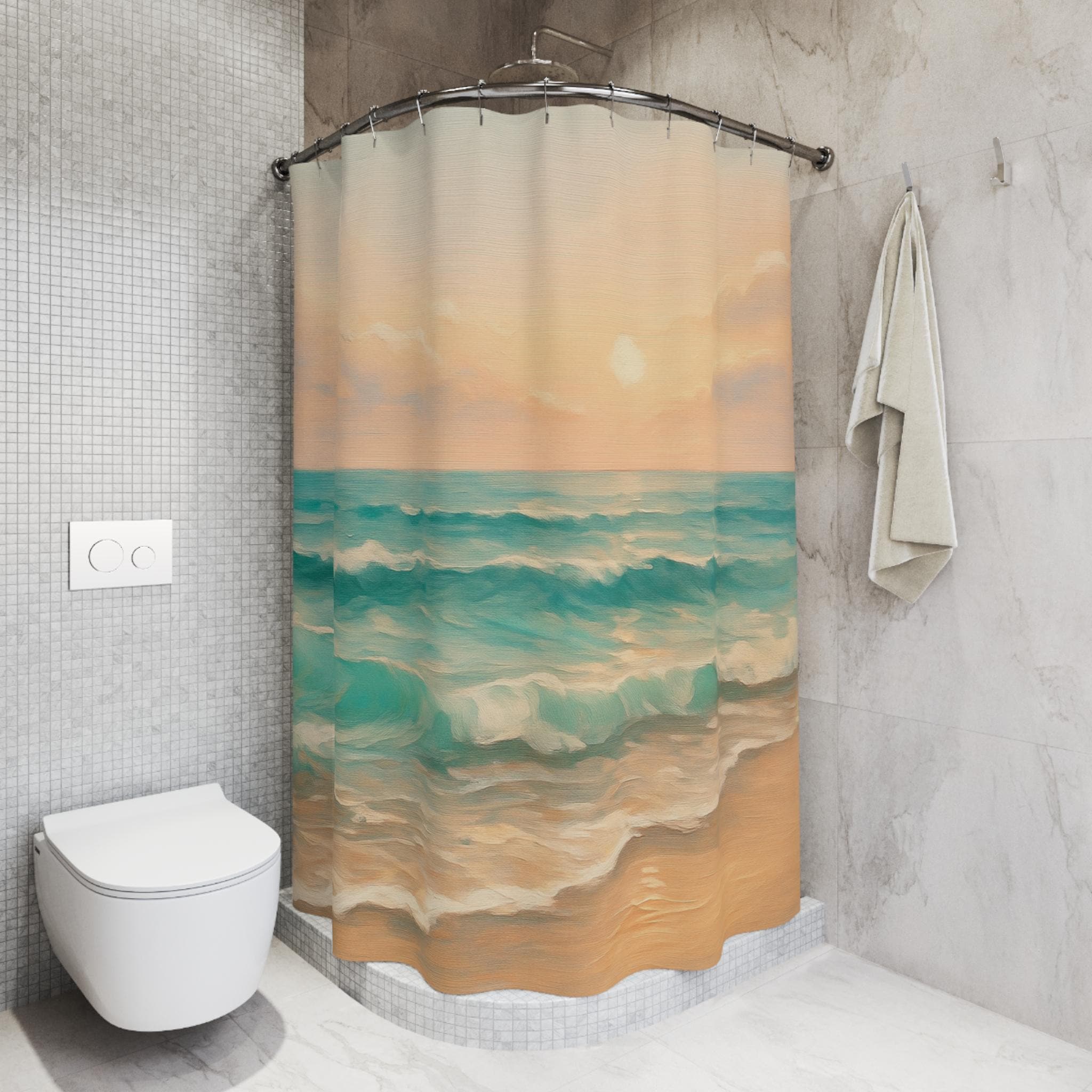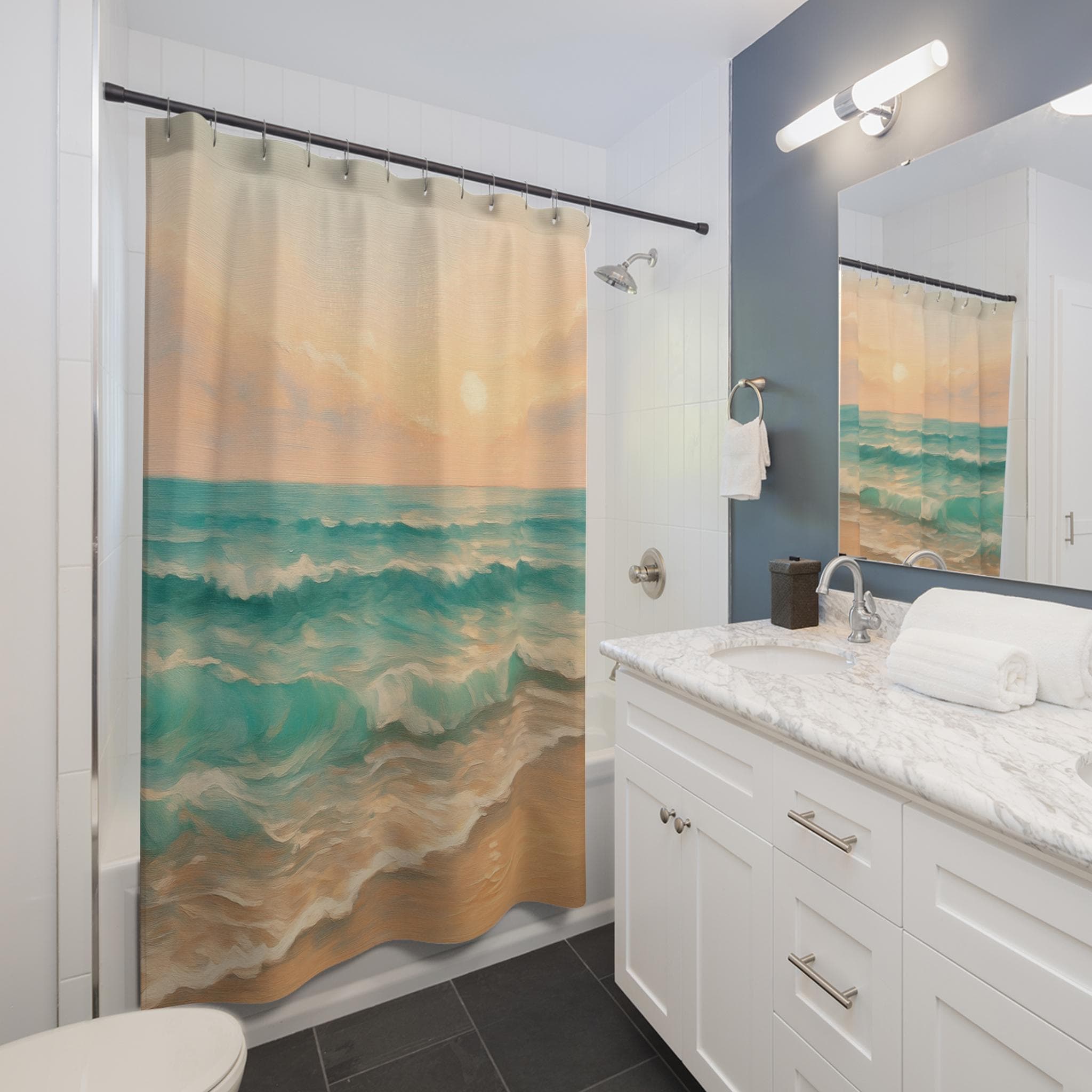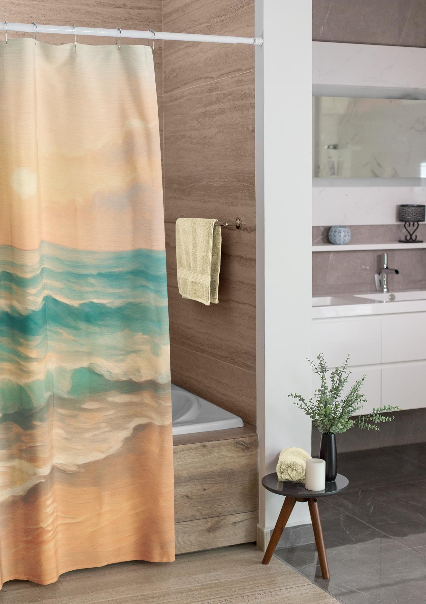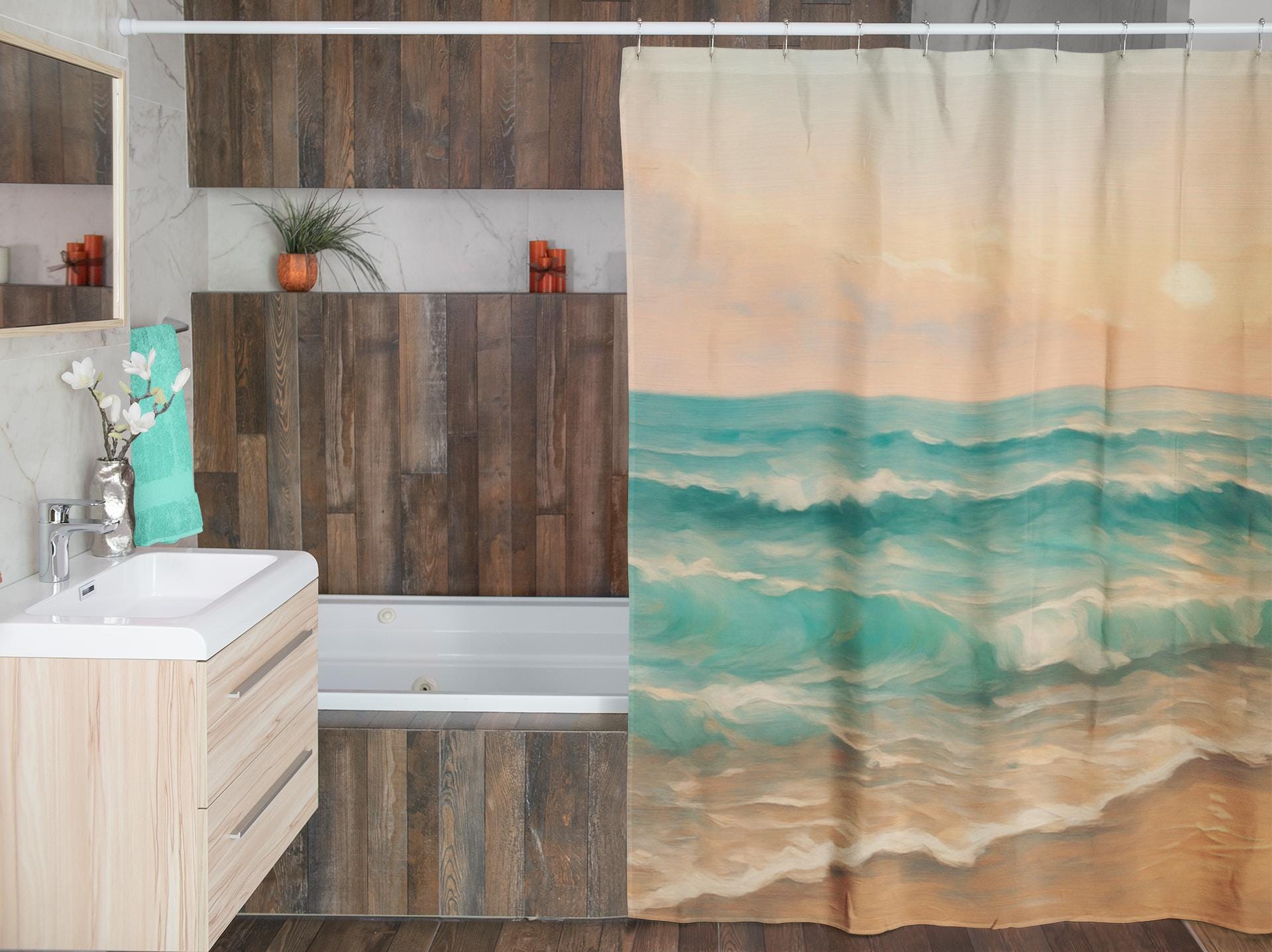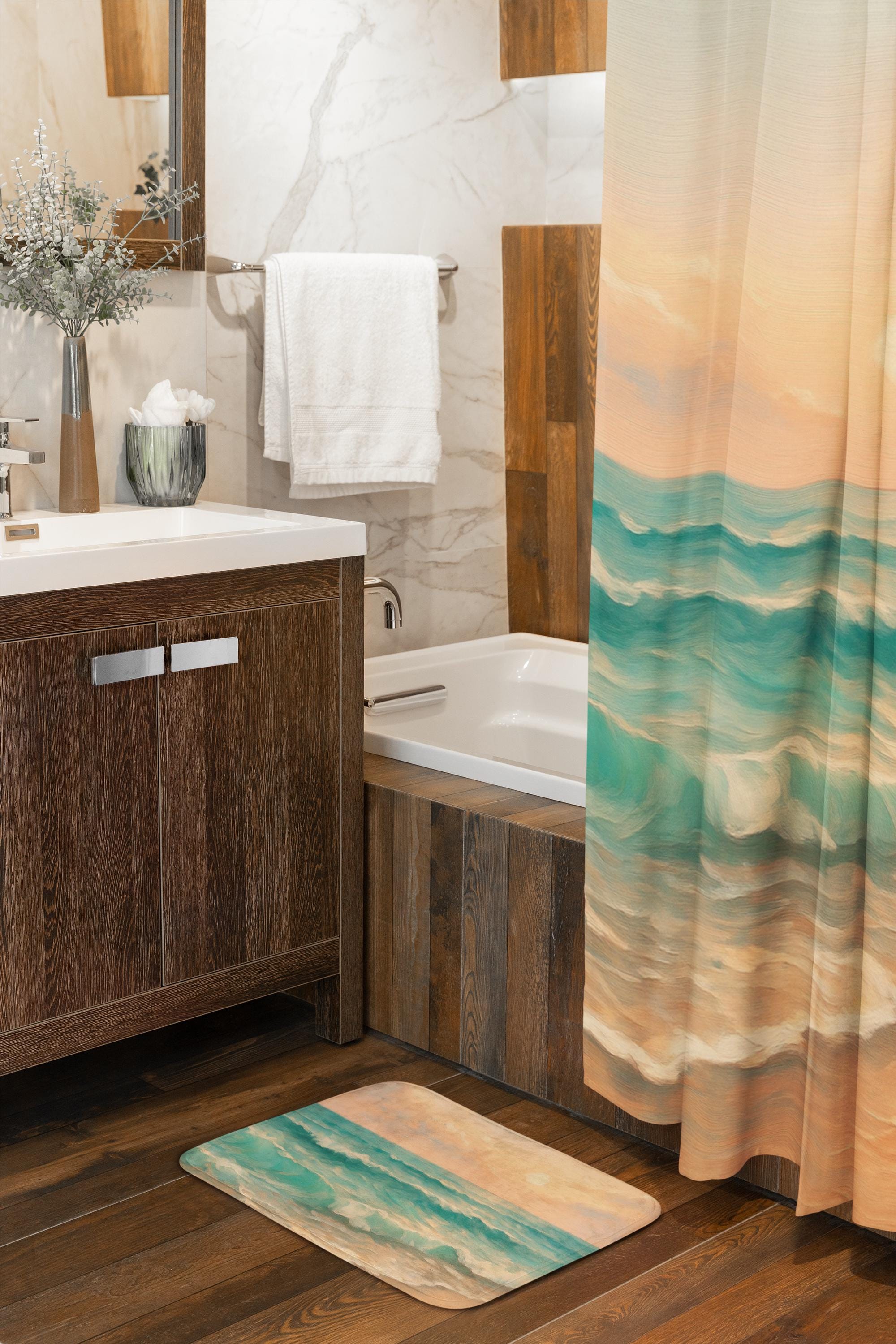 This ocean shower curtain adds texture and depth to your space with calming waves and warm coastal colors. Ideal for anyone who loves nautical décor, tropical beach themes, or modern coastal interiors, it creates a relaxing, spa-like atmosphere.