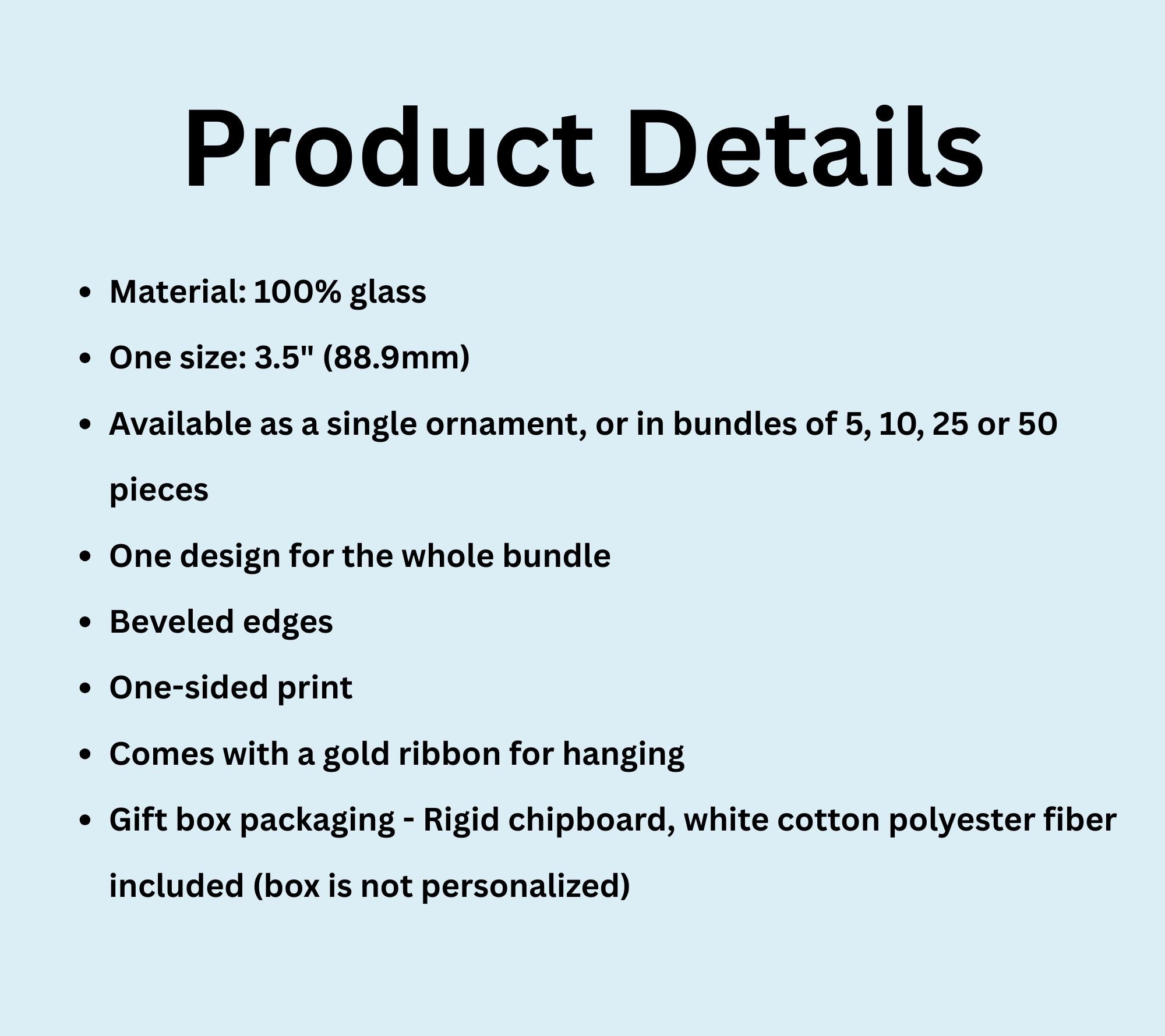 Available Options: Single ornament or bundle sets (5, 10, 25, or 50 pieces with the same design)