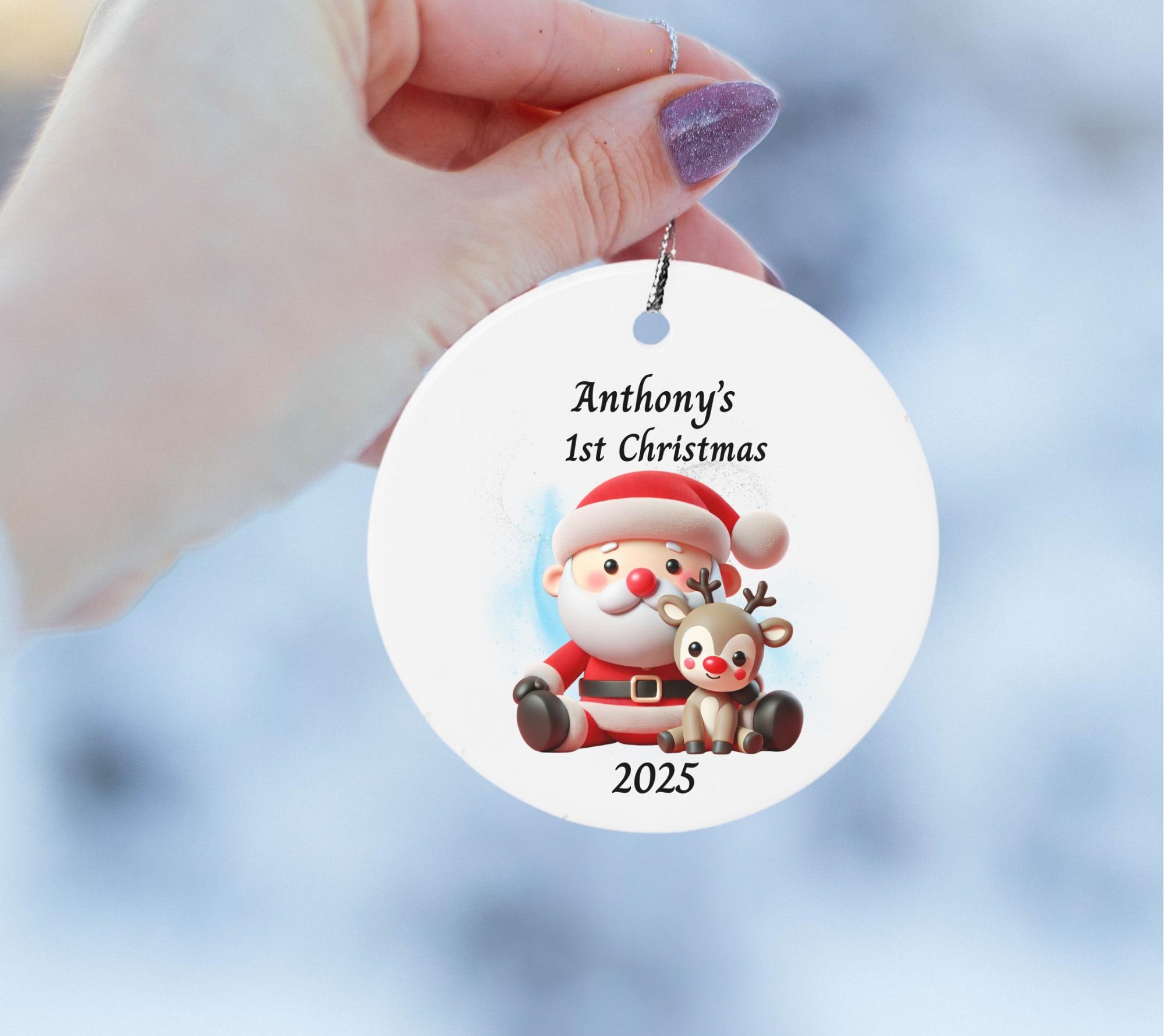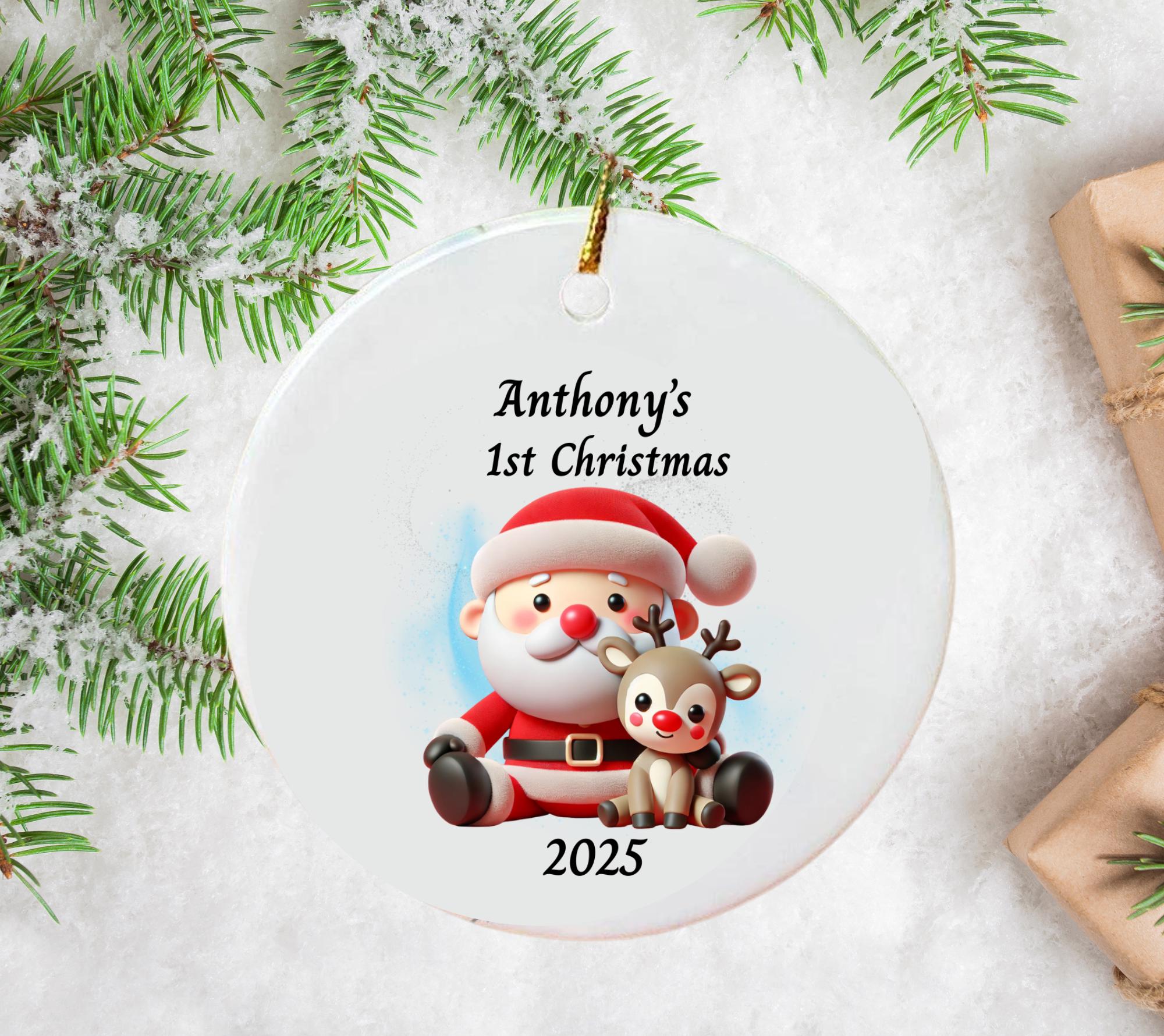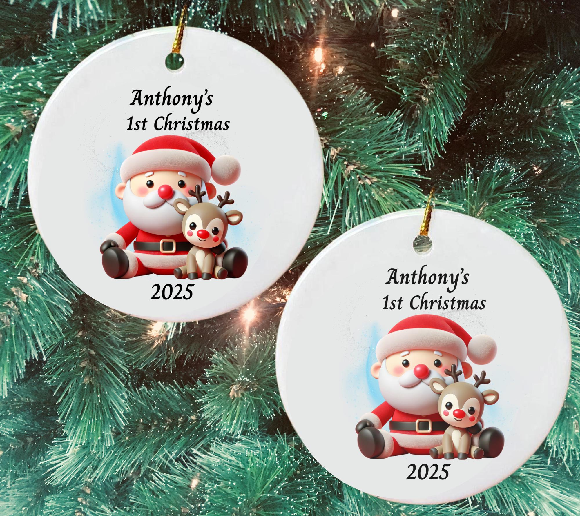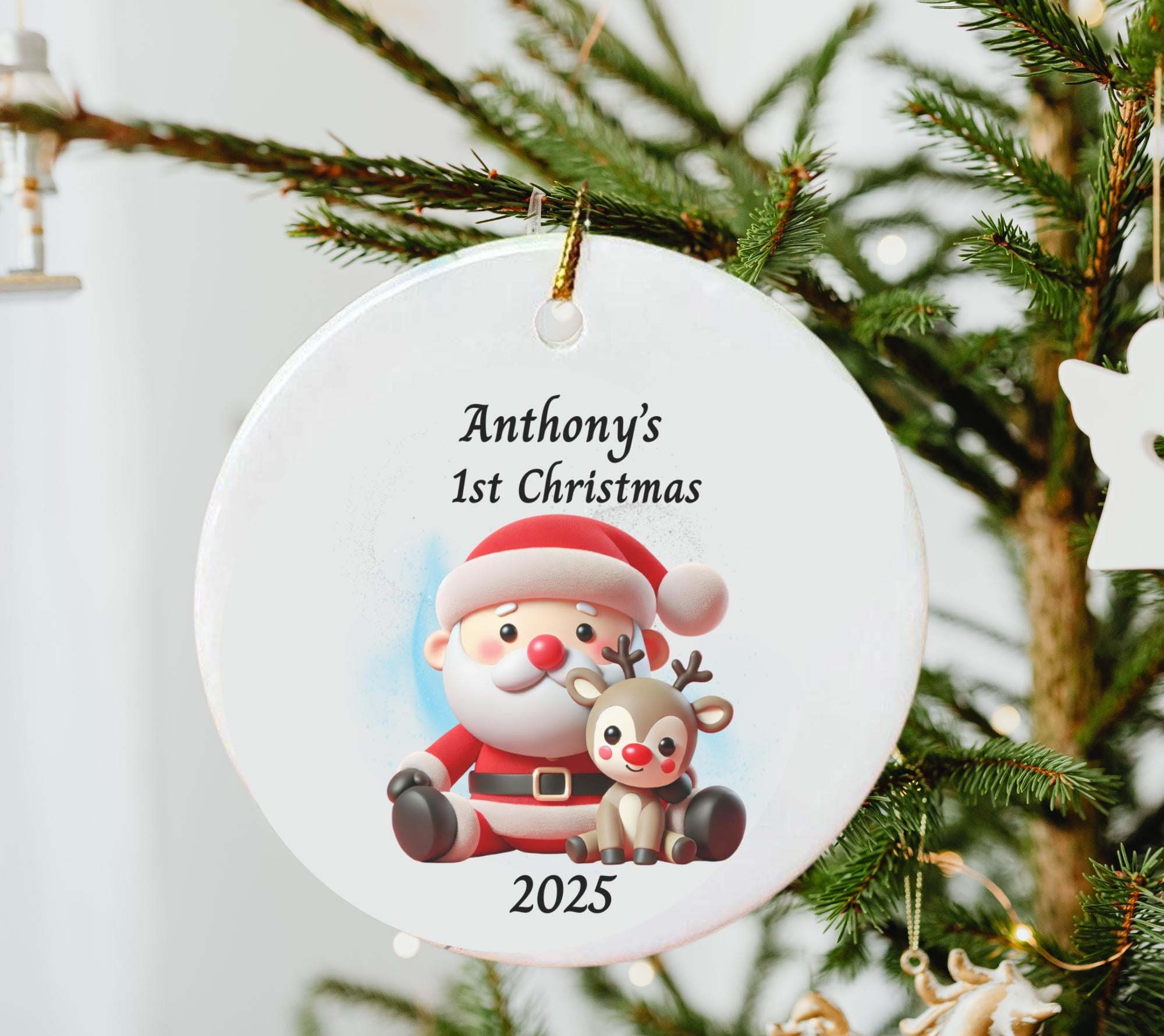 Celebrate the season with this adorable Santa and Reindeer Ornament, the perfect personalized Christmas decoration for your holiday tree. This festive design captures Santa Claus and his cute reindeer in cheerful holiday colors, making it a charming addition to any Christmas home décor or a thoughtful gift for kids, families, and collectors.