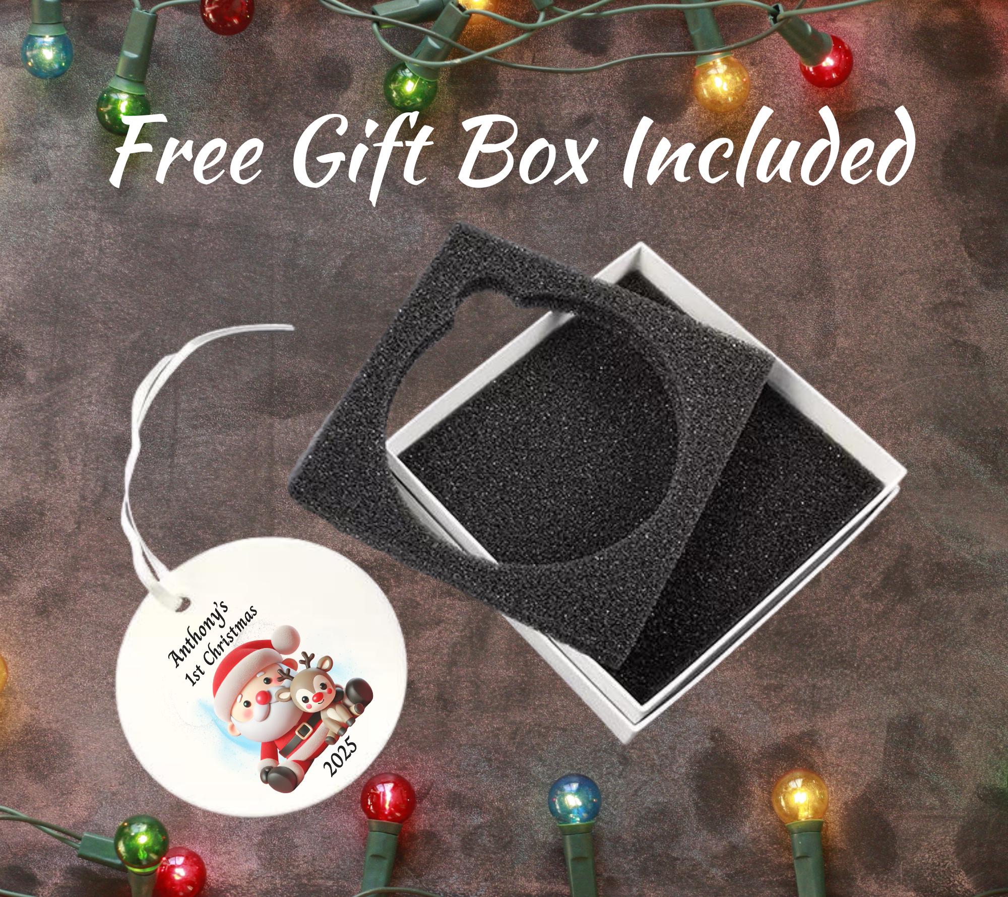 Each ornament is custom-printed with your personalization, creating a unique holiday keepsake ornament that brings warmth and joy year after year. Whether you’re decorating your own tree, gifting a loved one, or starting a new family Christmas tradition, this Santa and reindeer ornament is a timeless treasure that will make everyone smile.