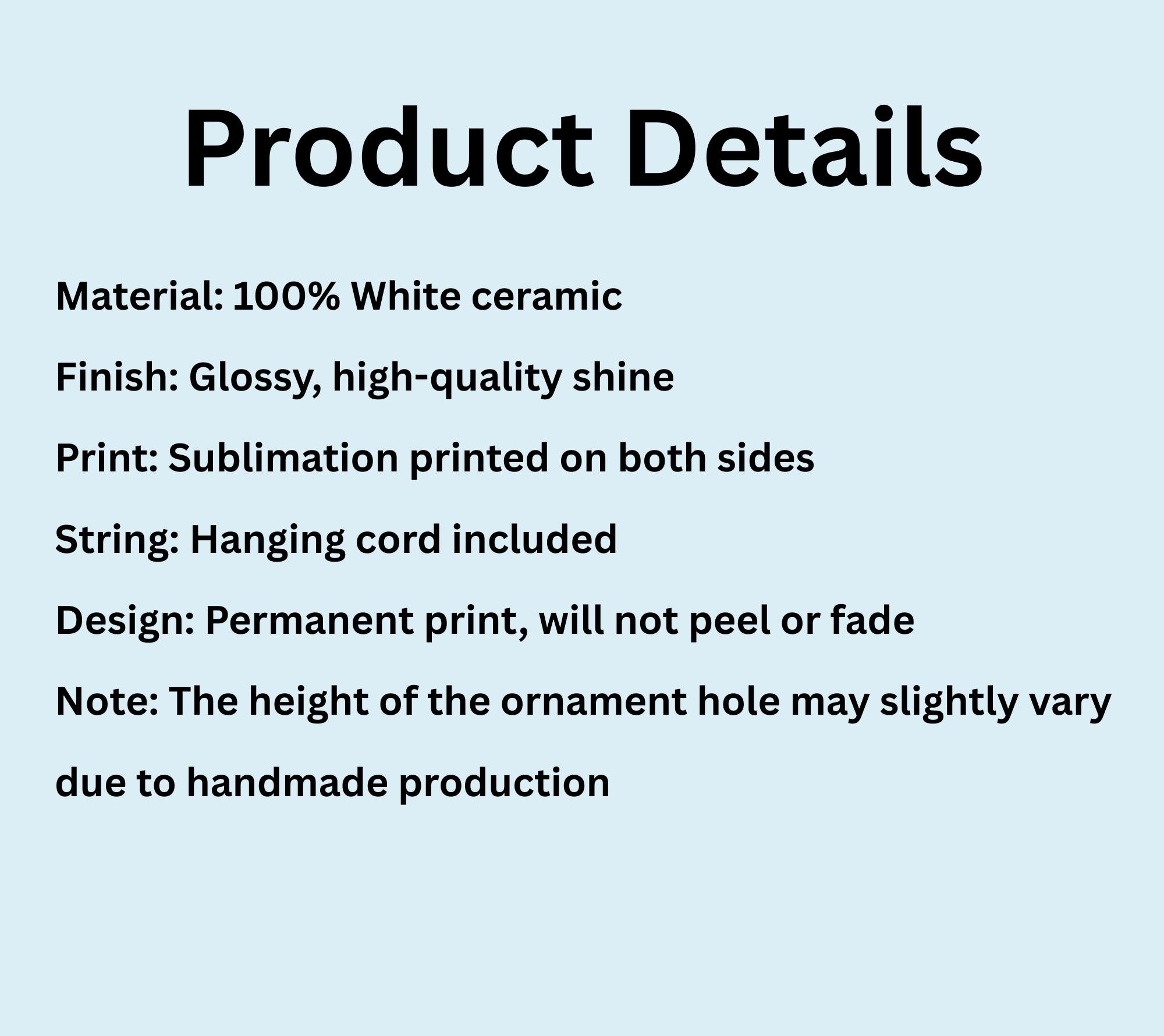 Custom printed with your baby’s name and the year, this holiday keepsake ornament makes a thoughtful gift for new parents, grandparents, or godparents. The snowflake shape adds a touch of winter charm, while the glossy ceramic finish gives it a timeless, high-quality feel, perfect for displaying year after year.