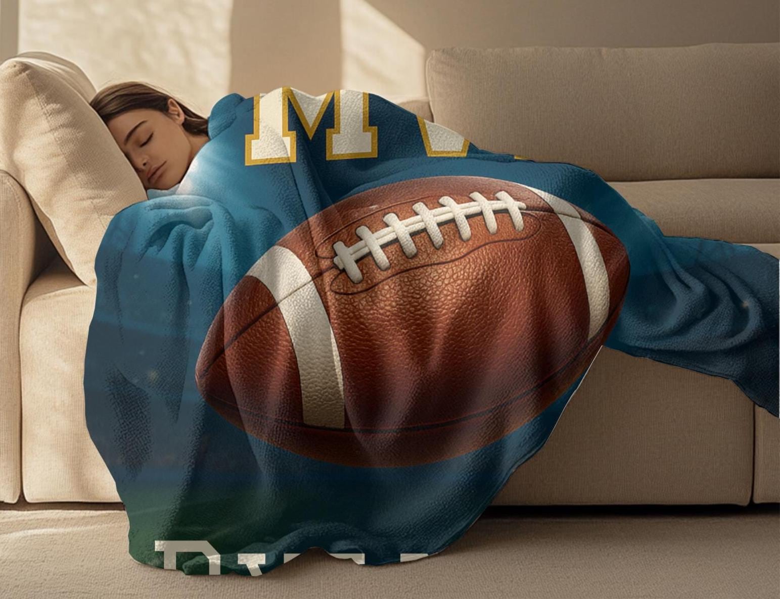 Whether you are decorating a sports-themed bedroom, surprising your little athlete, or gifting to a football-loving family, this personalized blanket is a standout piece that makes every child feel like the MVP.