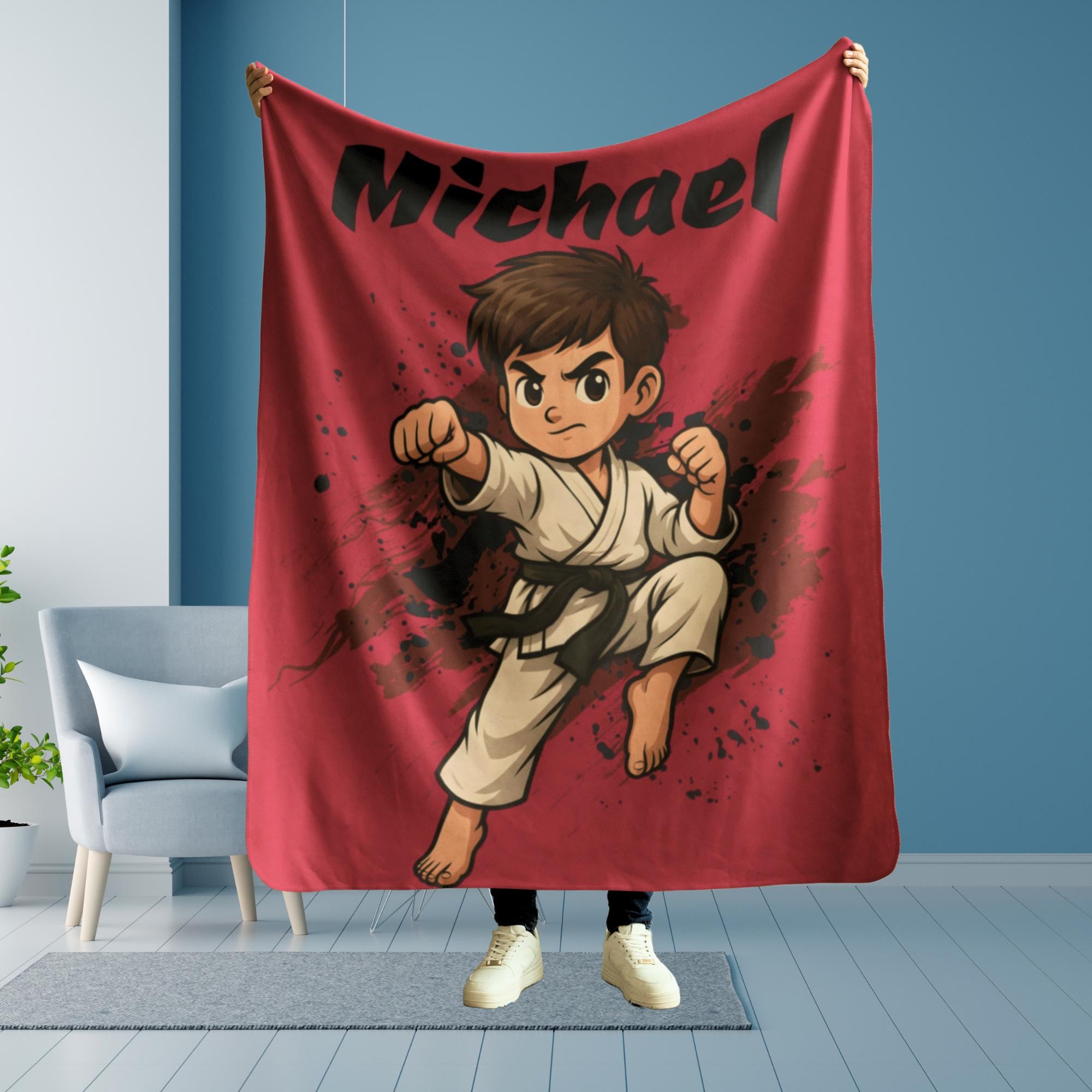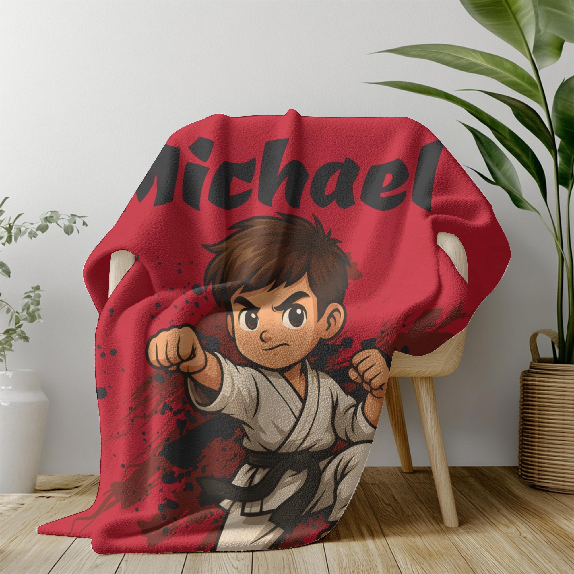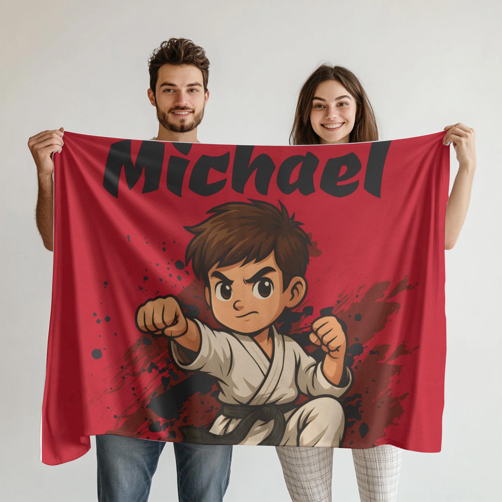 Perfect for boys ages 6–11, this karate blanket features a strong color palette, dynamic motion effects, and a fearless martial arts stance that makes it feel like a true champion’s blanket. Whether he practices karate, taekwondo, martial arts, or simply loves cool action designs, this blanket is the ultimate personalized gift.