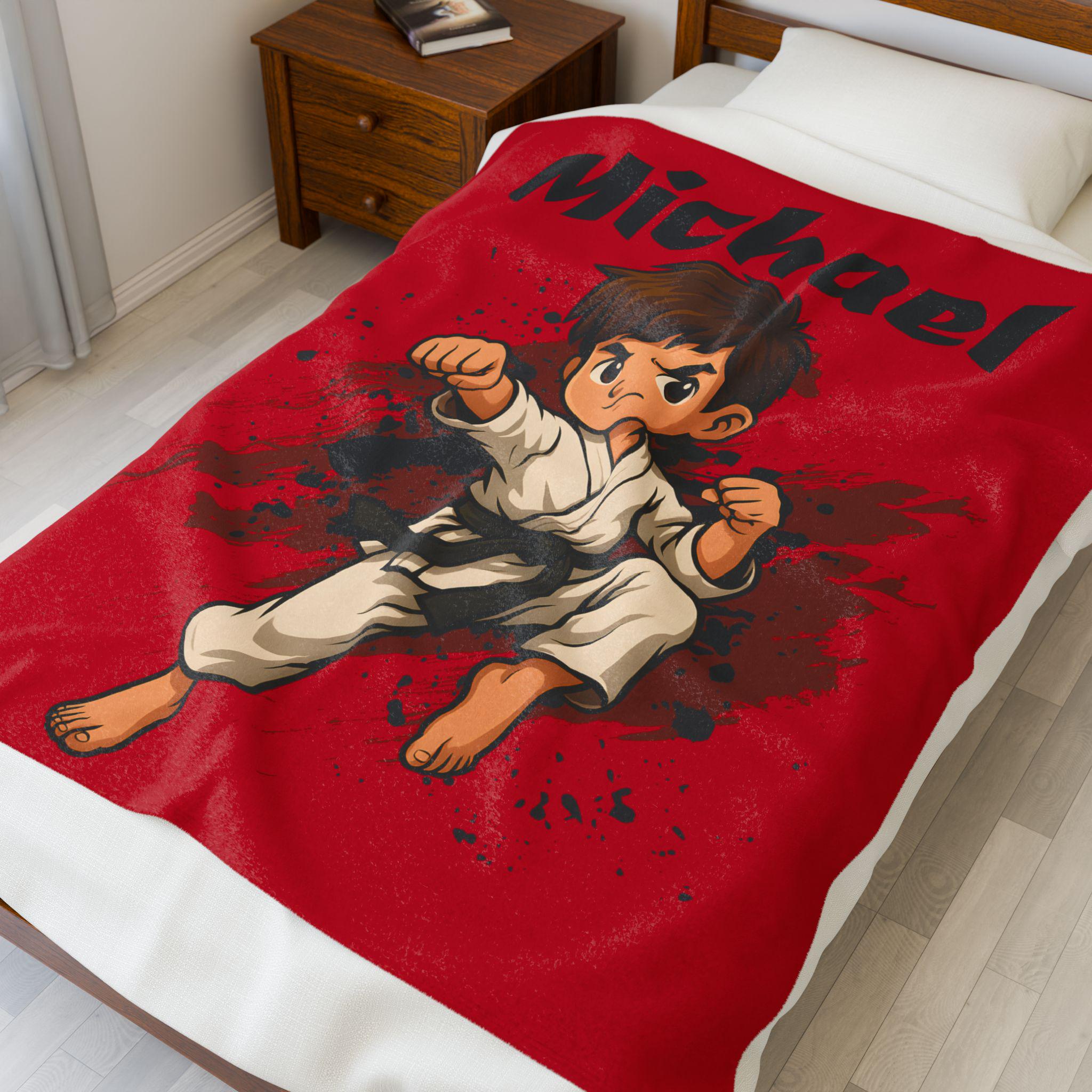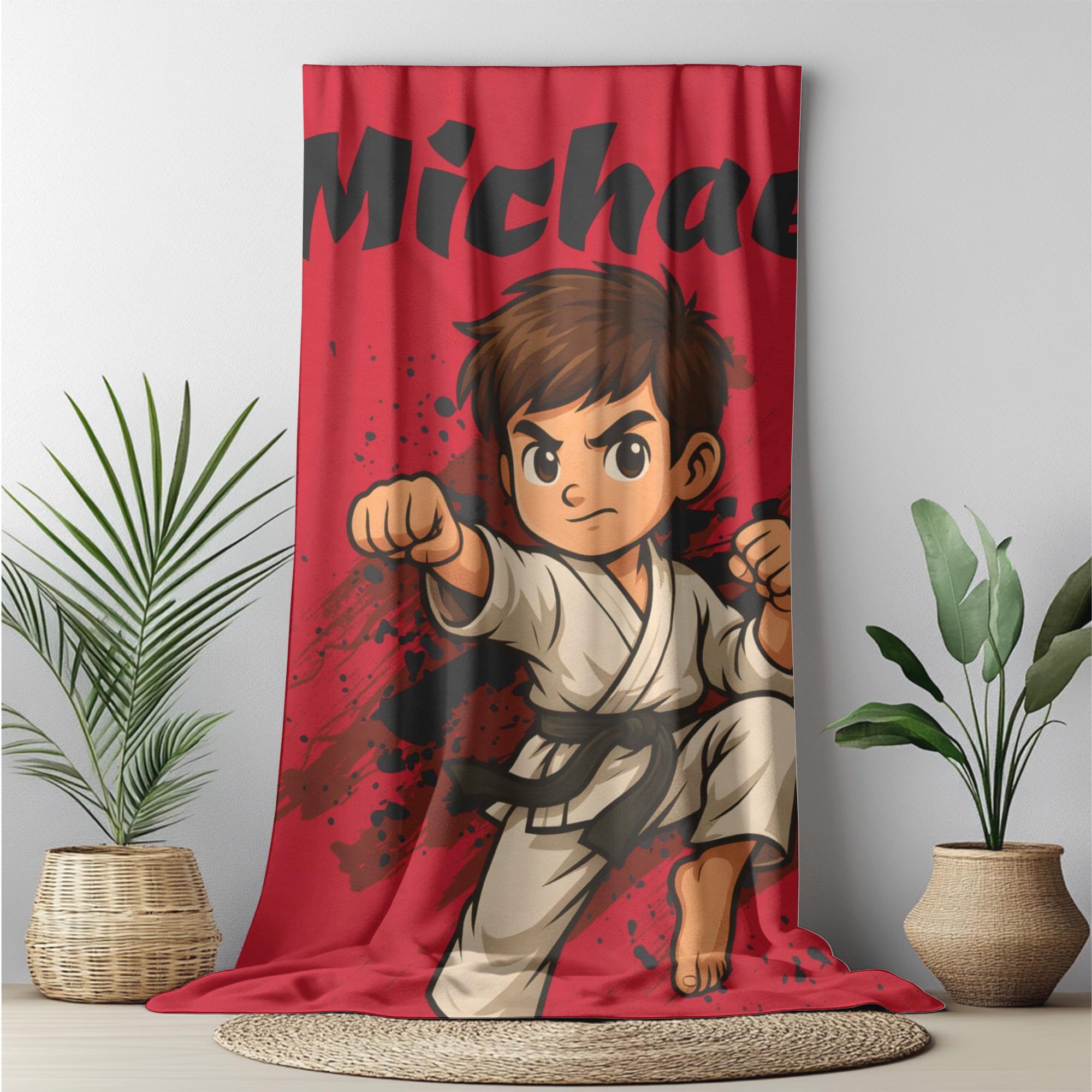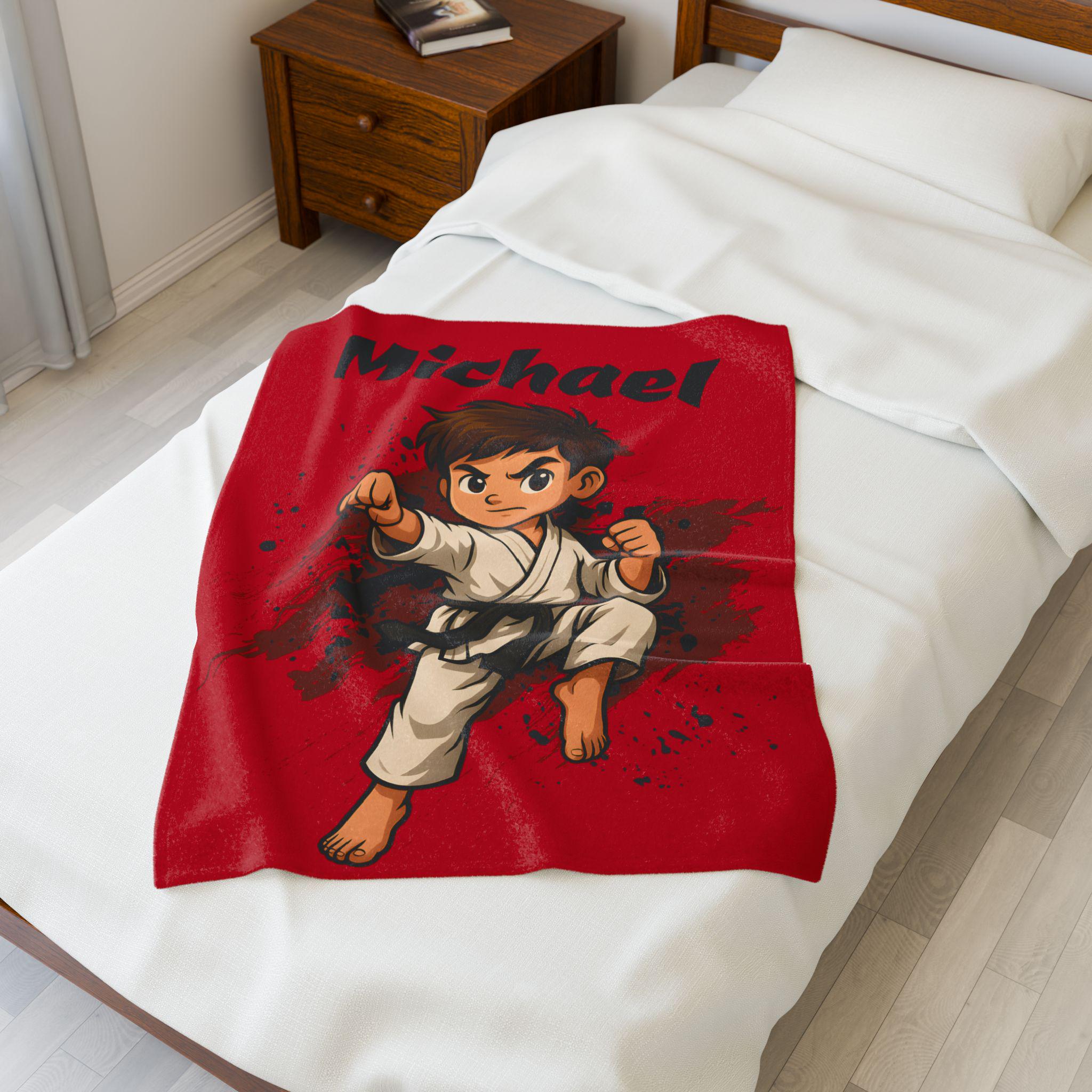 Perfect for boys ages 6–11, this karate blanket features a strong color palette, dynamic motion effects, and a fearless martial arts stance that makes it feel like a true champion’s blanket. Whether he practices karate, taekwondo, martial arts, or simply loves cool action designs, this blanket is the ultimate personalized gift.