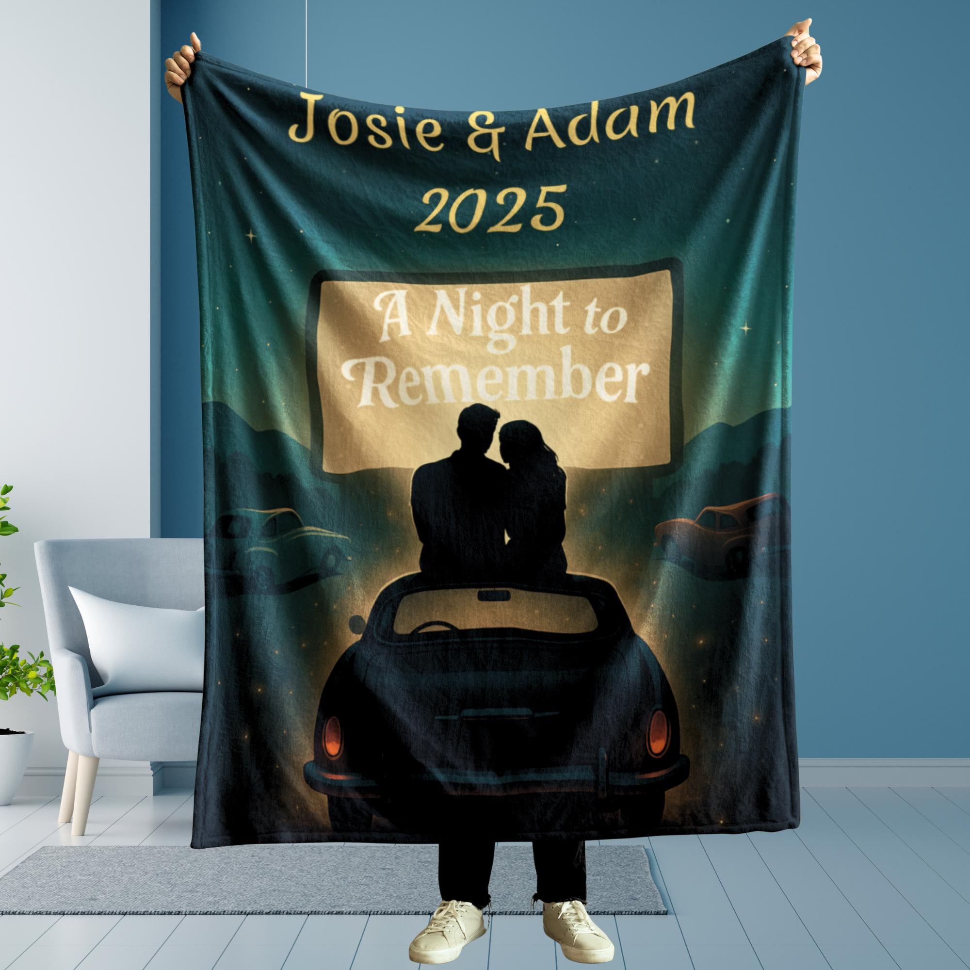 Designed for couples who love cozy nights, nostalgic memories, and sharing time together, this blanket captures the magic of a classic drive-in under the stars. Whether it’s a first date, an anniversary, or simply “your night,” this piece becomes a keepsake that holds meaning long after the credits roll.