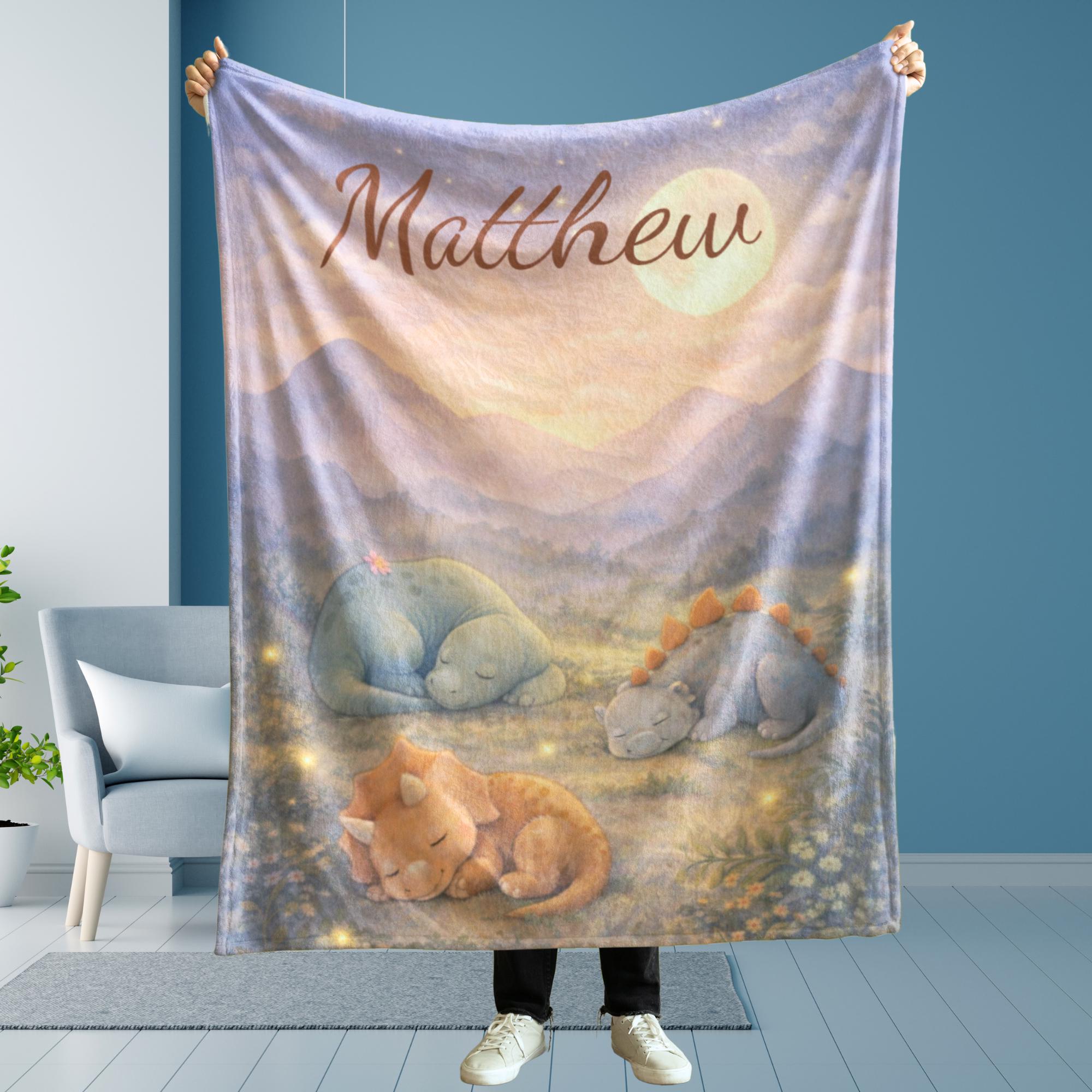Create a peaceful bedtime space with this gentle dinosaur kids blanket, designed to feel calm, cozy, and comforting.