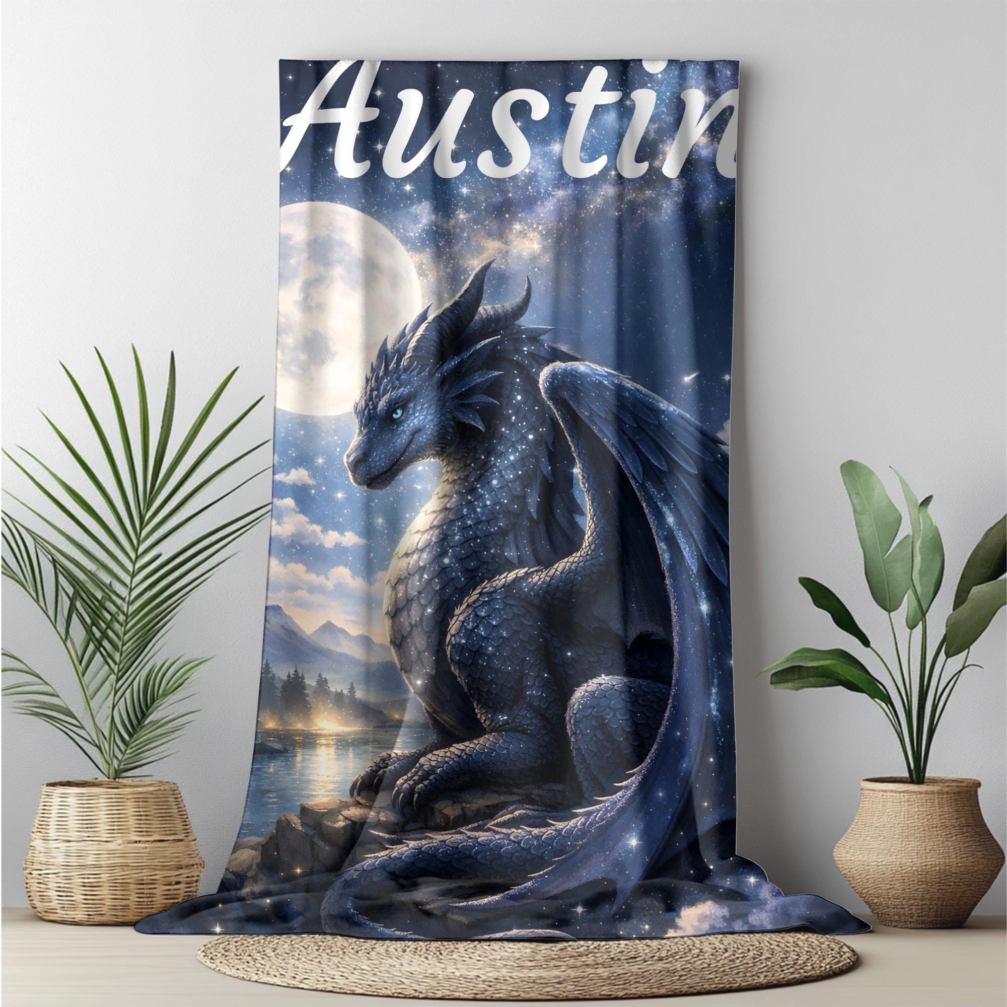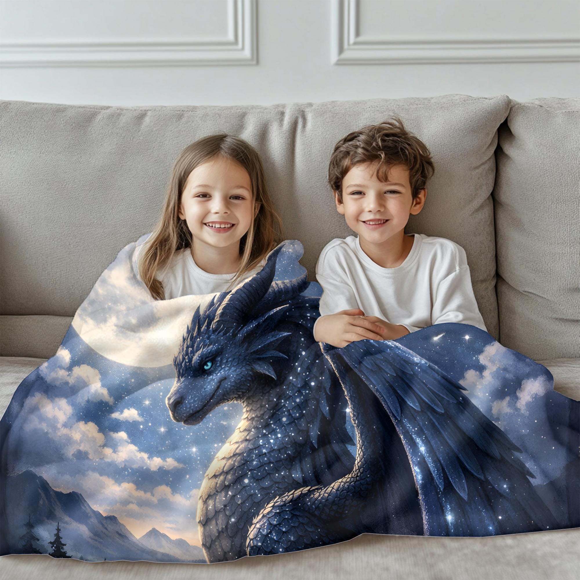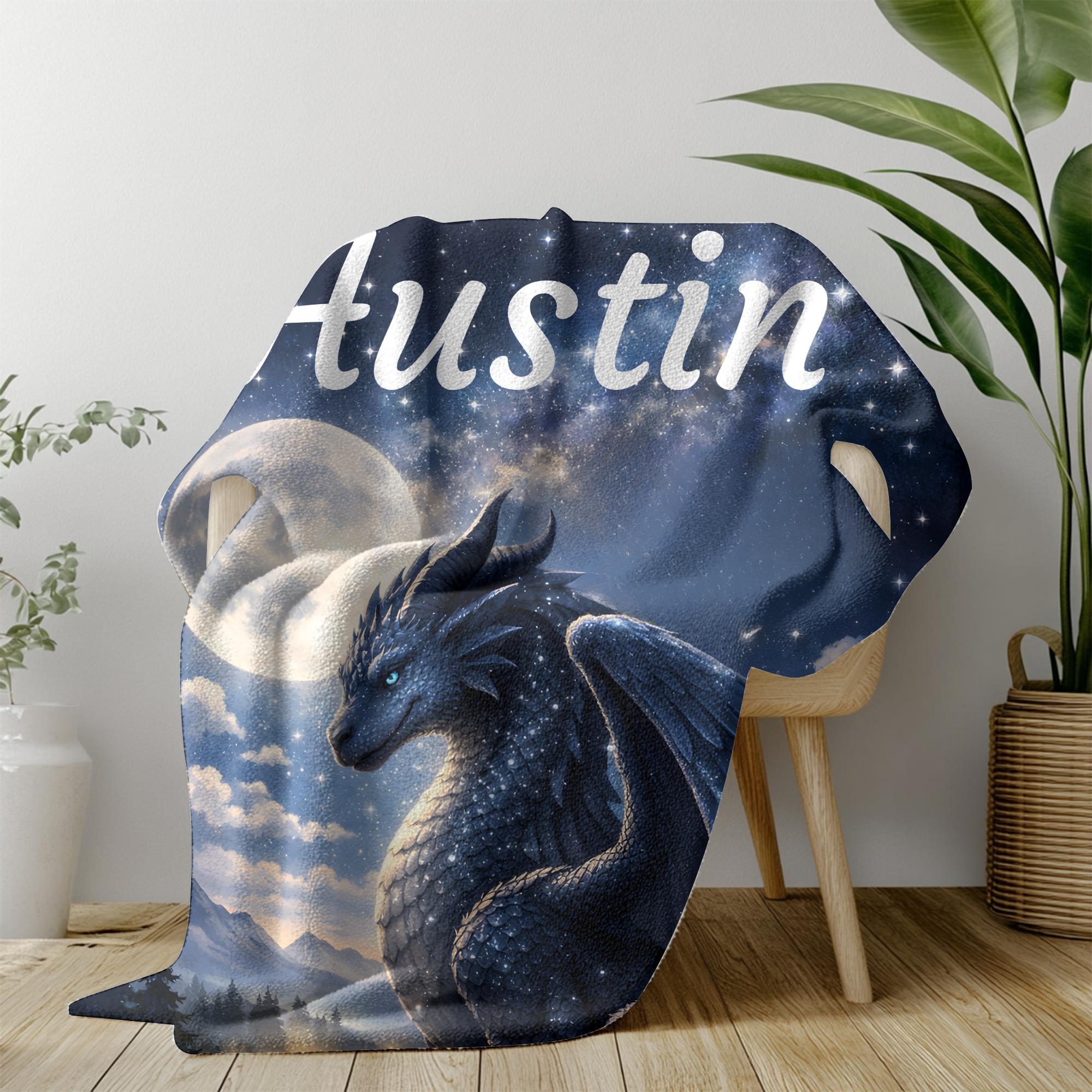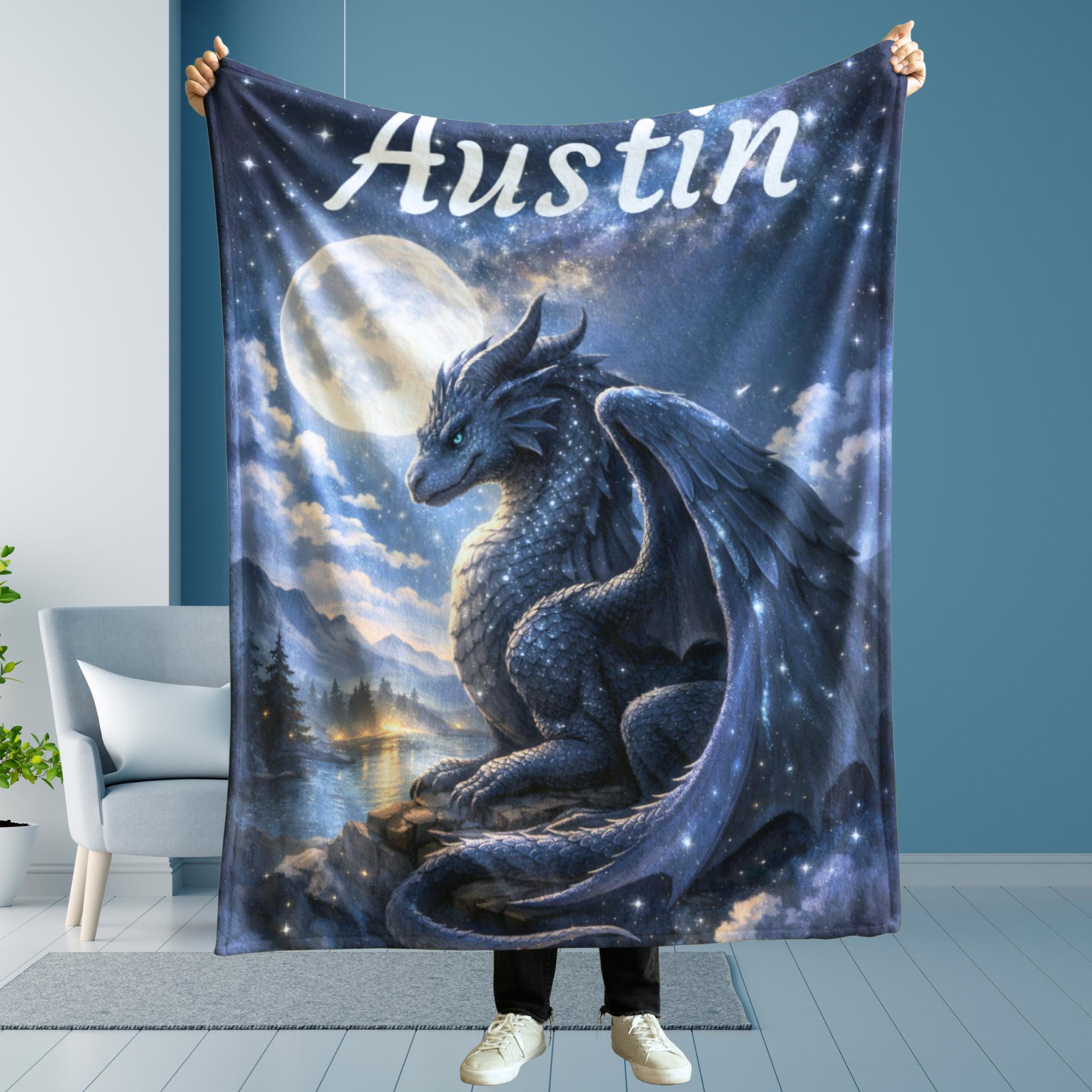 Designed for kids ages 5–9, this dragon blanket feels bold and magical without being scary or babyish. The deep night-sky colors and dreamy celestial glow make it perfect for bedtime, reading, or quiet moments of comfort.