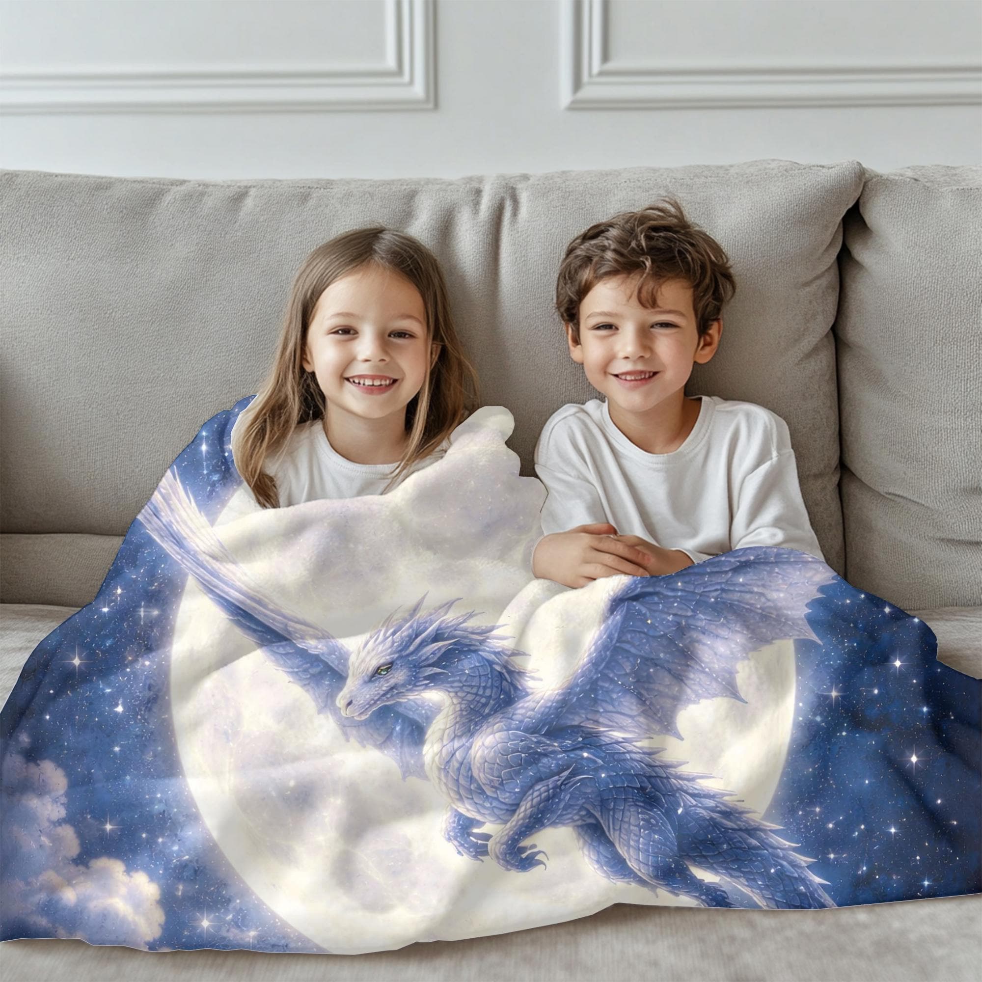 Designed to appeal to both kids and tweens, this dragon blanket feels adventurous and magical without being childish. The dynamic flying dragon and rich night-sky colors make it perfect for big kids who love dragons, fantasy worlds, and imaginative decor that grows with them.