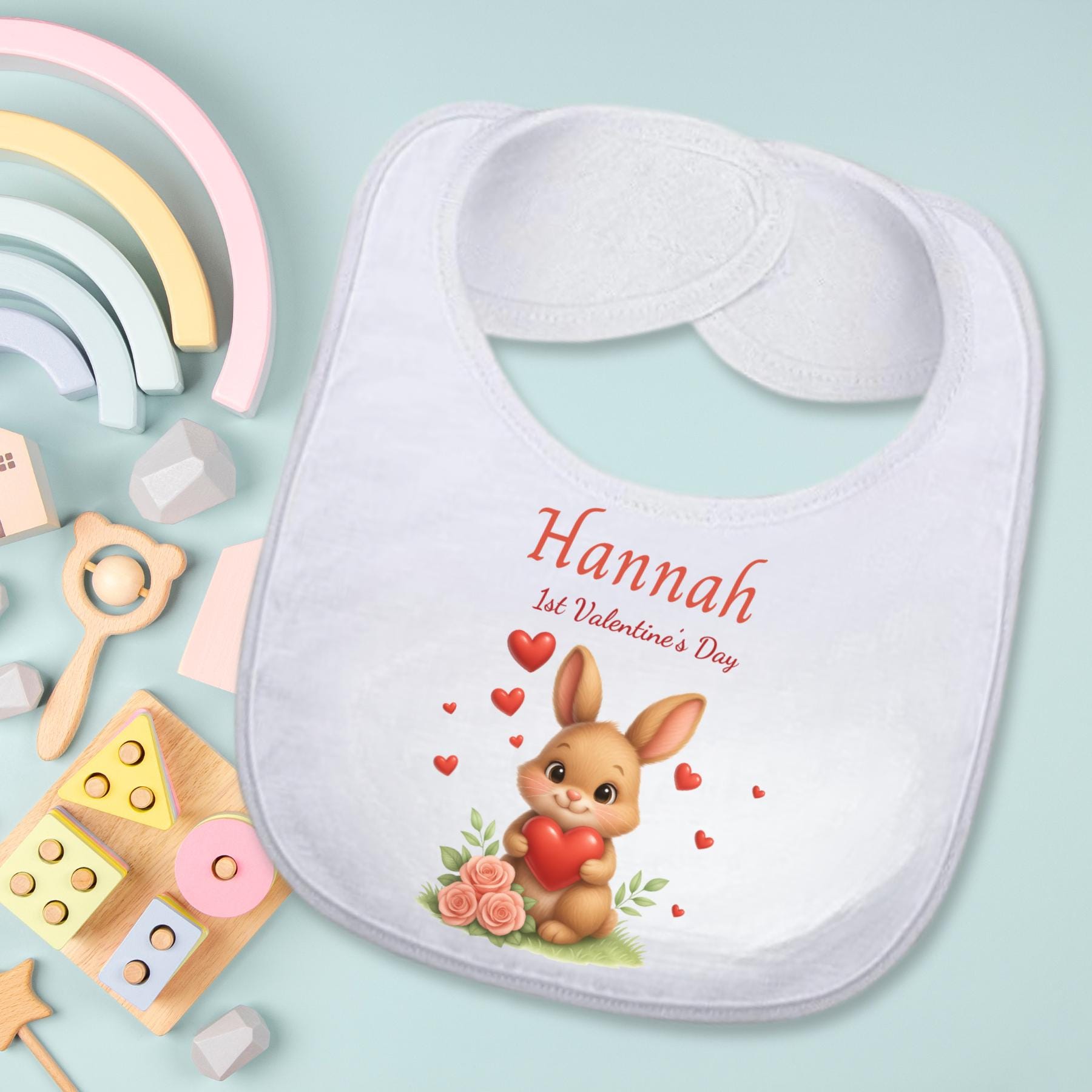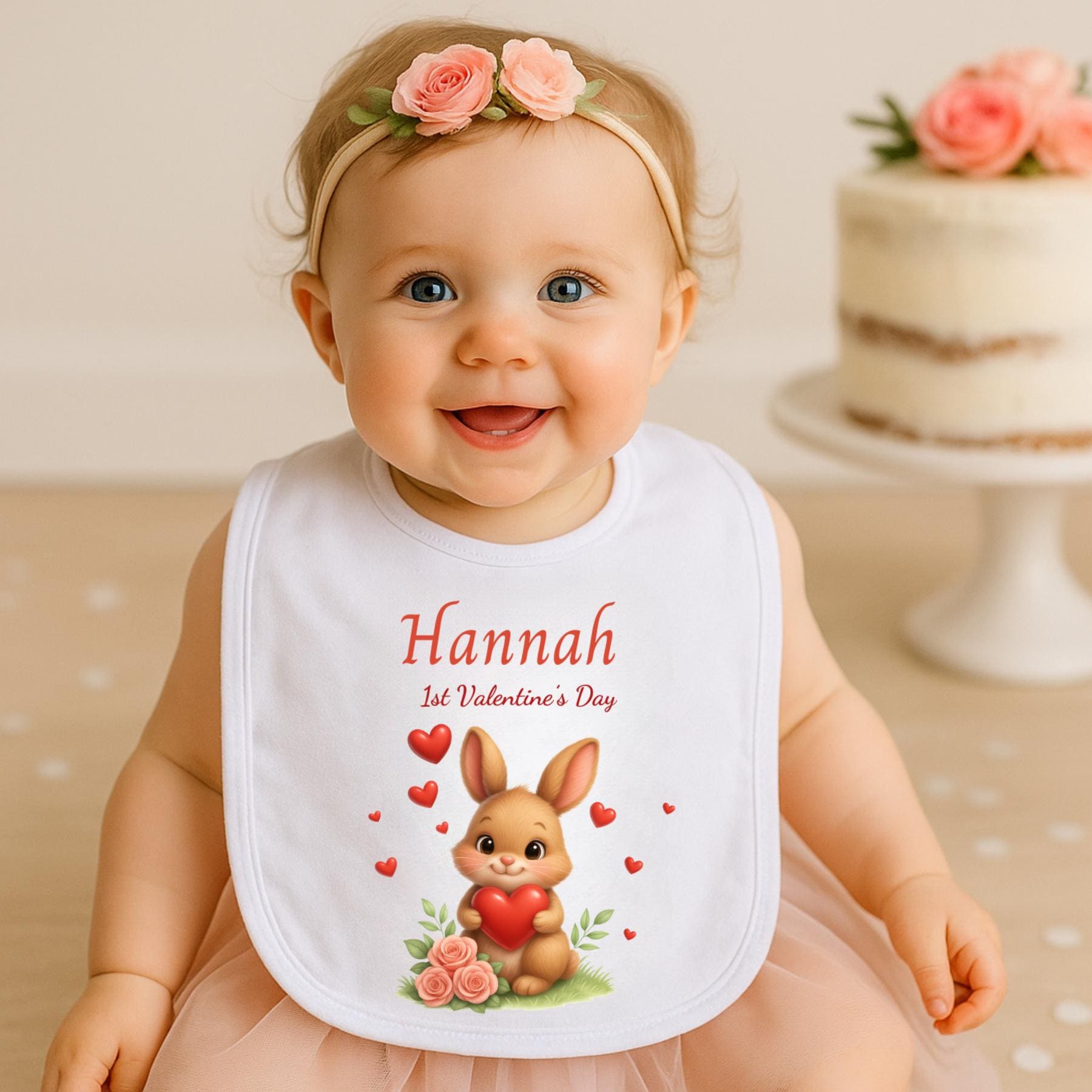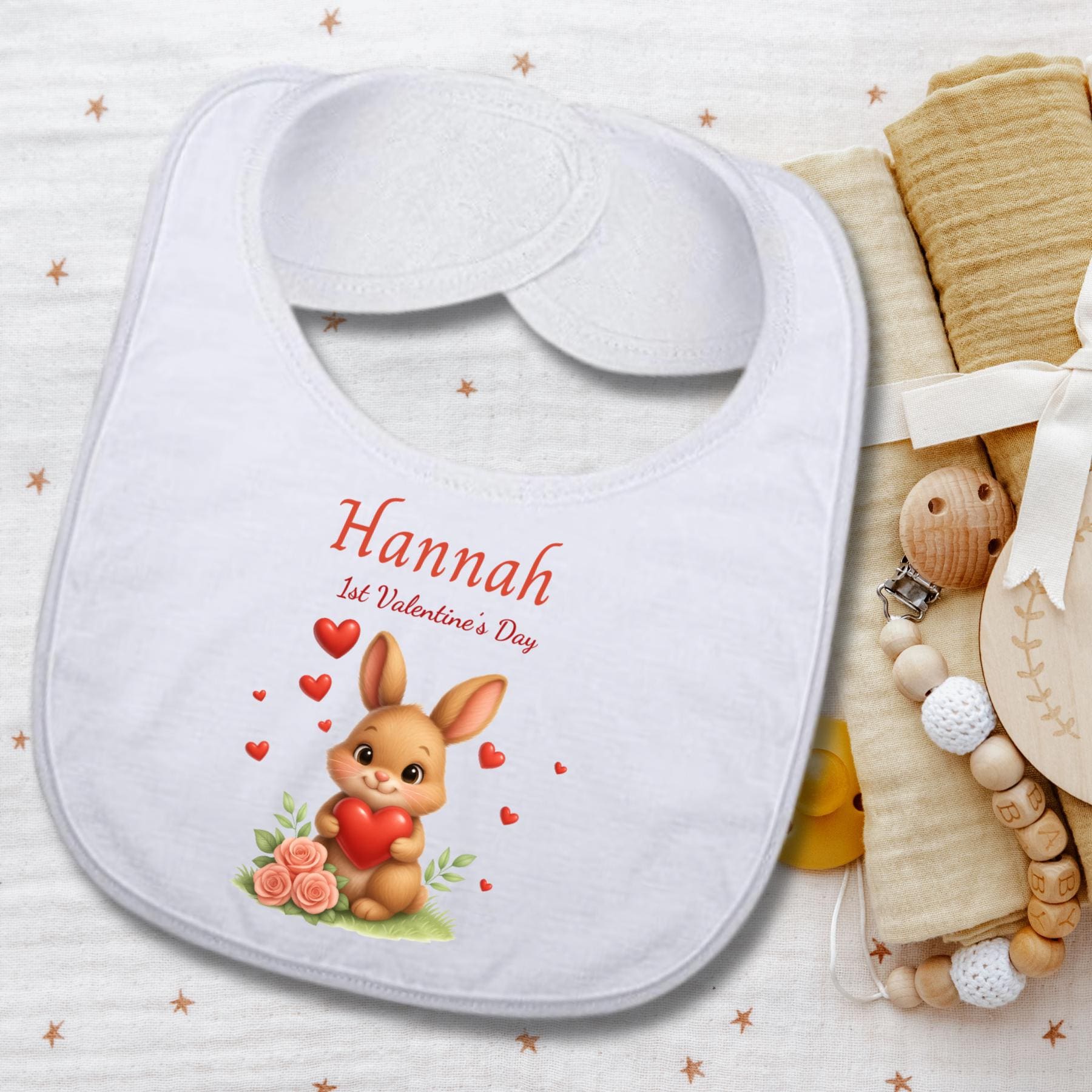 Make your little one’s first Valentine’s Day extra sweet with this adorable personalized bunny bib! Featuring a cute bunny holding a heart, soft rose details, and your baby's name, this bib is the perfect mix of keepsake and celebration.