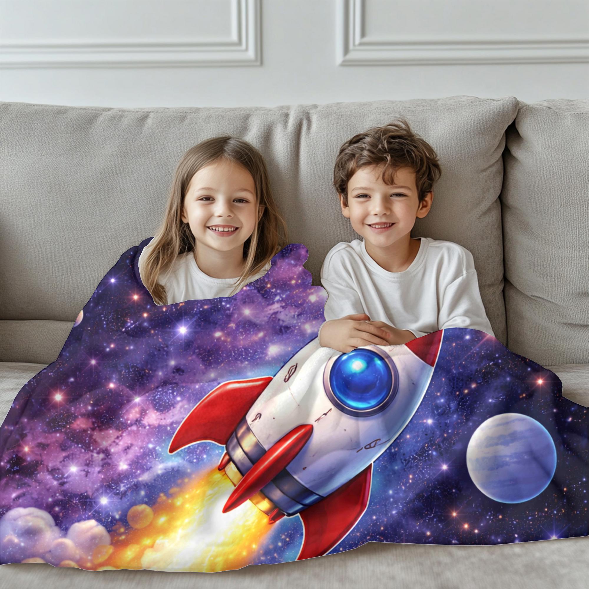 Perfect for kids ages 3–7, this rocket ship throw works beautifully for bedtime, reading time, naps, or space-themed bedrooms and playrooms. Parents love the bright colors and imaginative theme, while kids love feeling like they’re on their own rocket adventure.