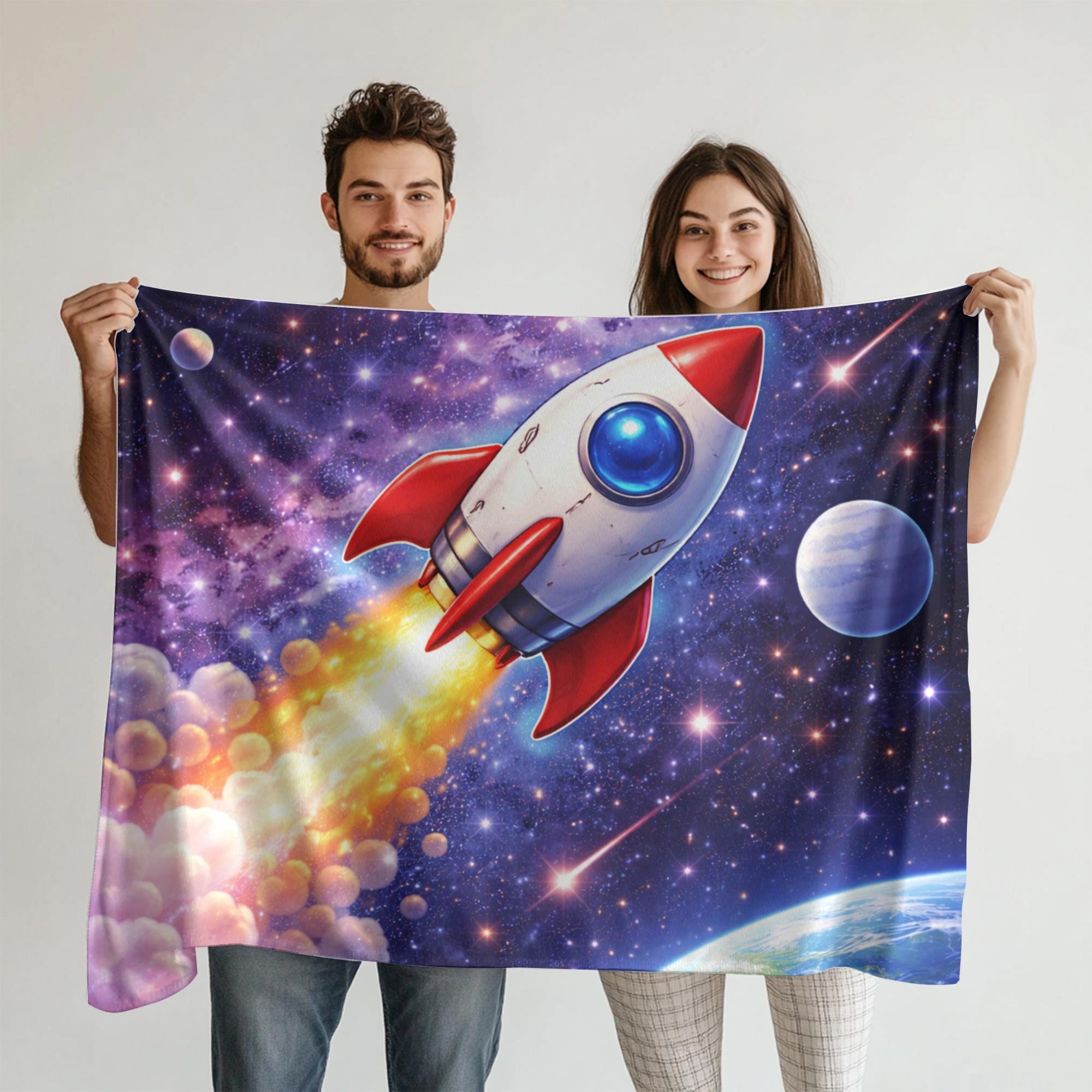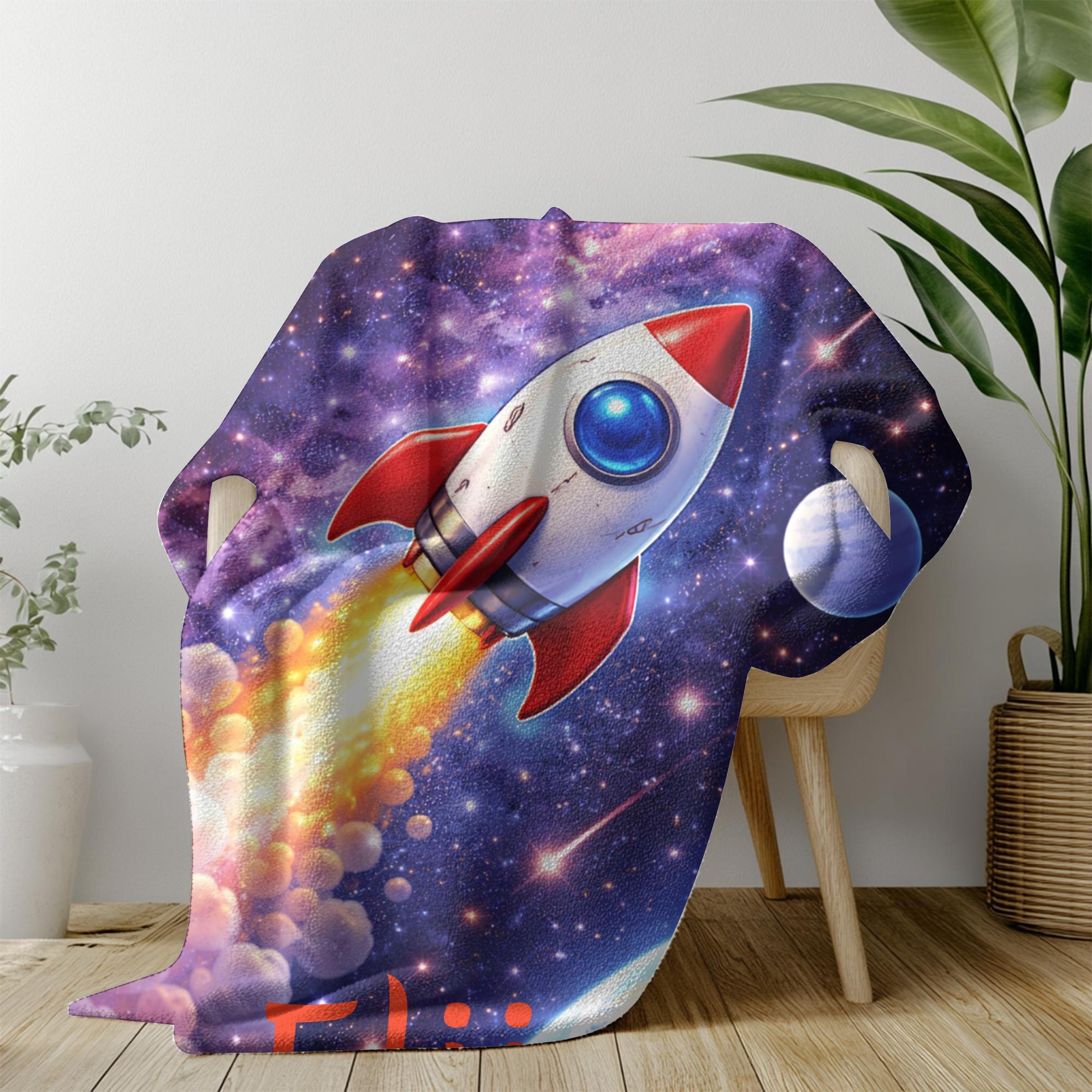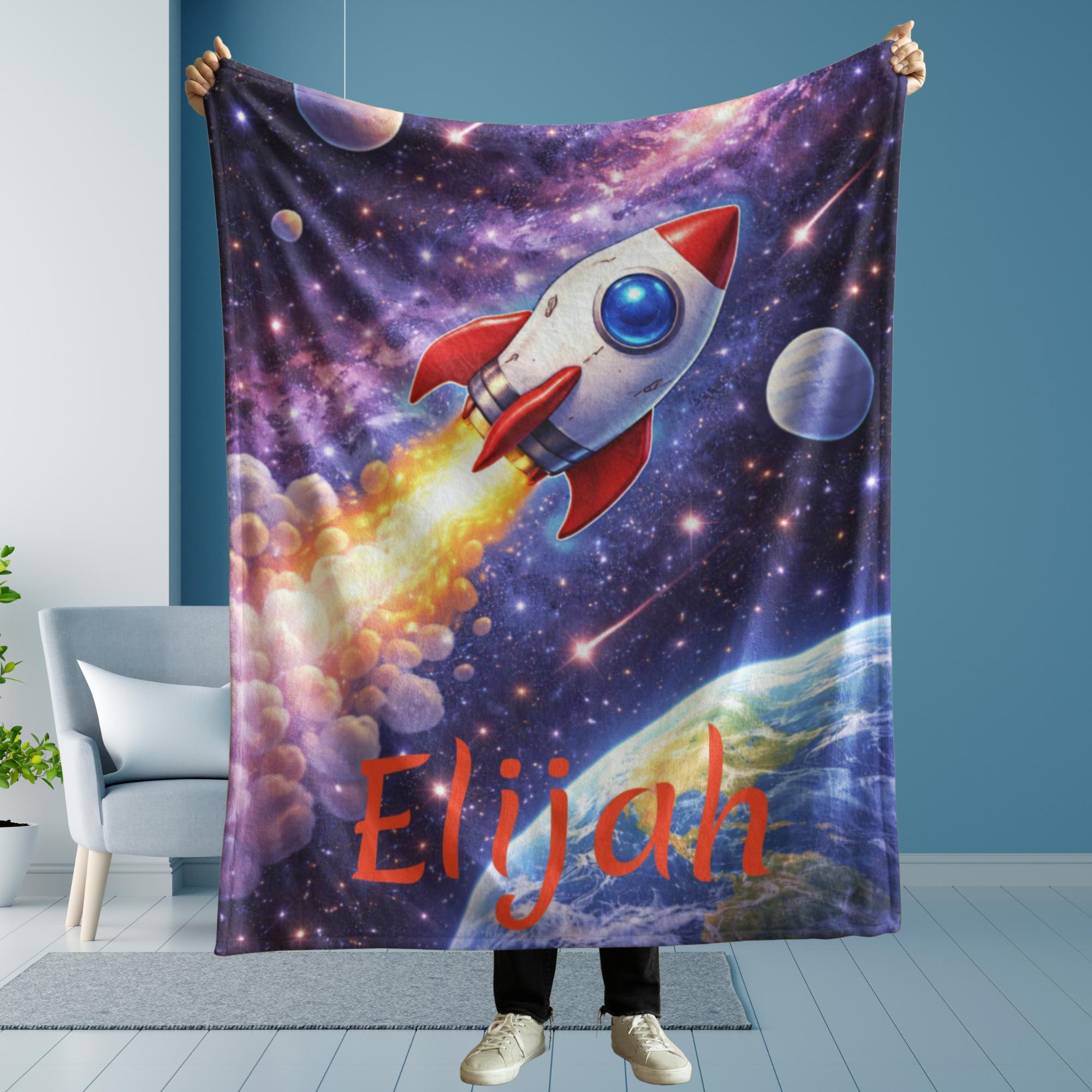 Whether you’re shopping for a birthday, holiday, or special gift, this custom rocket ship blanket is a fun and comforting choice for young space lovers.