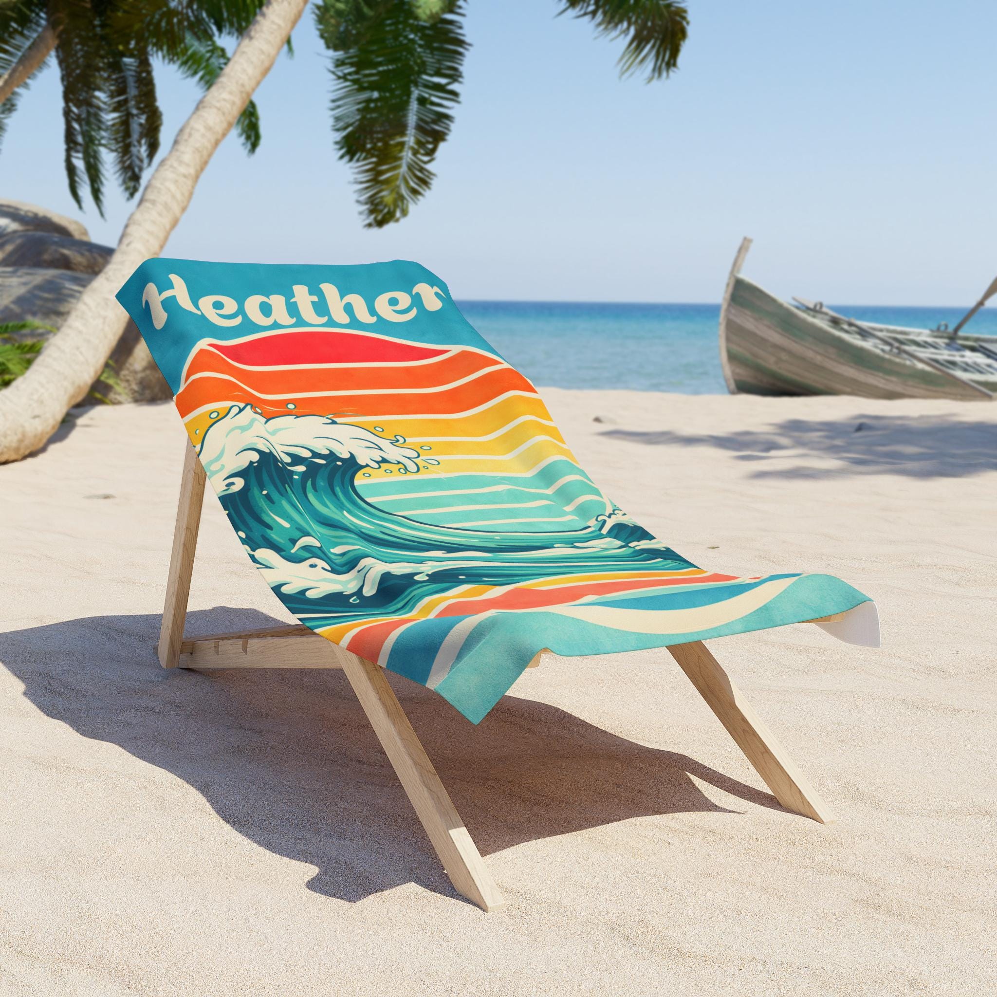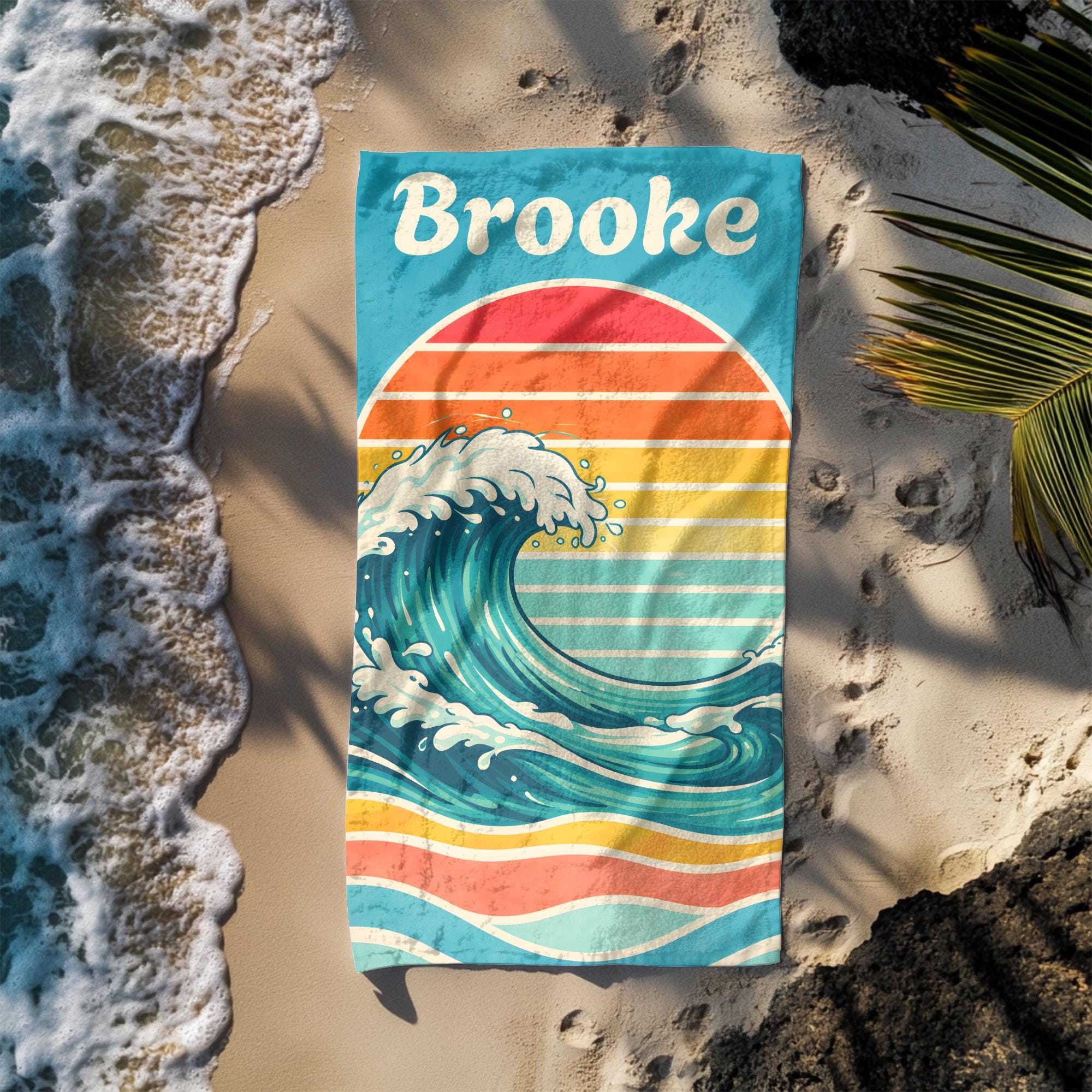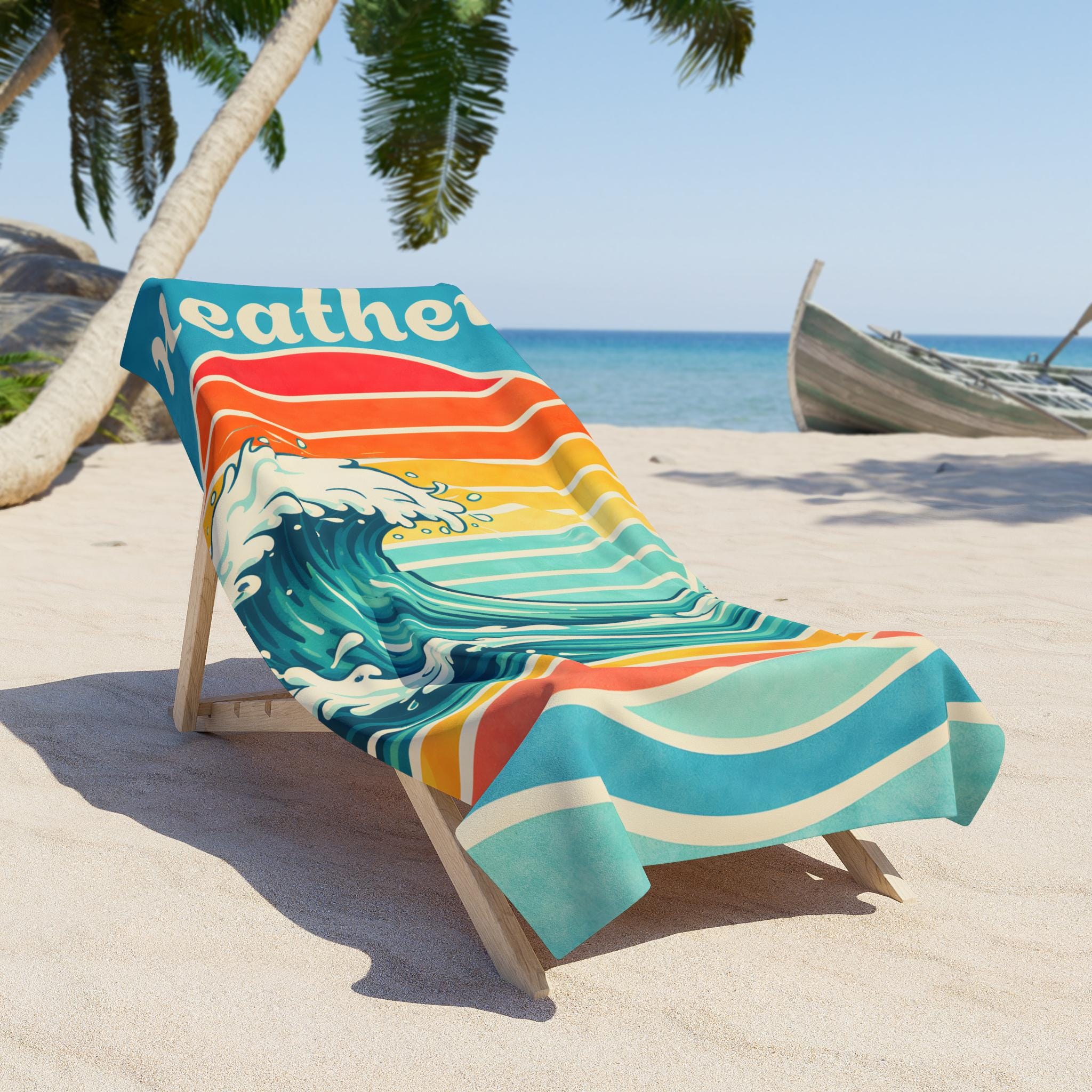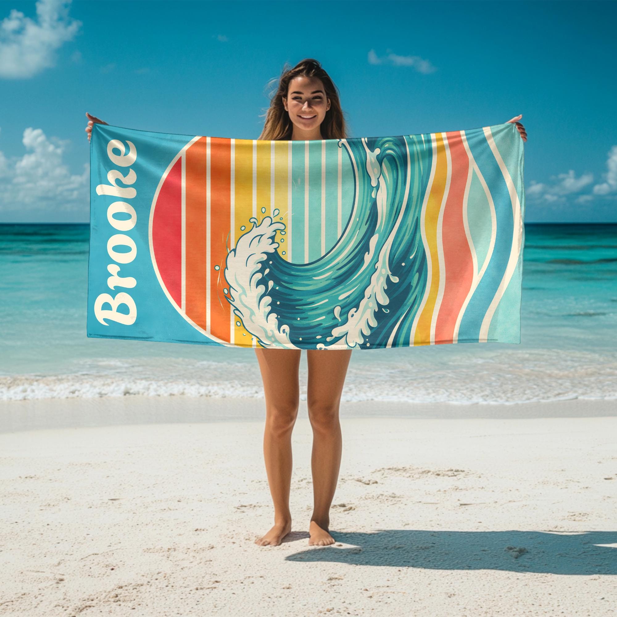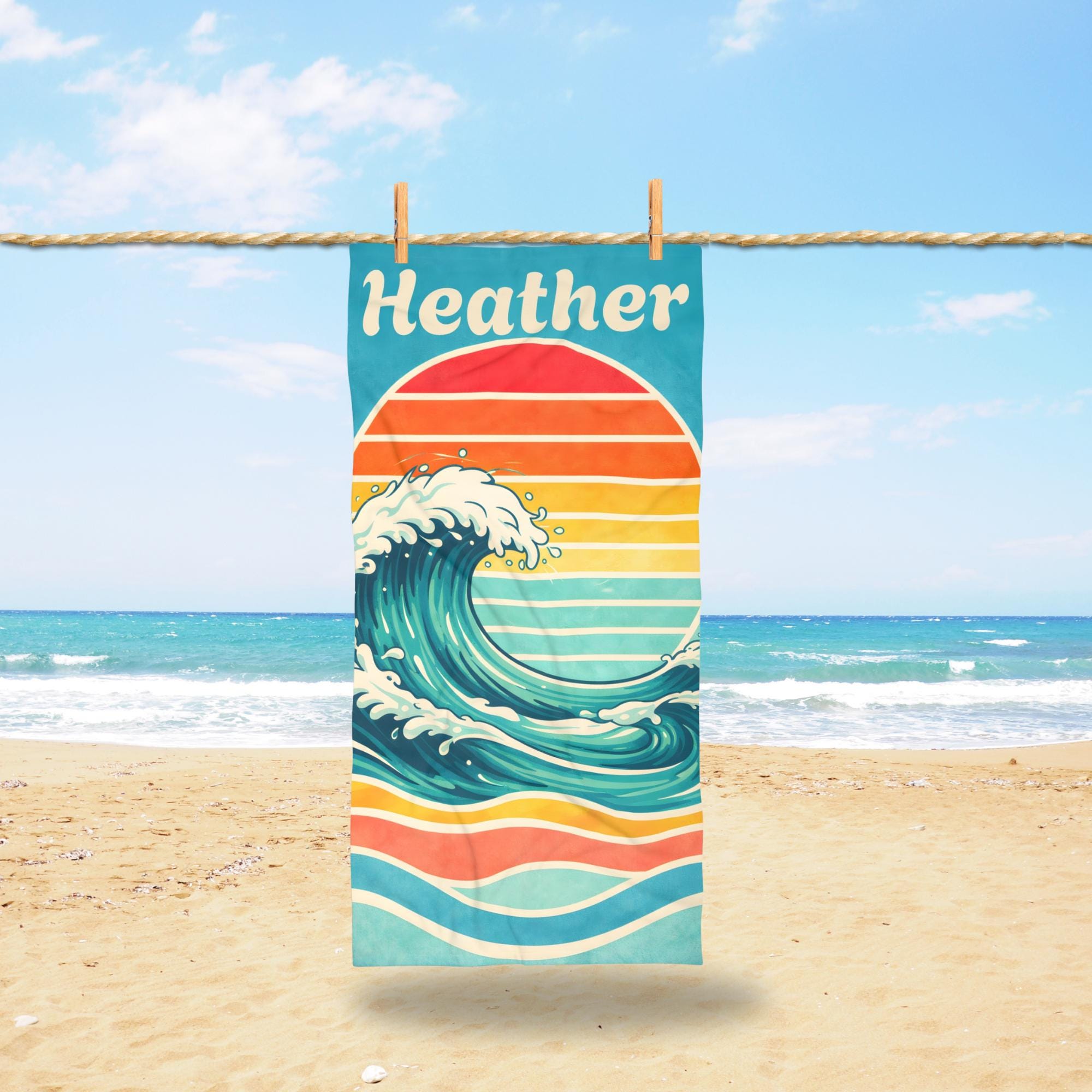 Bring bold summer style to every beach day with a personalized retro sun and wave towel designed for anyone who loves sunshine, surf vibes, and vibrant vacation energy.