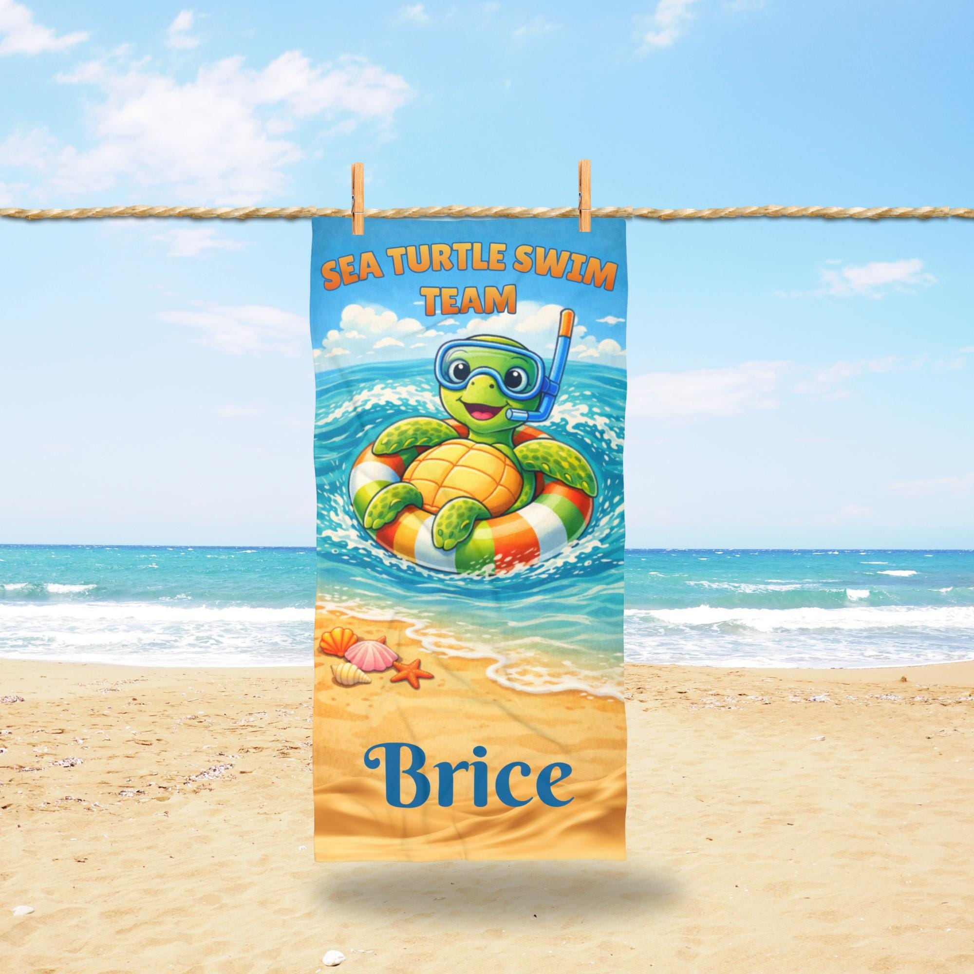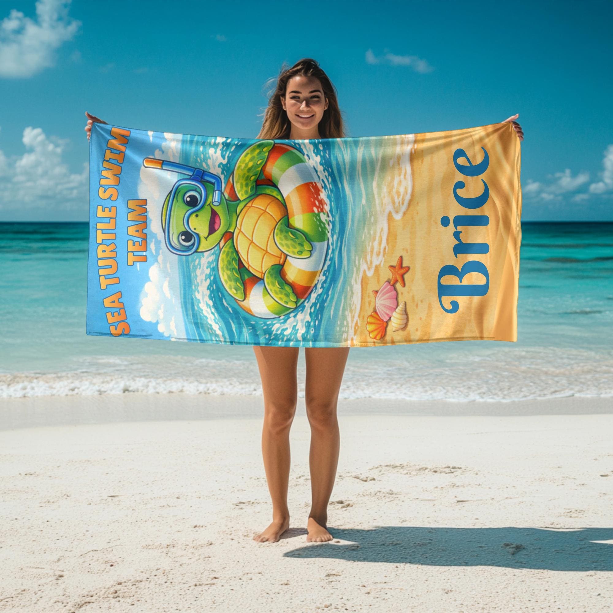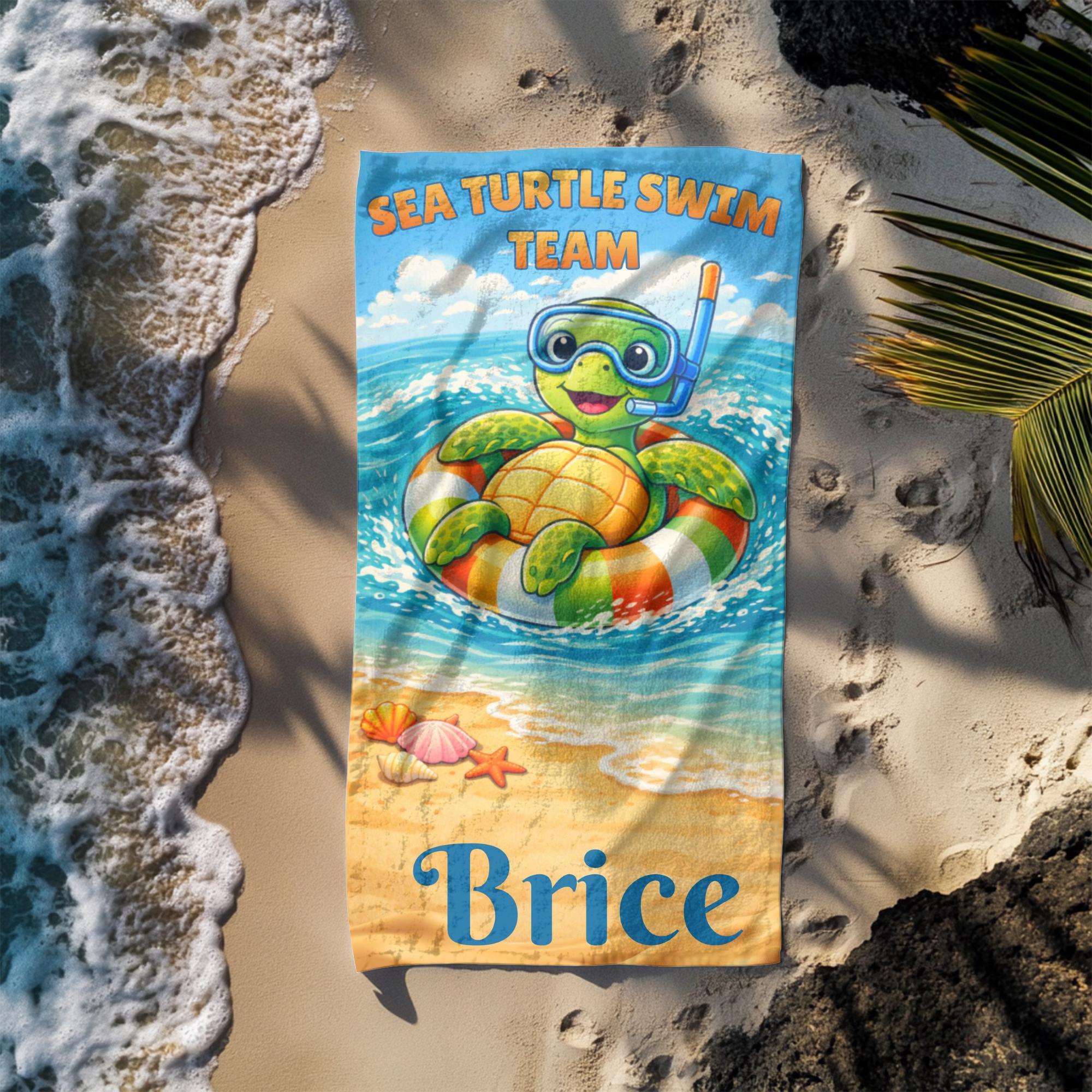 Bring calm ocean vibes to every beach and pool day with this personalized sea turtle beach towel designed for summer adventures and sunny vacations.