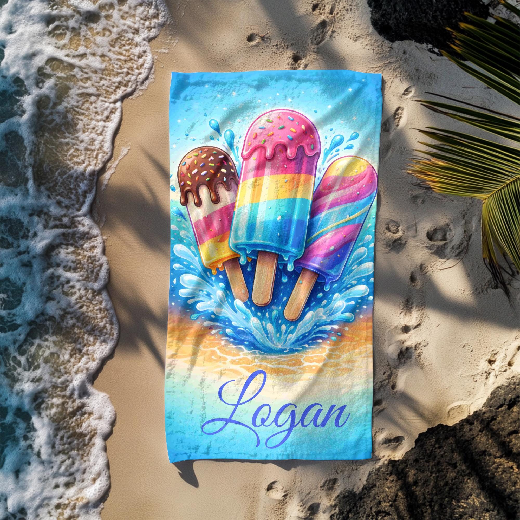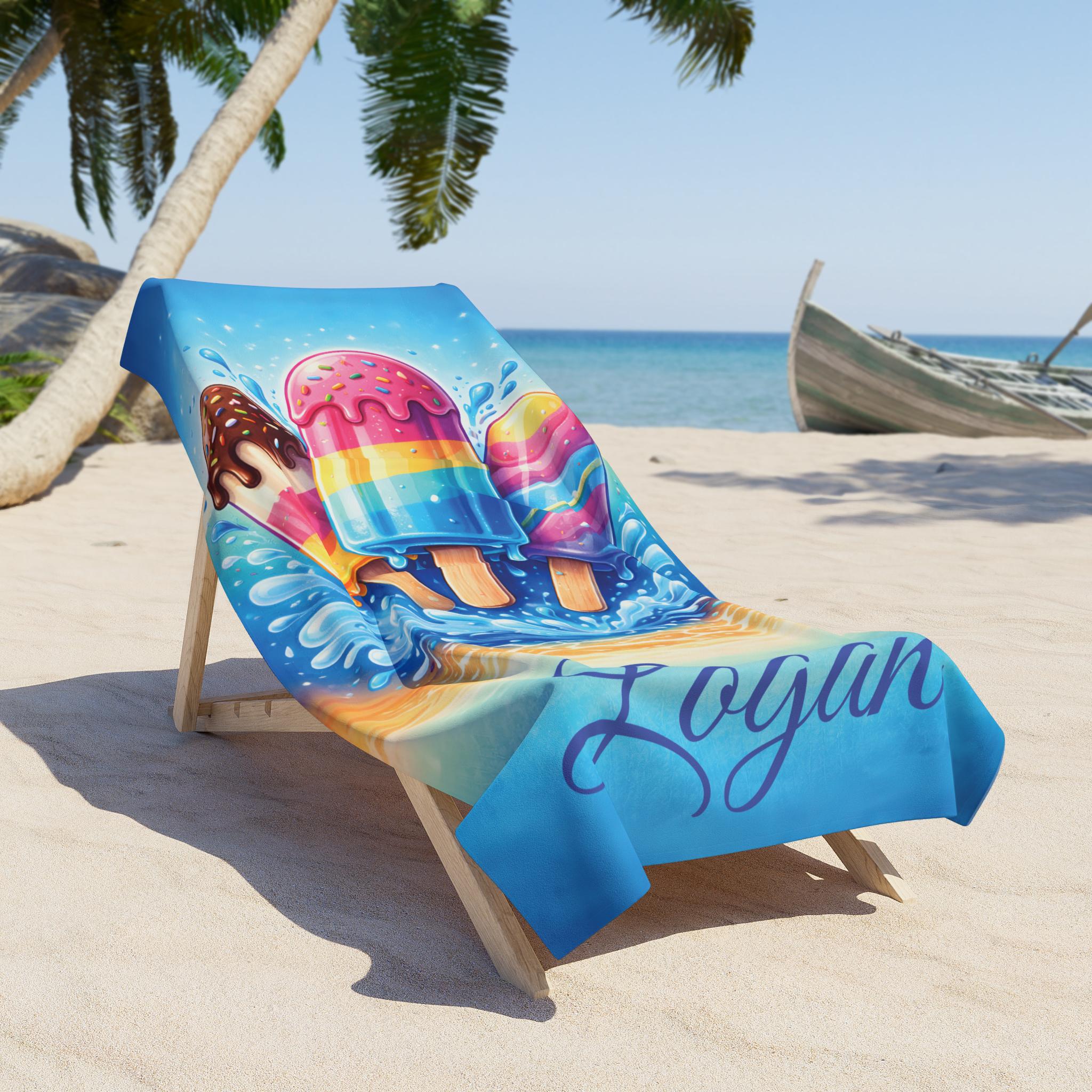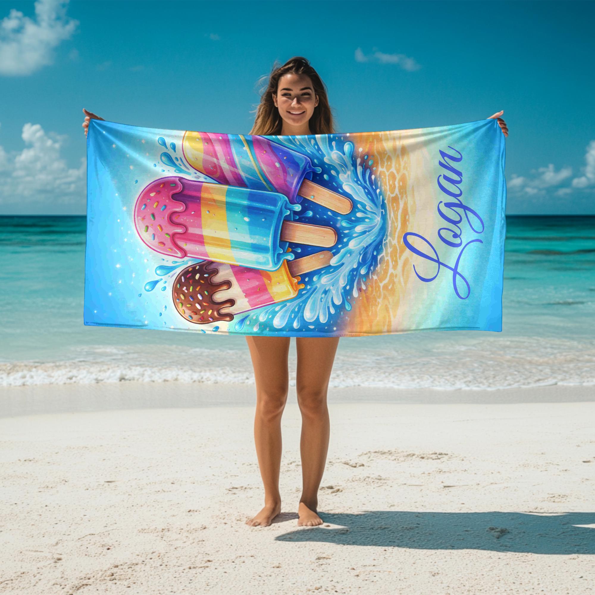 Add a splash of summer fun to every beach and pool day with this personalized ice cream beach towel designed to stand out with bold color and playful style.