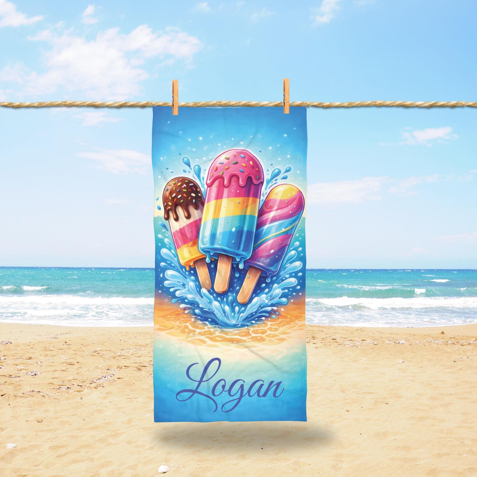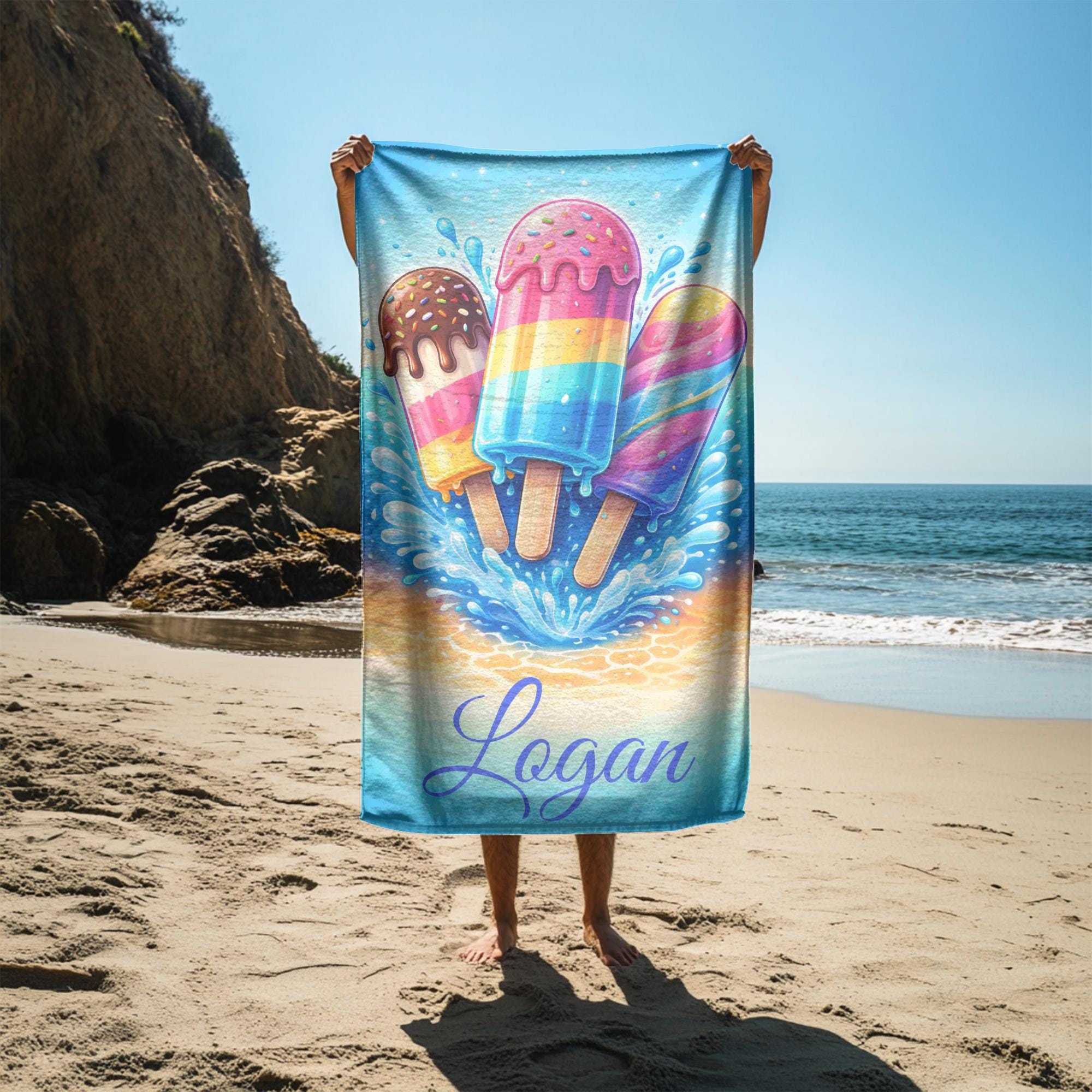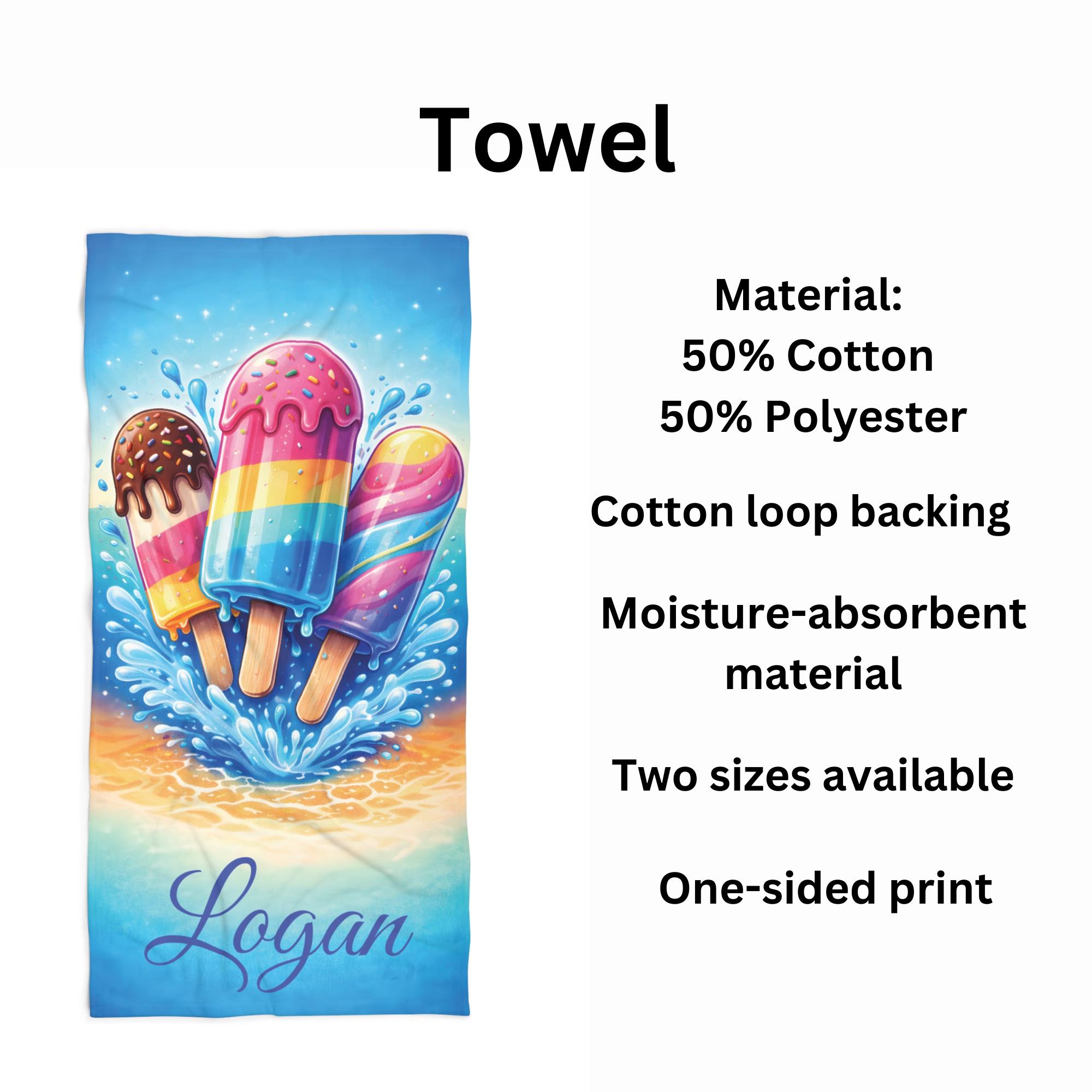 Add a splash of summer fun to every beach and pool day with this personalized ice cream beach towel designed to stand out with bold color and playful style.