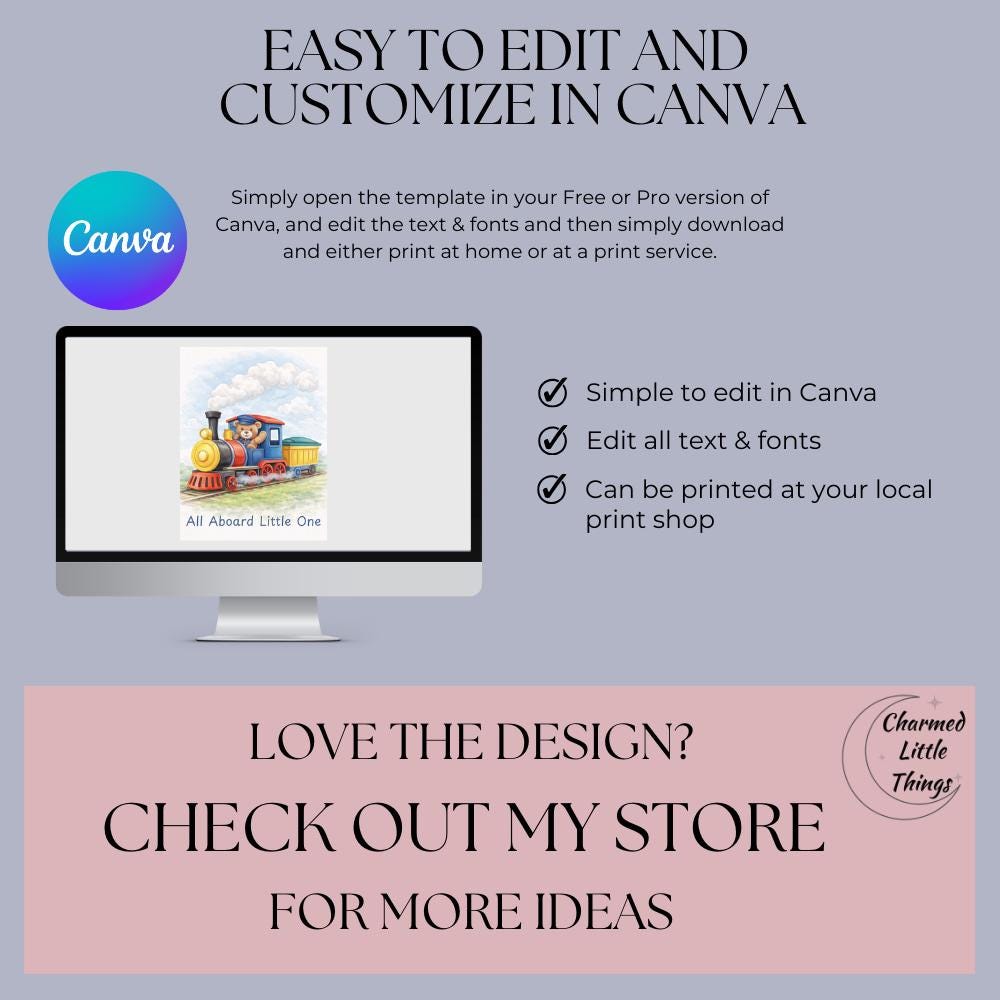 You can easily personalize the name and text using Canva, then download and print in your preferred size.
