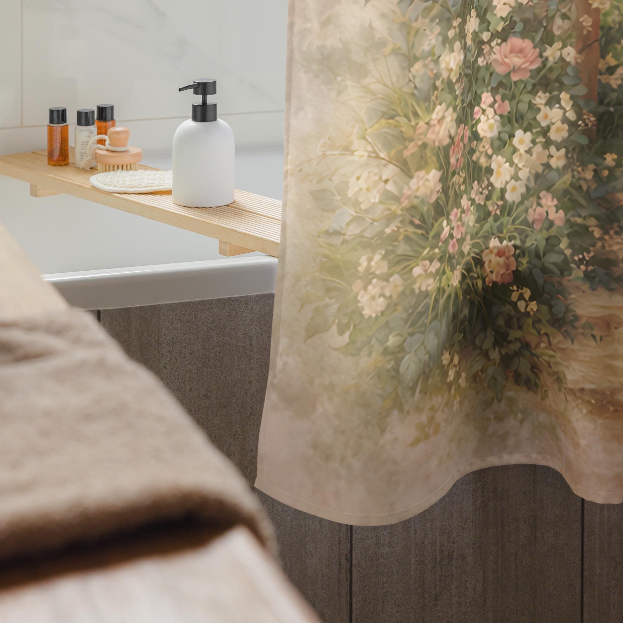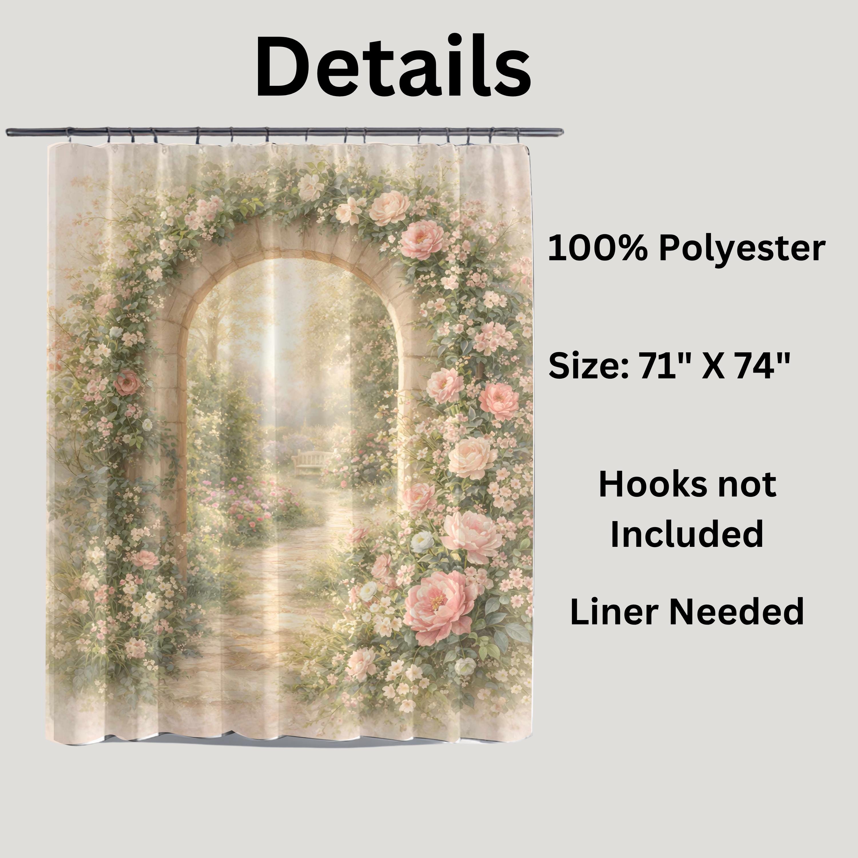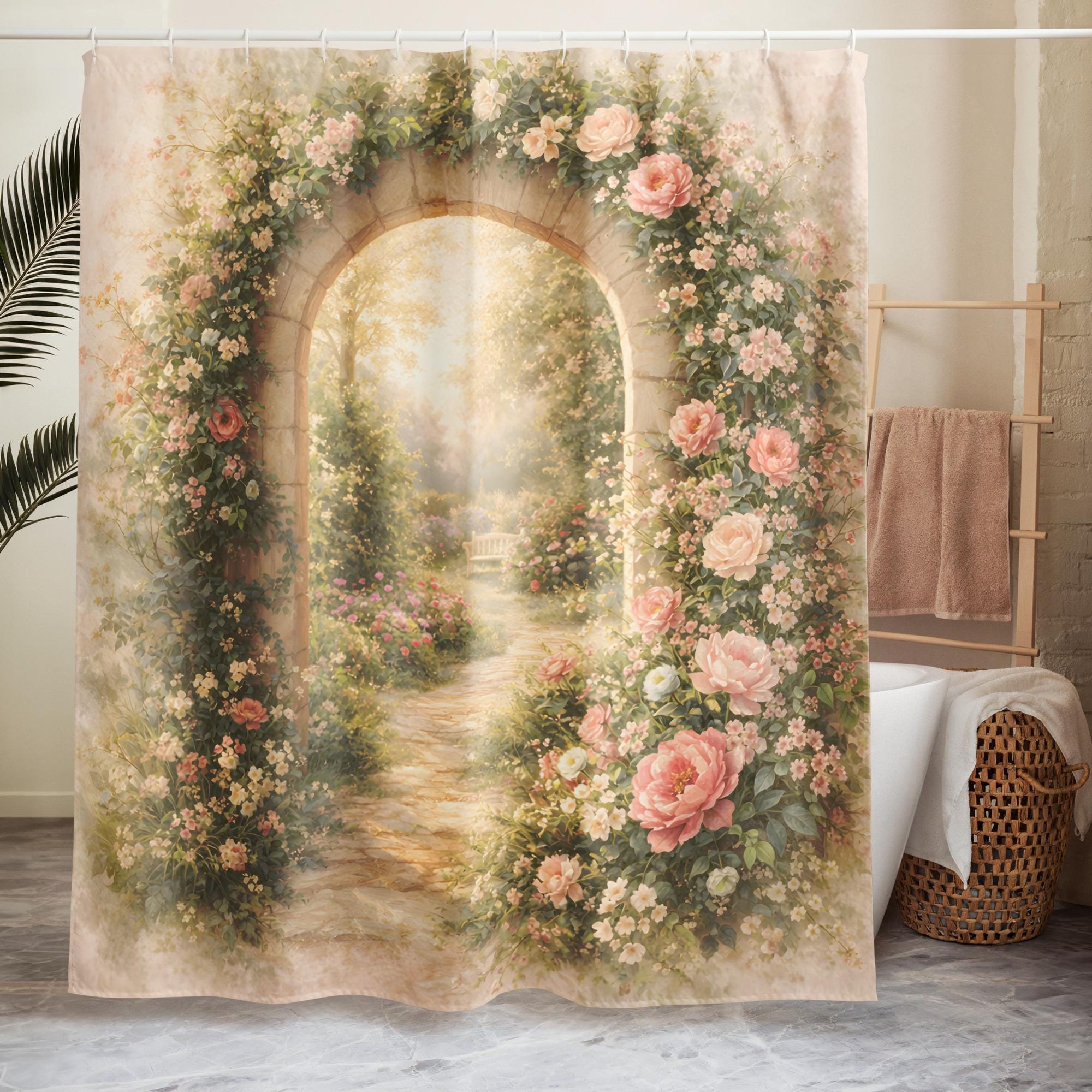 Step into a peaceful escape every time you enter your bathroom with this secret garden shower curtain. Designed with a romantic floral arch and a softly glowing garden path, this piece creates the feeling of walking into a hidden garden filled with light, warmth, and calm.