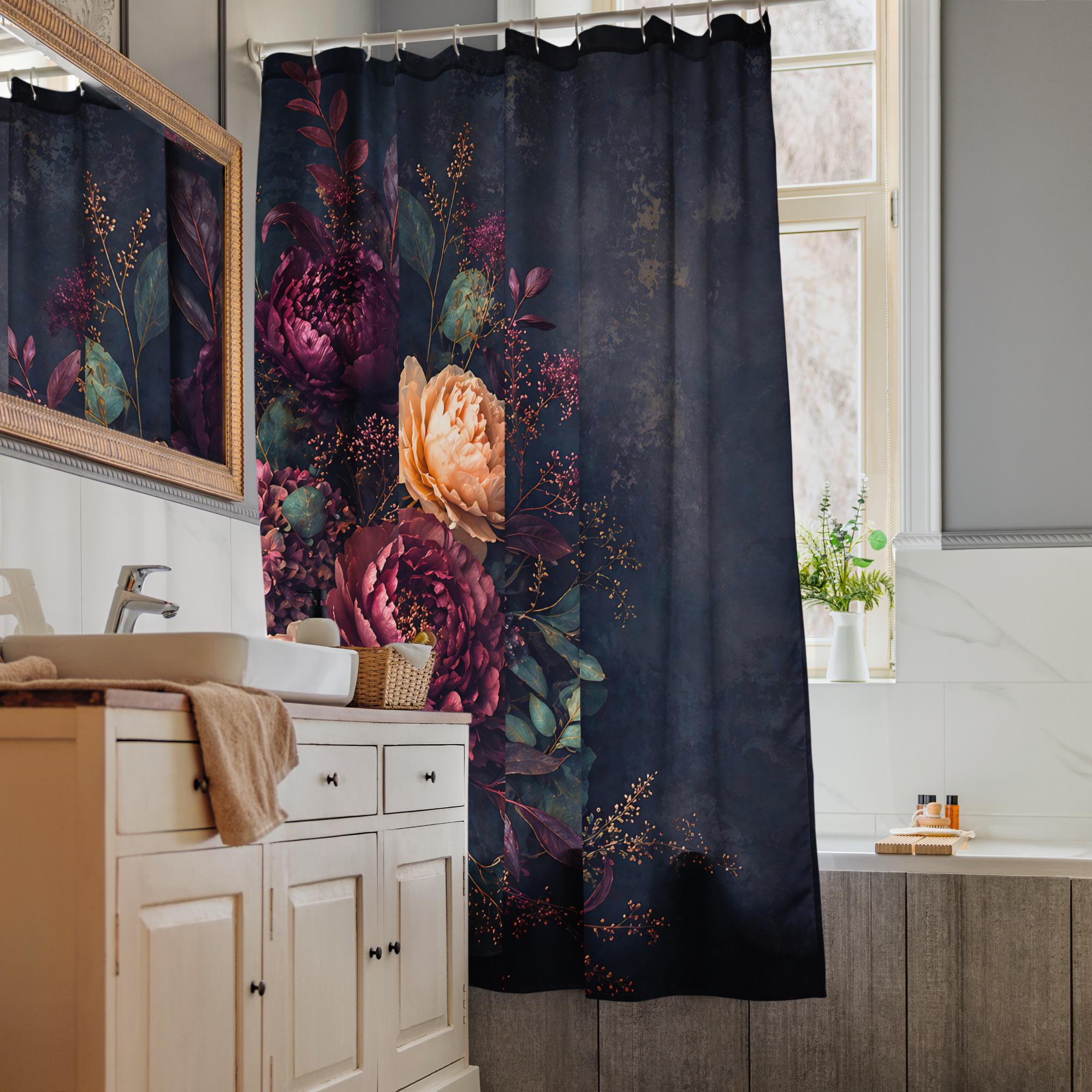 Create a bold, elevated look in your bathroom with this moody floral shower curtain, designed to bring depth, richness, and elegance into your space.
