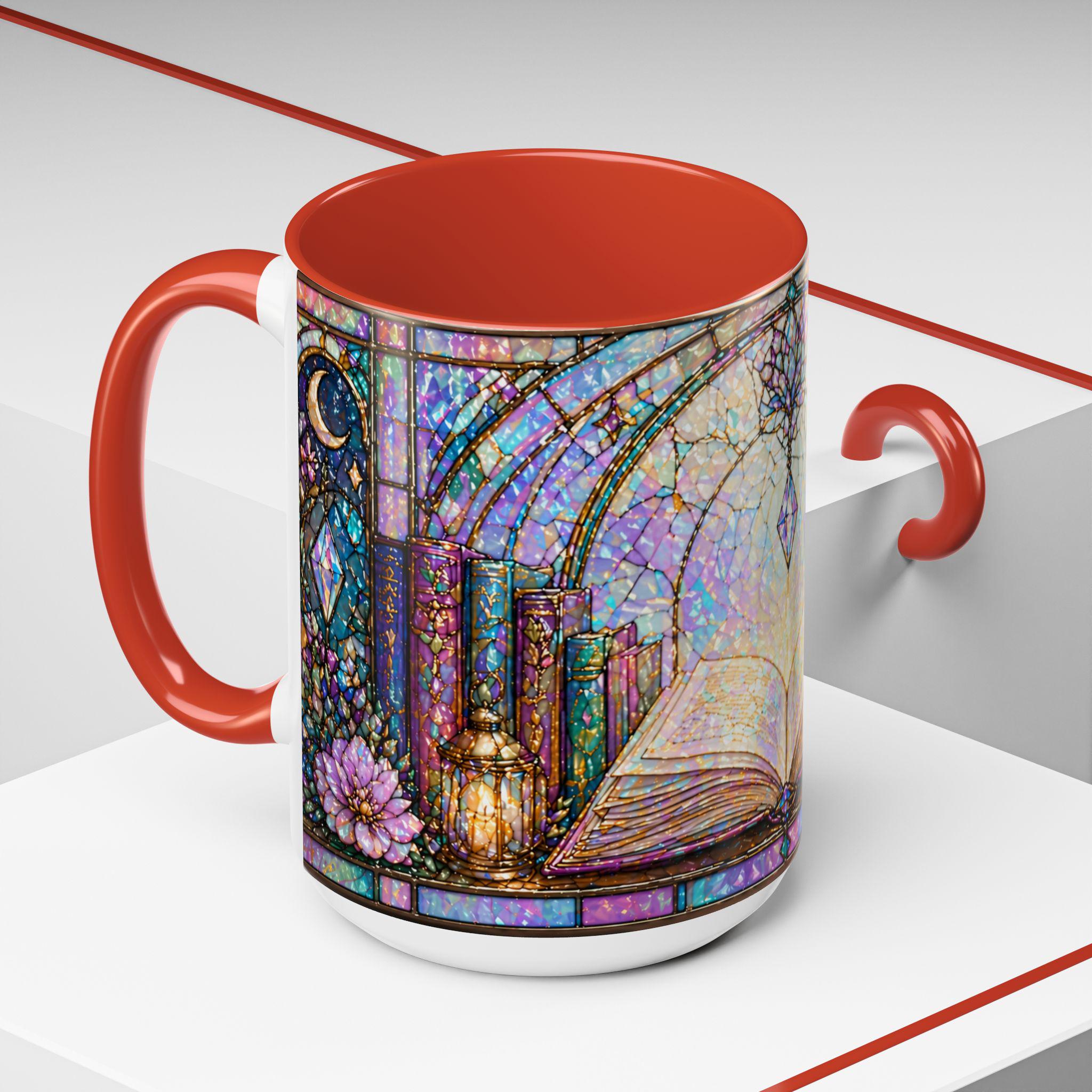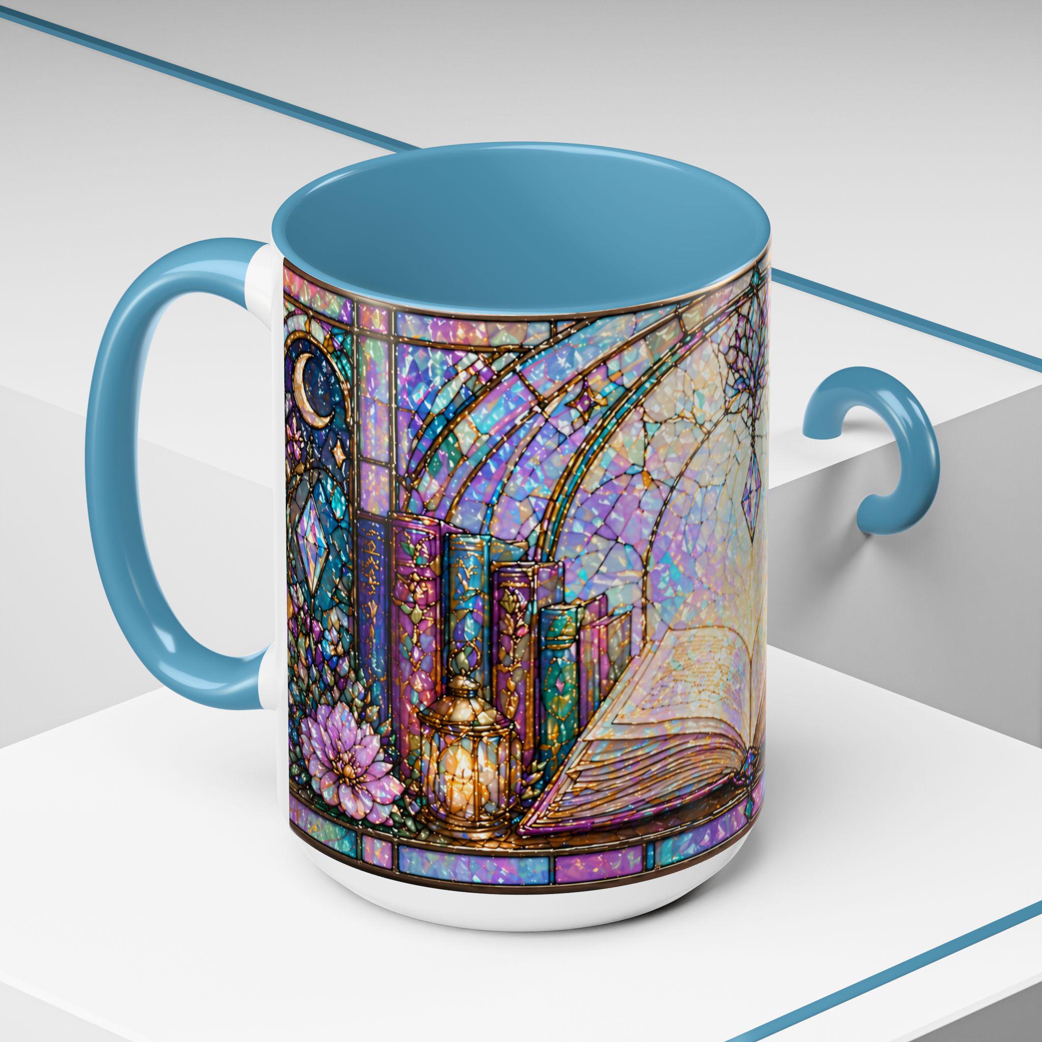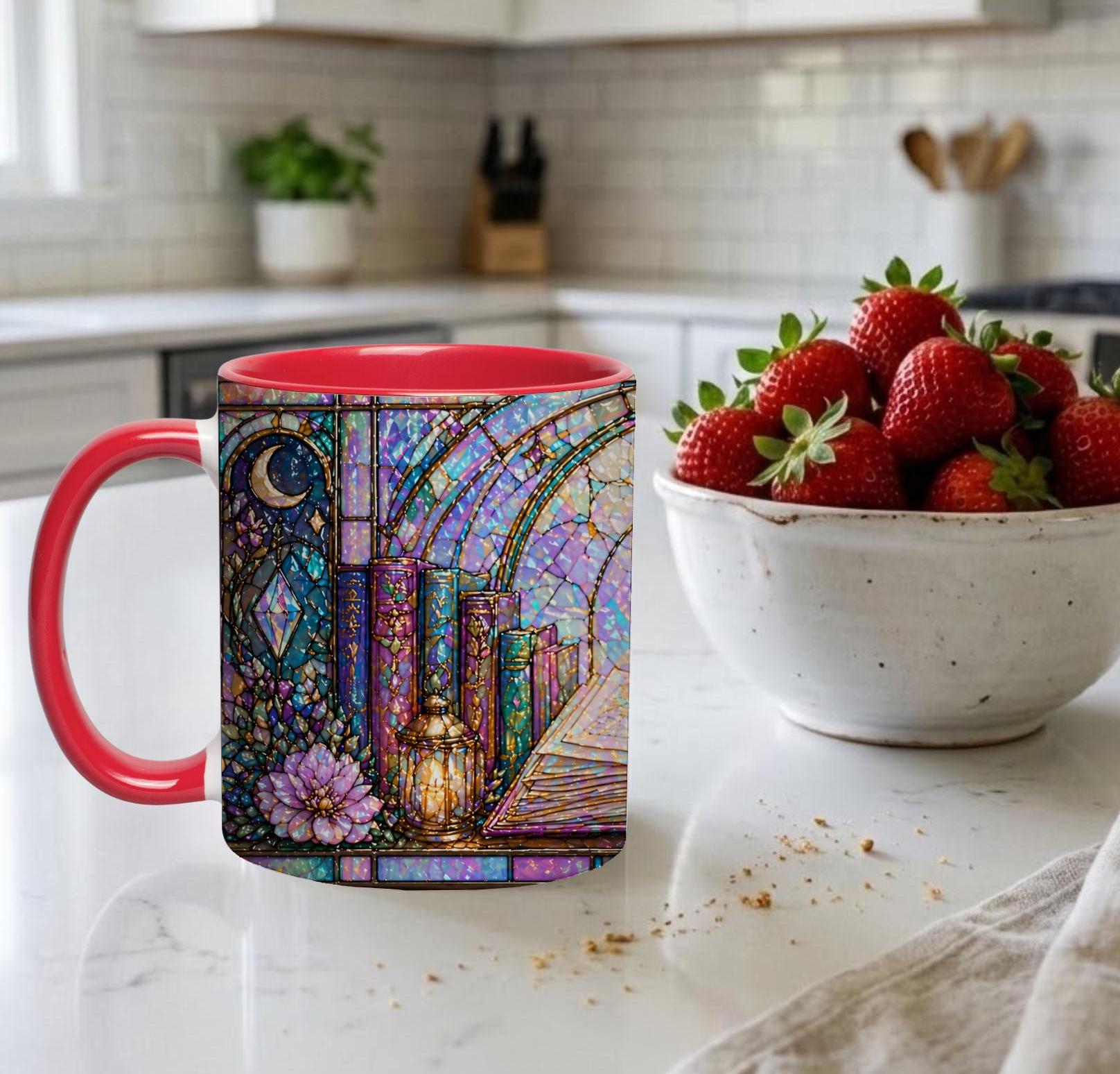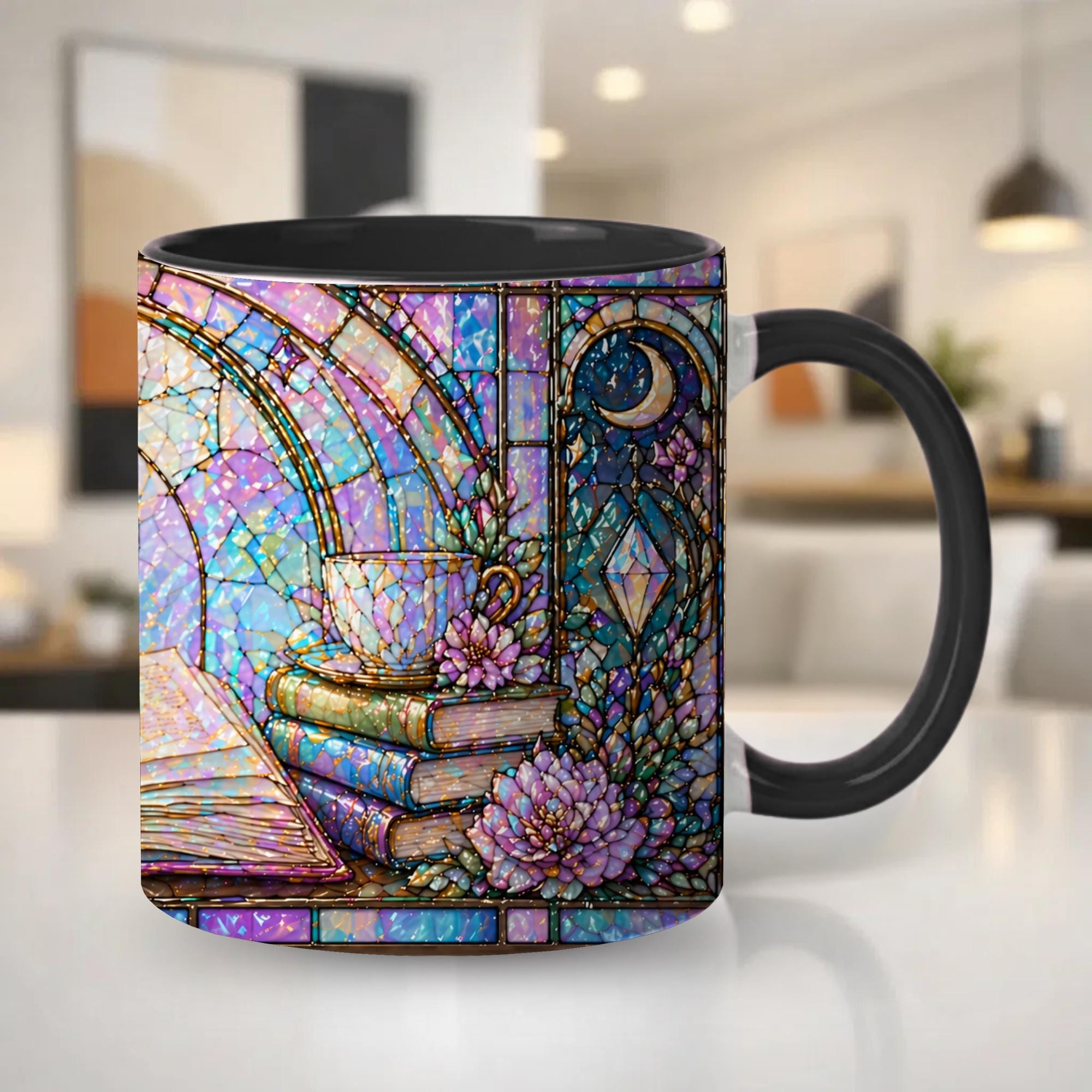 This mug was designed to bring that feeling into your everyday routine. The glowing open book and soft stained glass details create a gentle, almost magical light—like the moment a story comes to life.