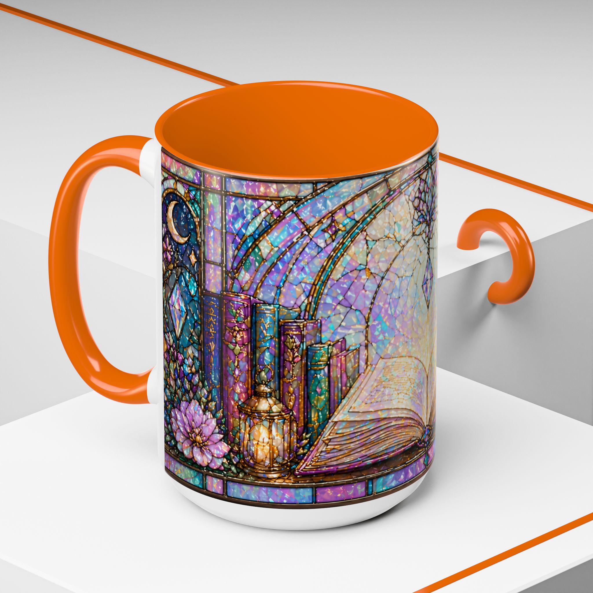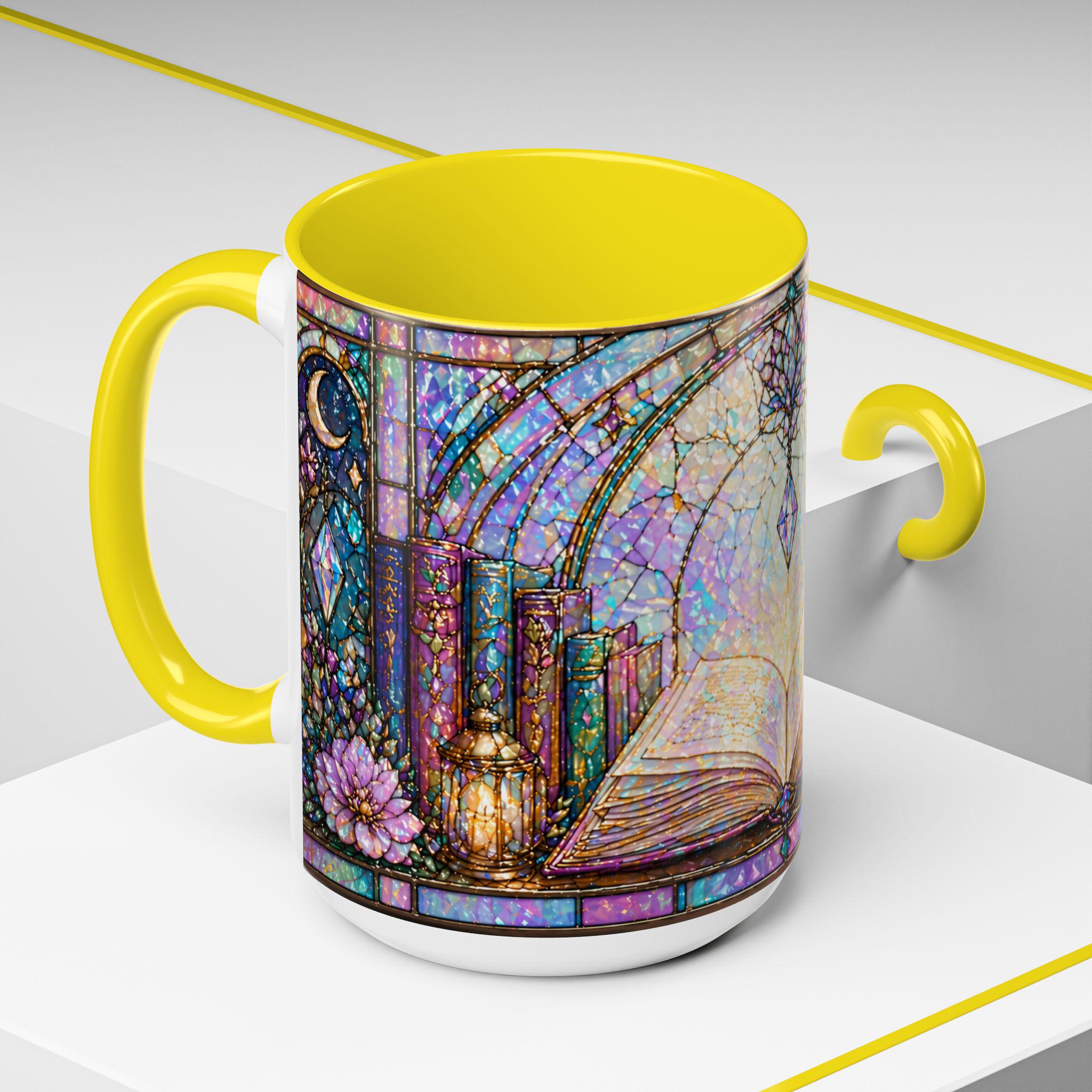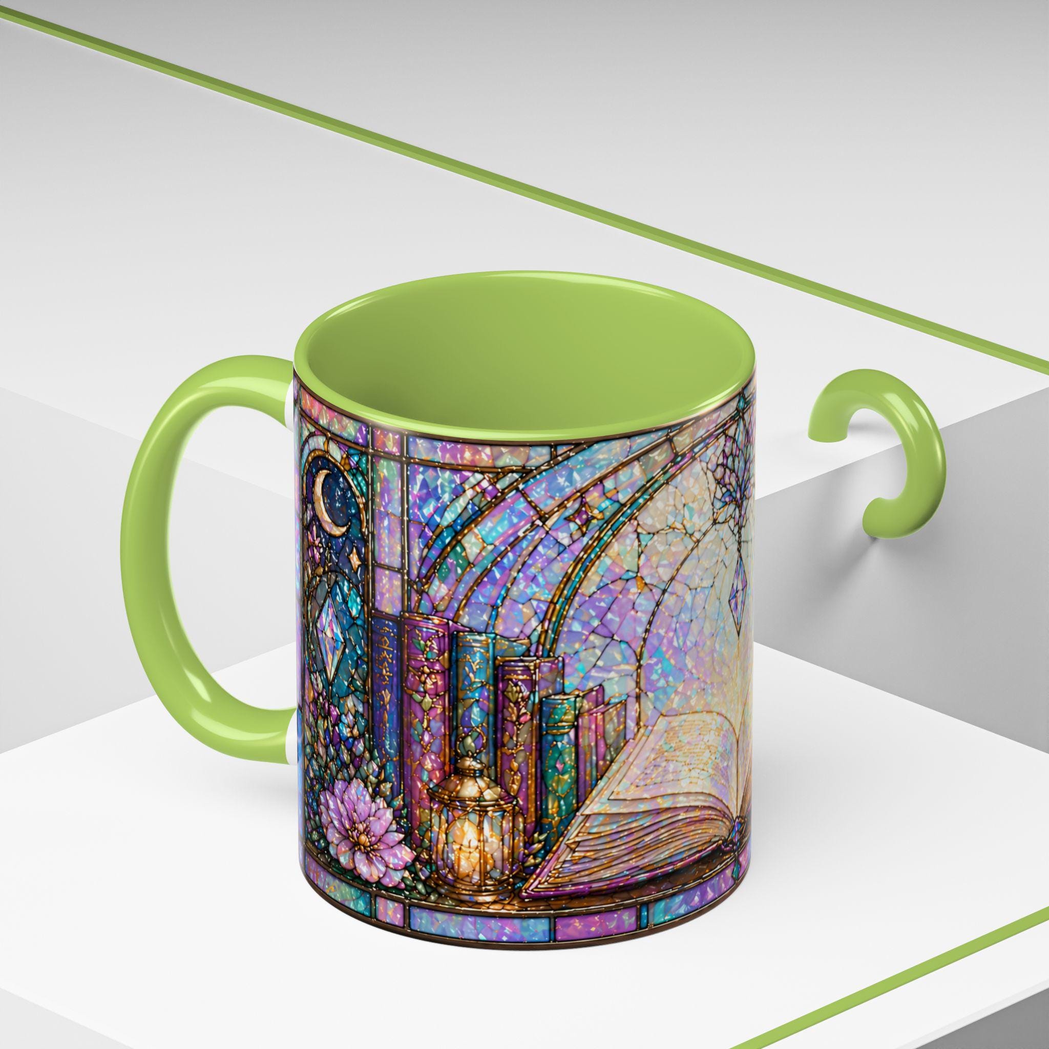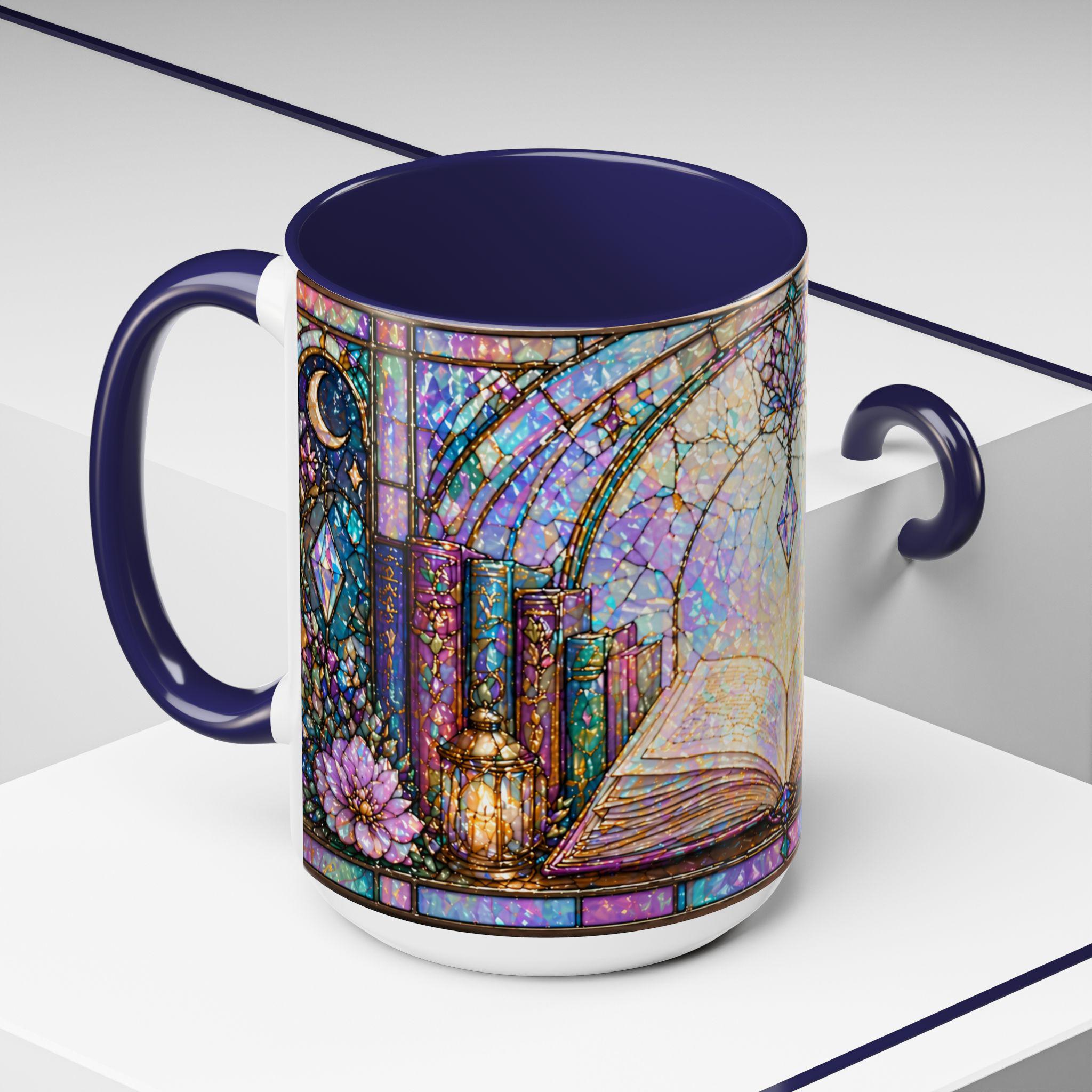 This mug was designed to bring that feeling into your everyday routine. The glowing open book and soft stained glass details create a gentle, almost magical light—like the moment a story comes to life.