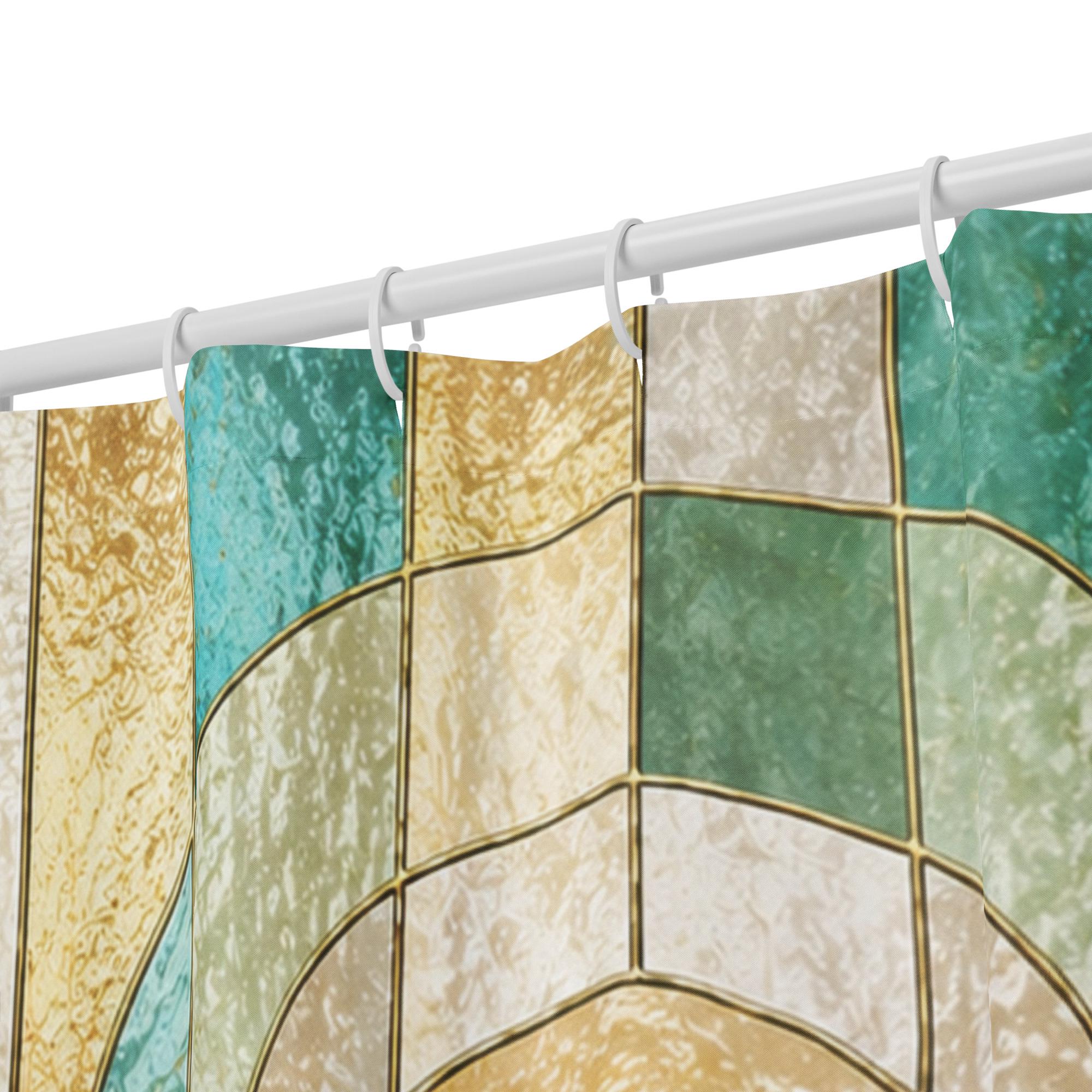 Bring the movement and calm of the ocean into your space with this bold stained glass coastal shower curtain.