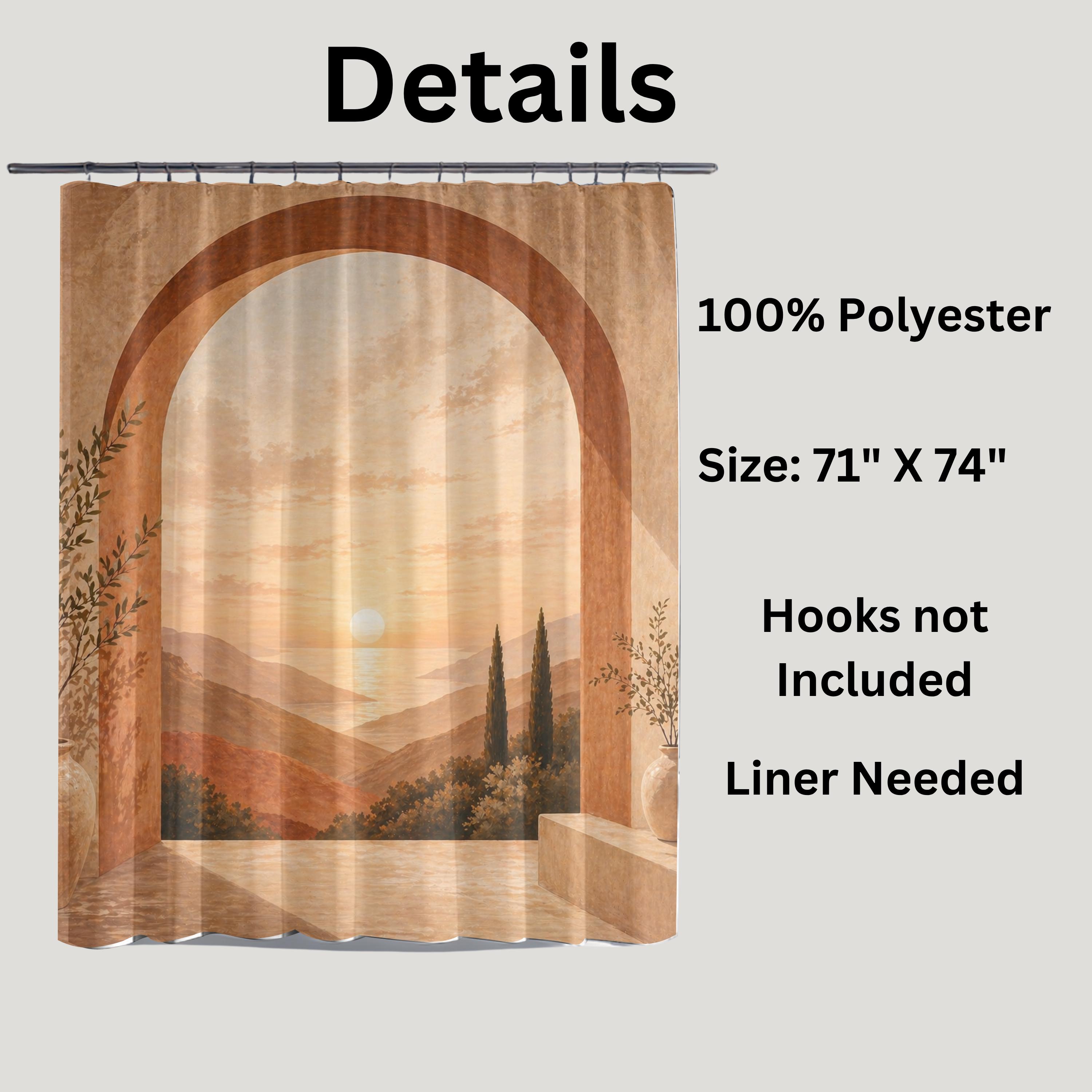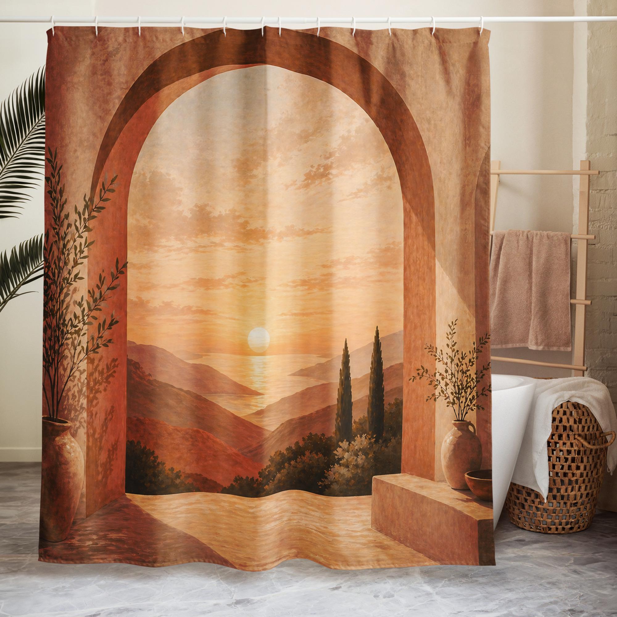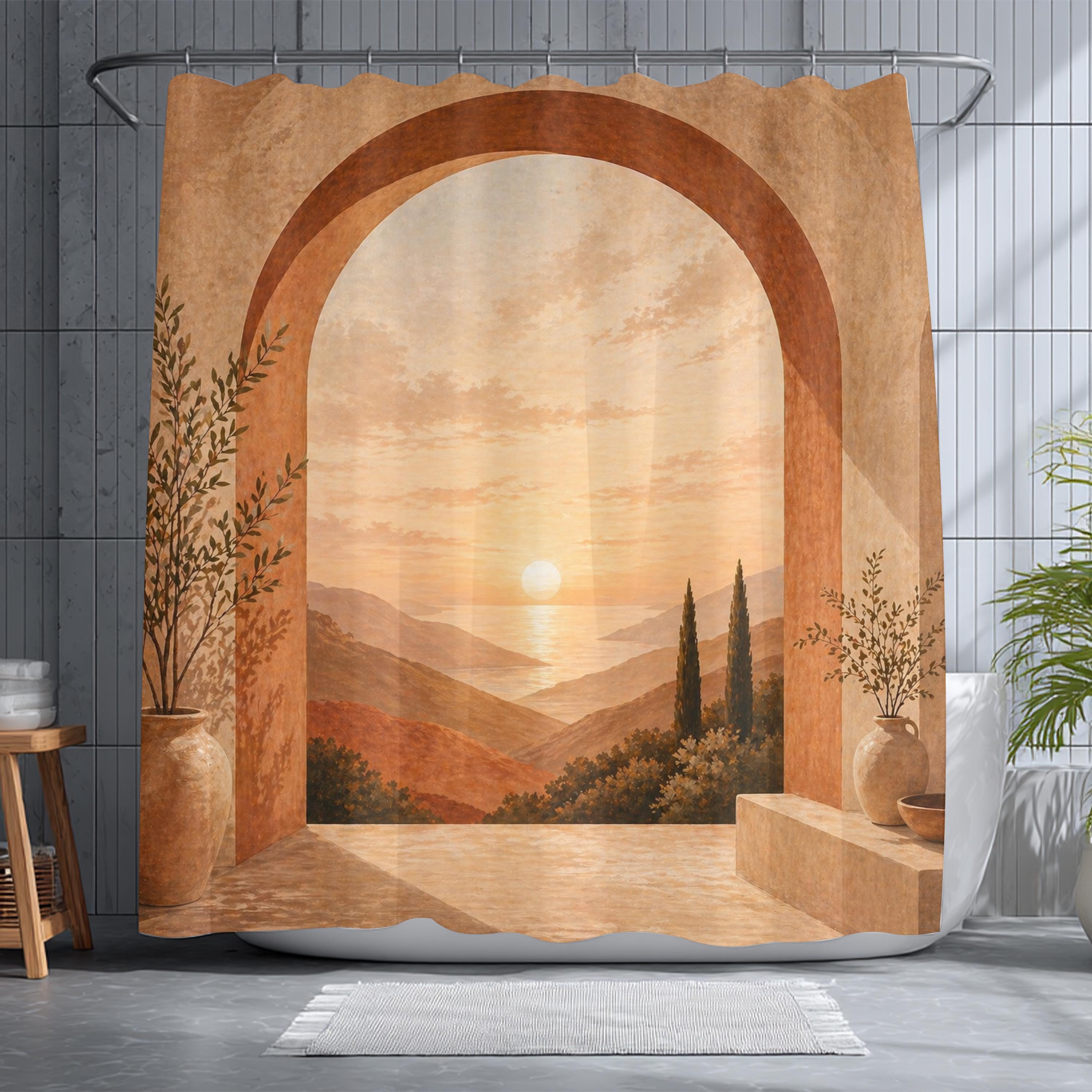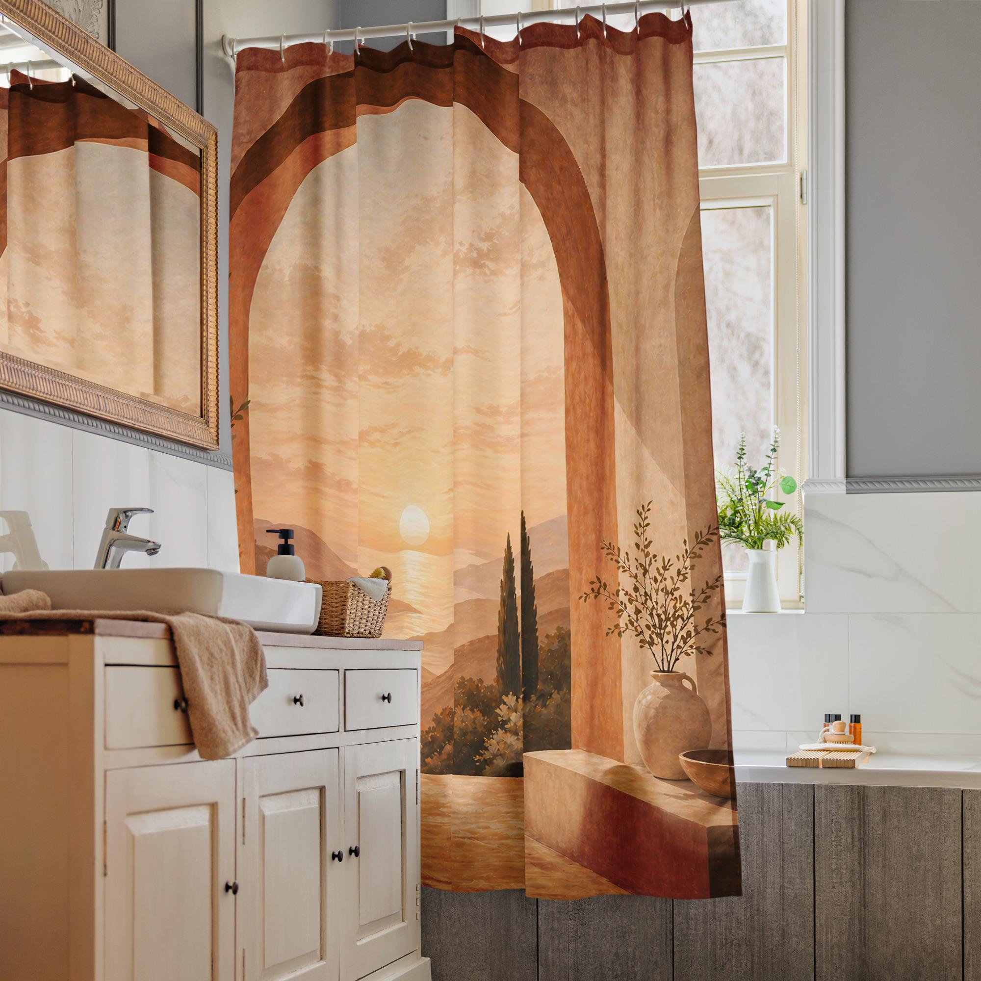 Bring warmth, calm, and depth into your space with this terracotta arch shower curtain inspired by Mediterranean landscapes.